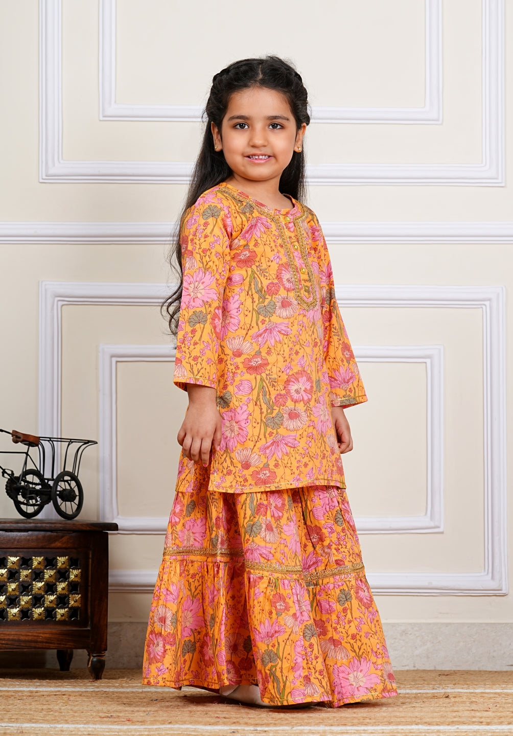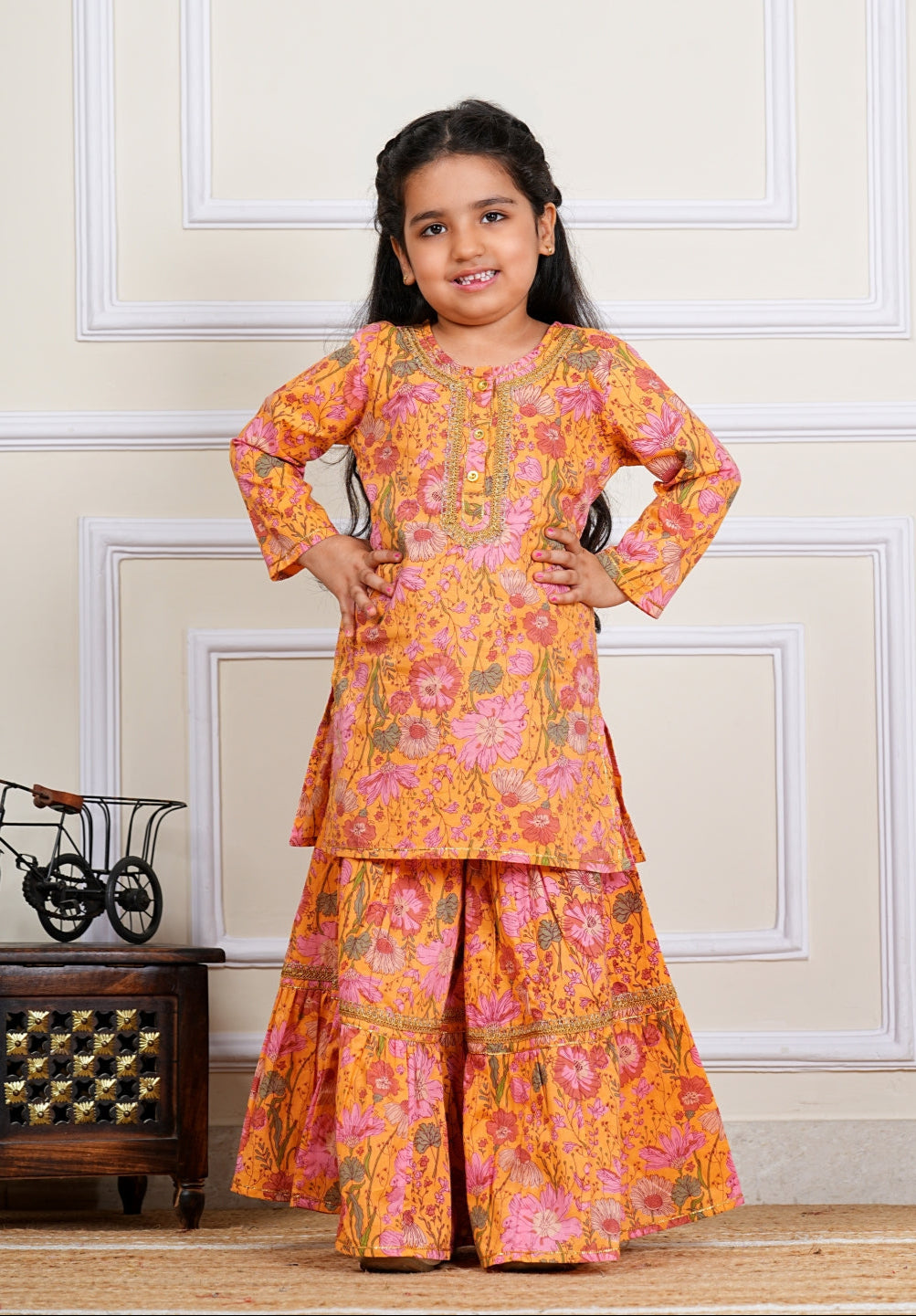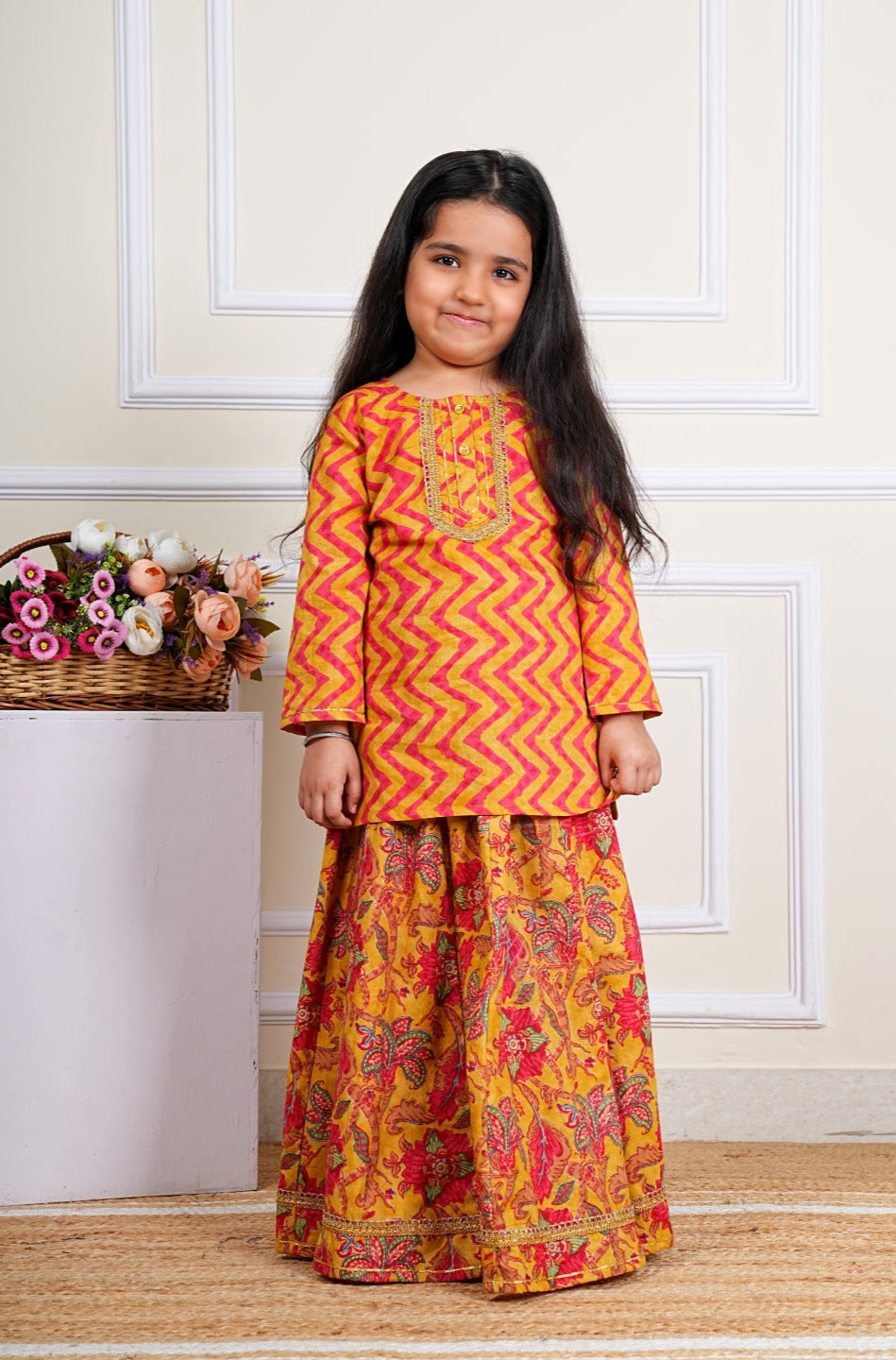 Jaipuri Cotton Kurti and Sharara Set for Girls