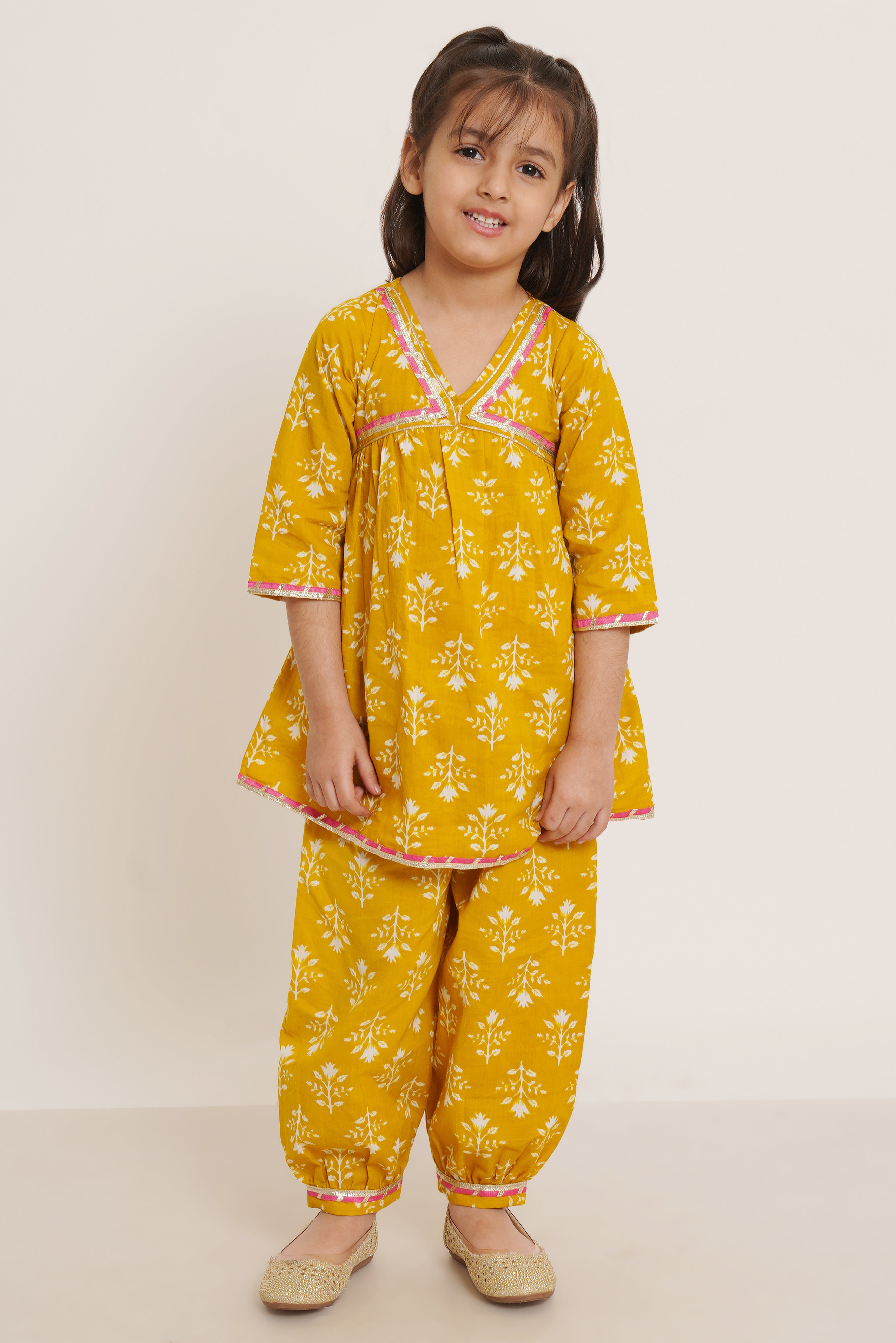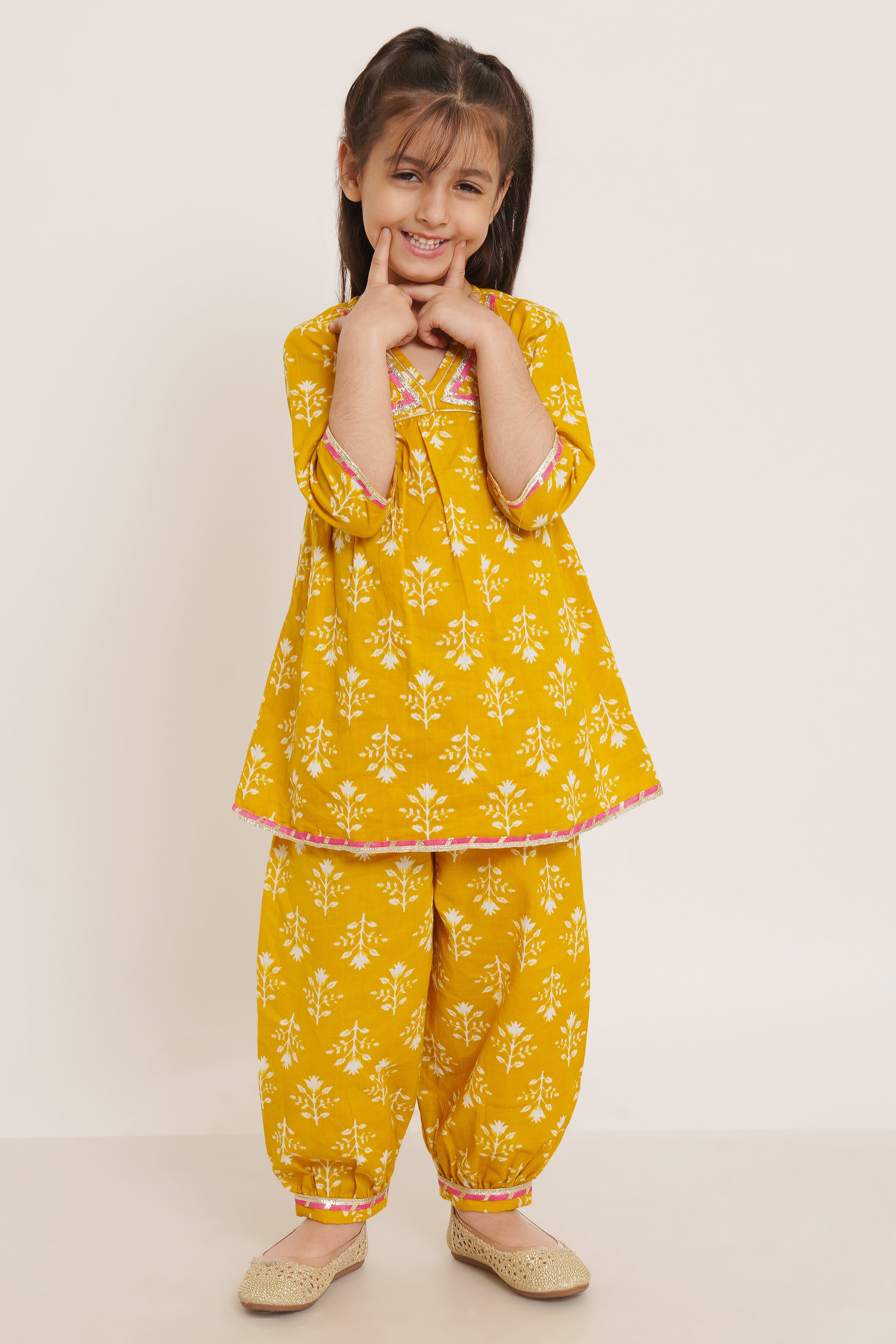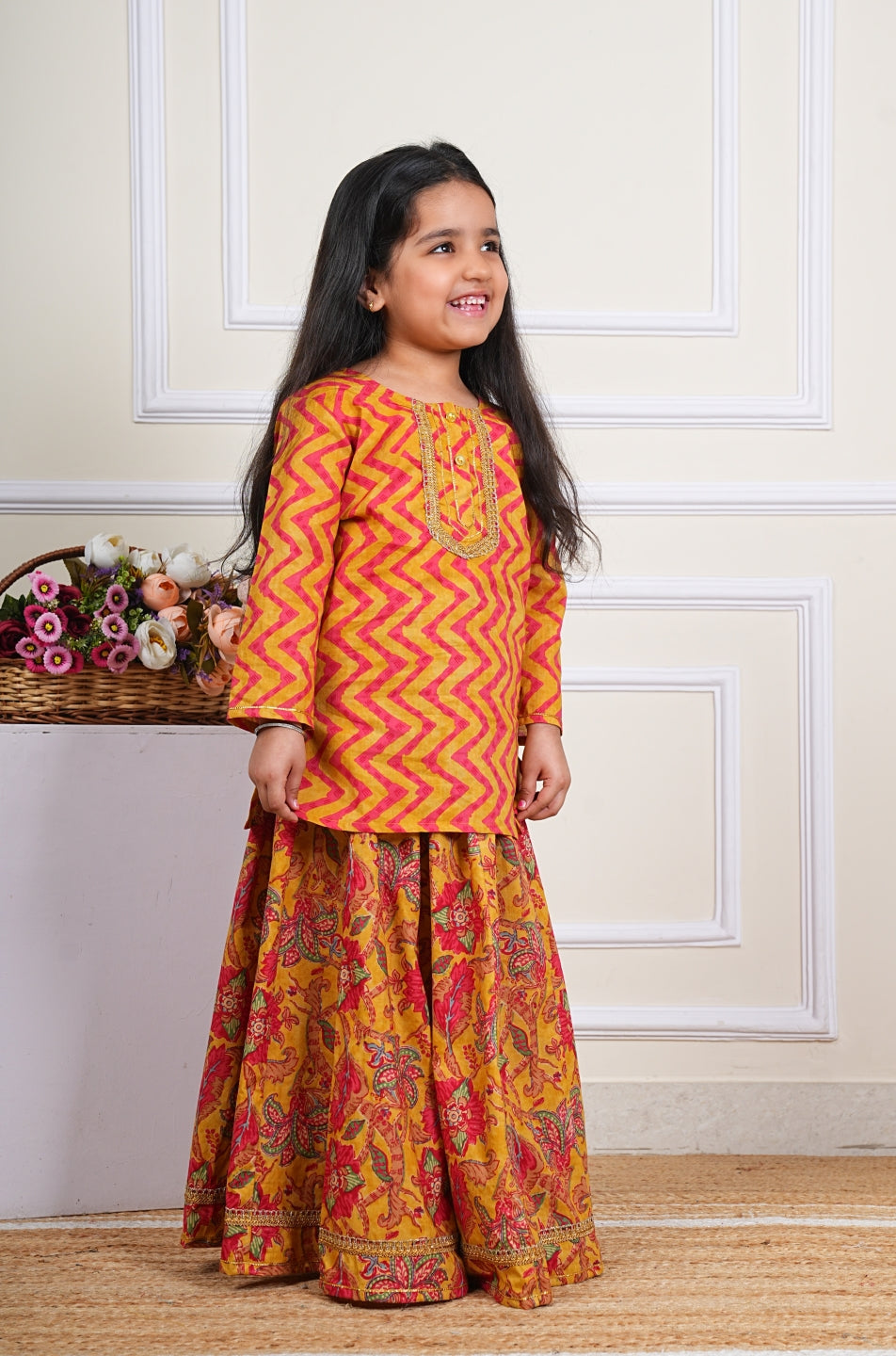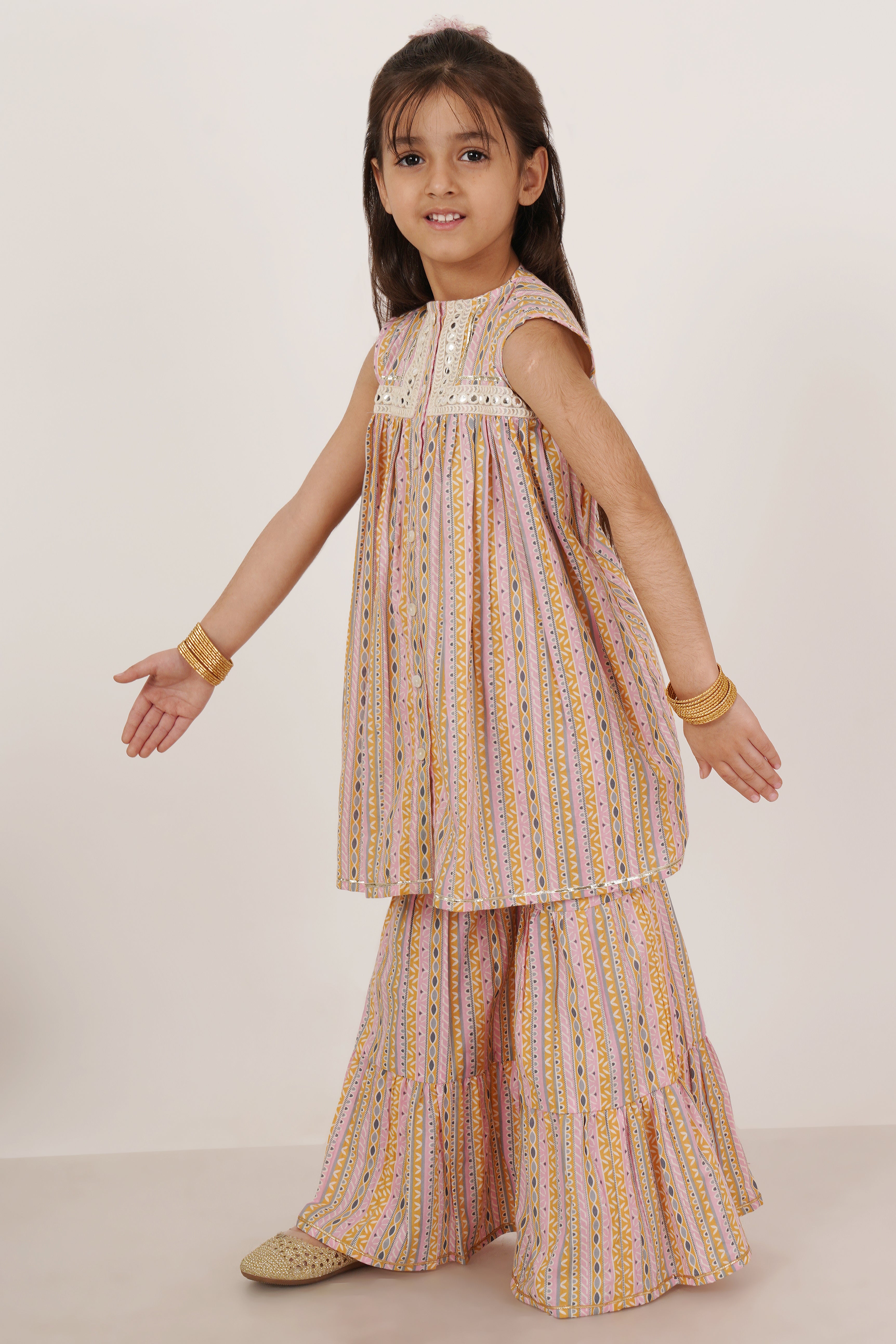 Jaipuri Cotton Kurti and Sharara Set for Girls