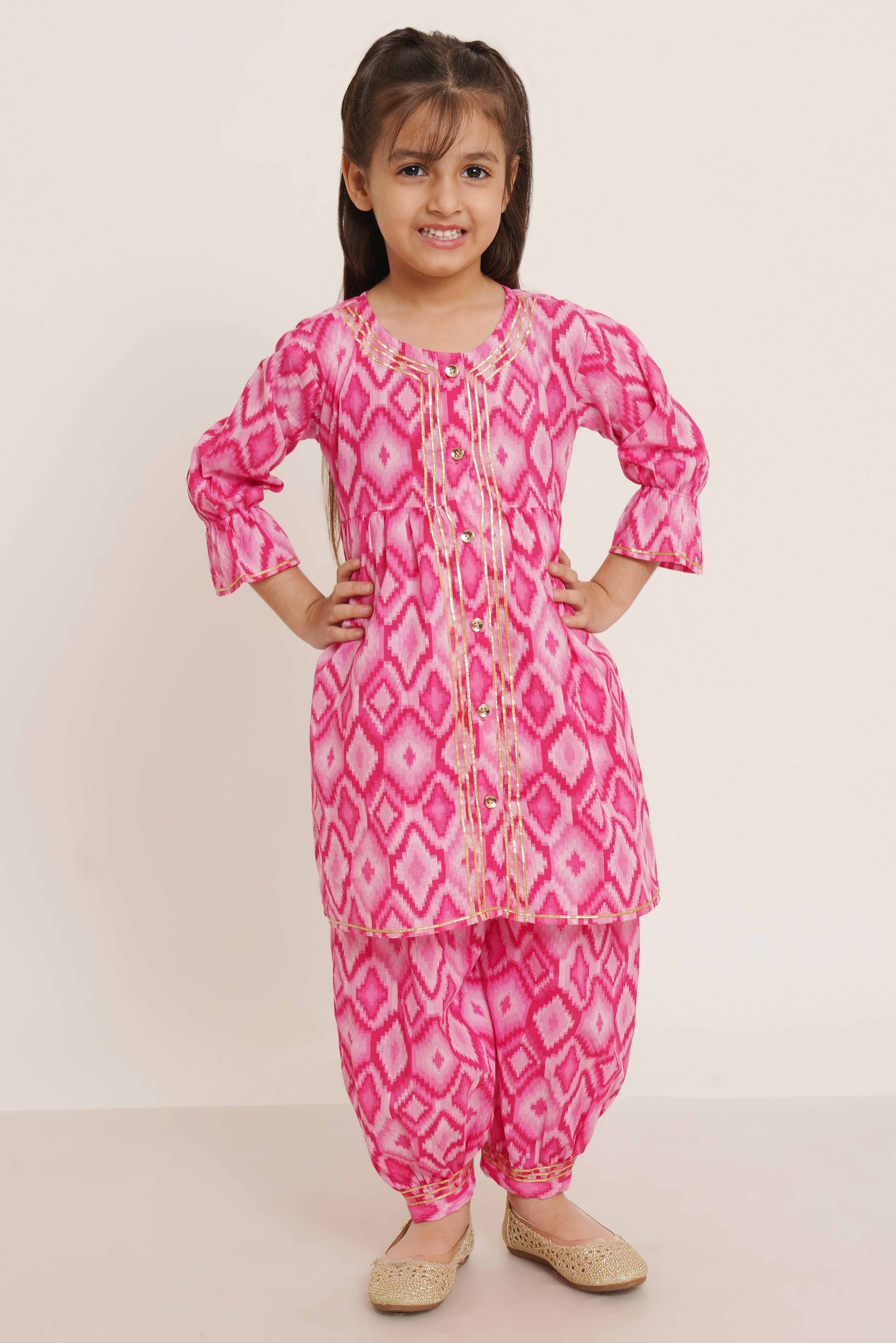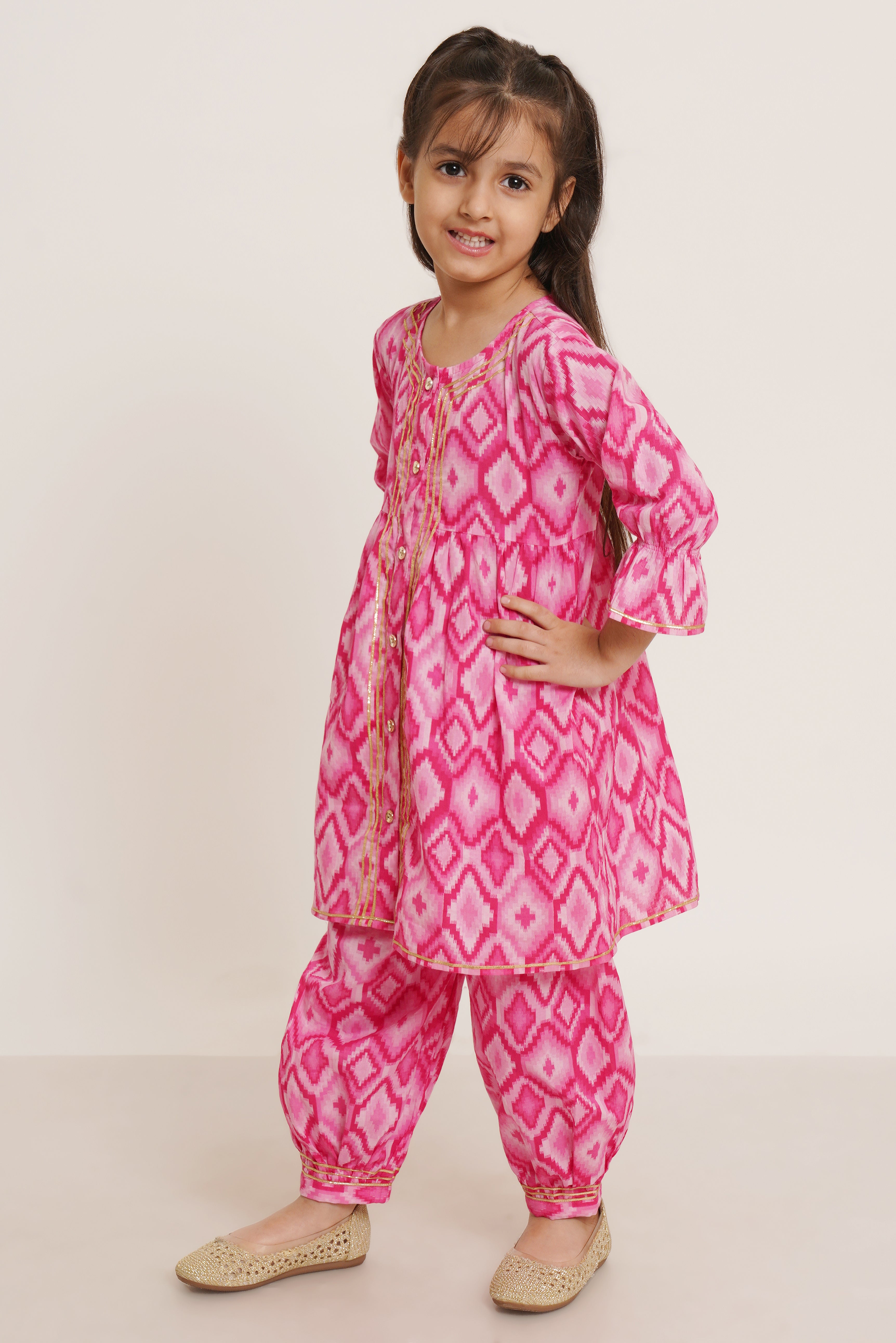 Pink Alia Cut Cotton Kurta with Pant Set For Women