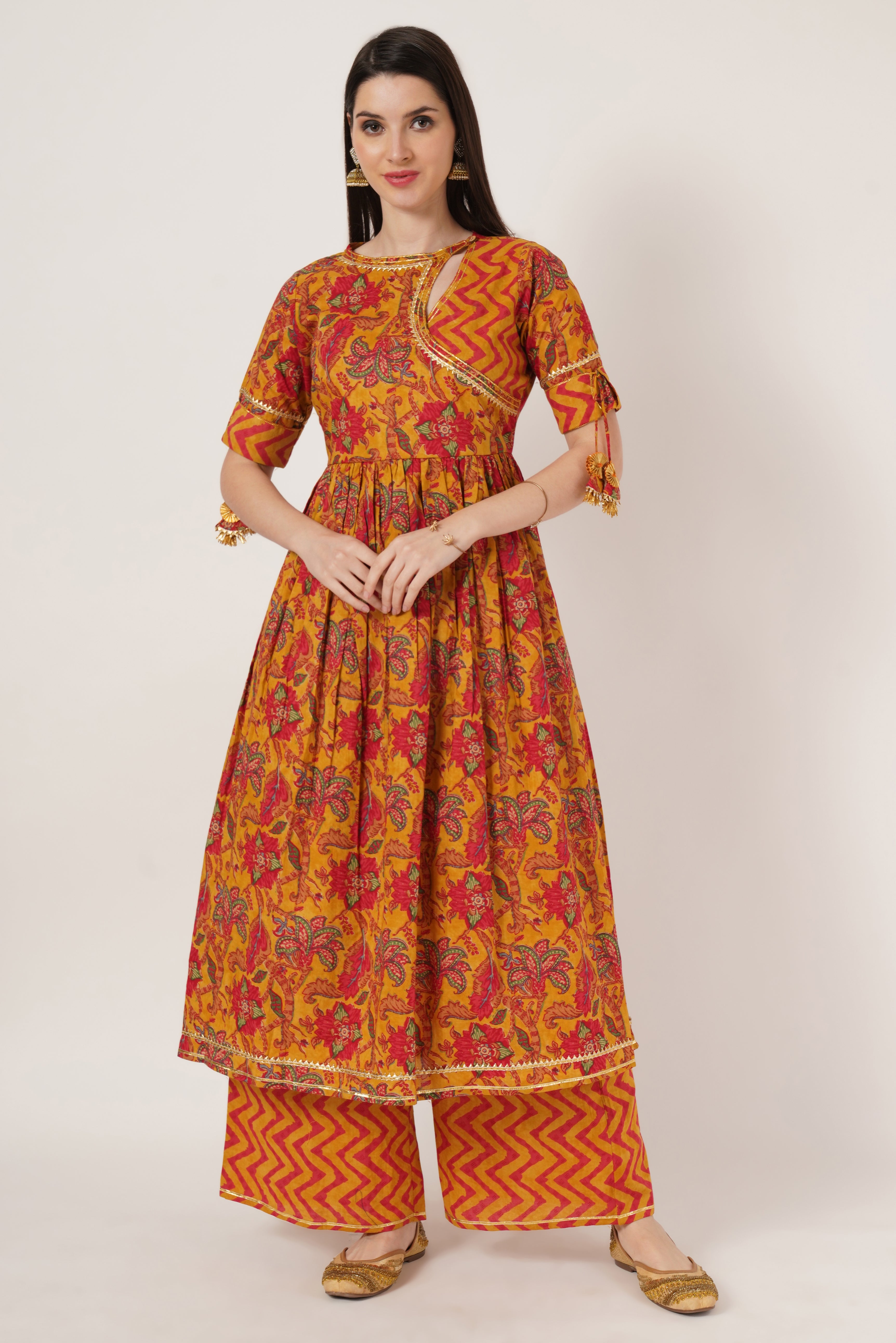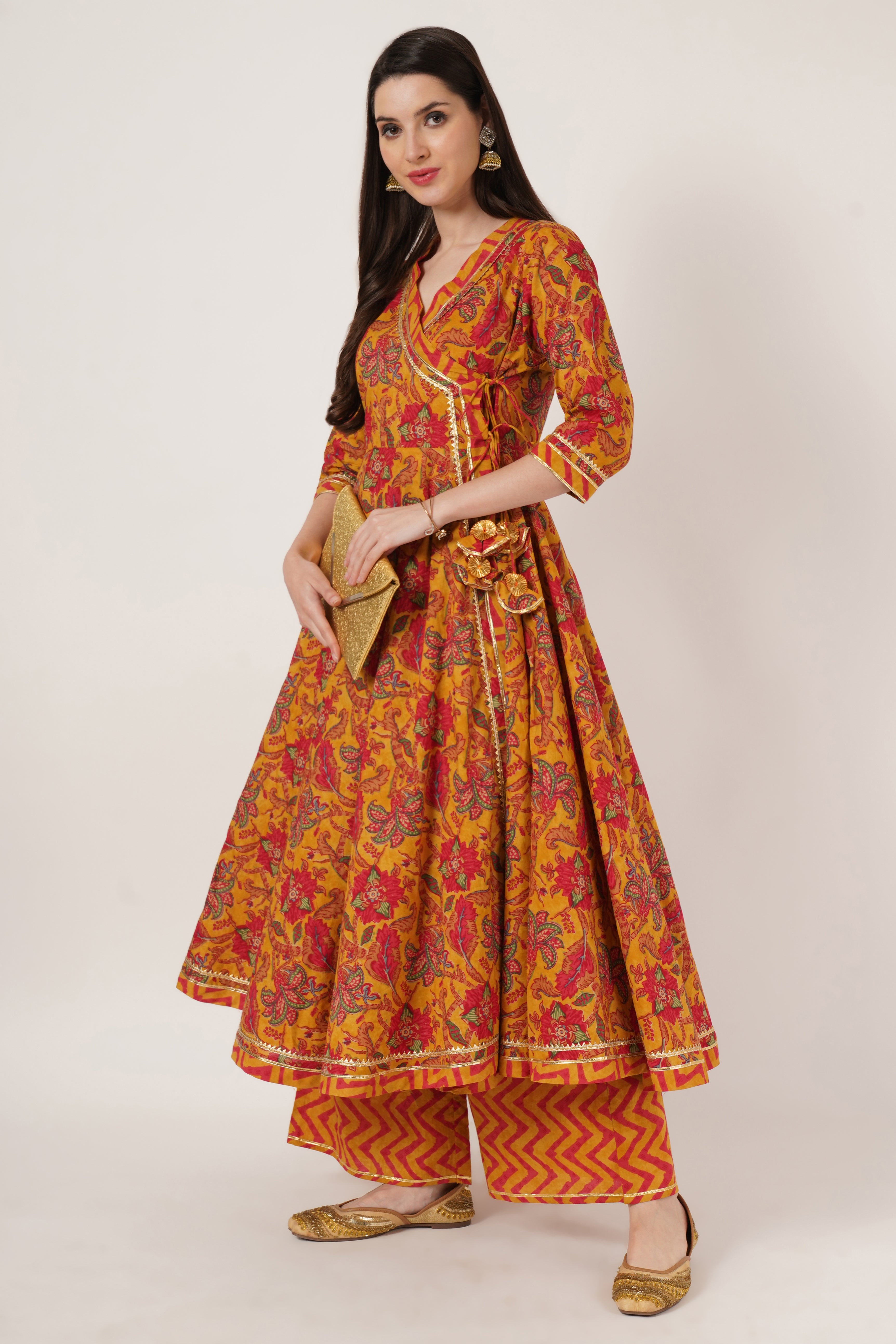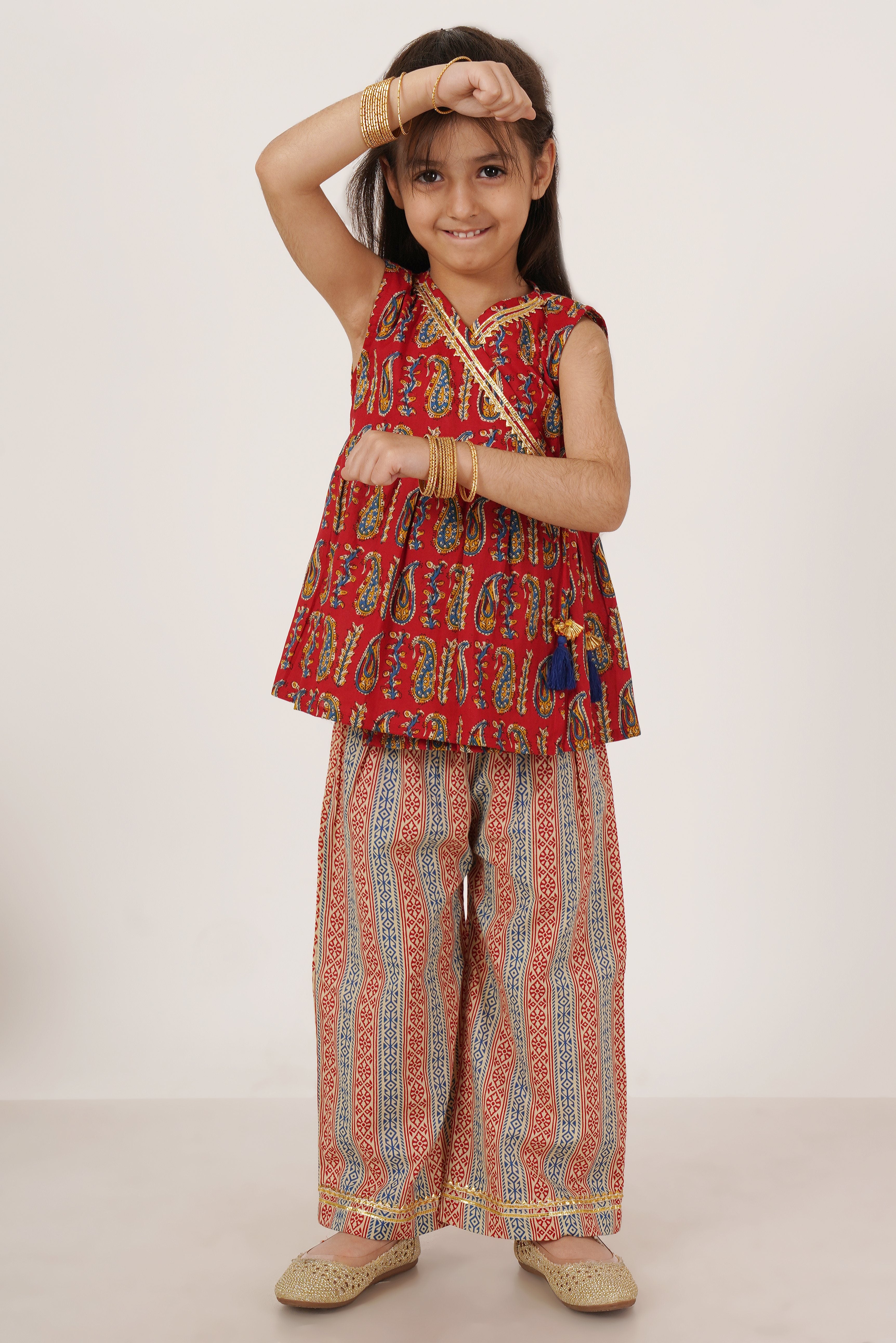 Rajasthani Angrakha Cotton Kurta Set with Palazzo For Women