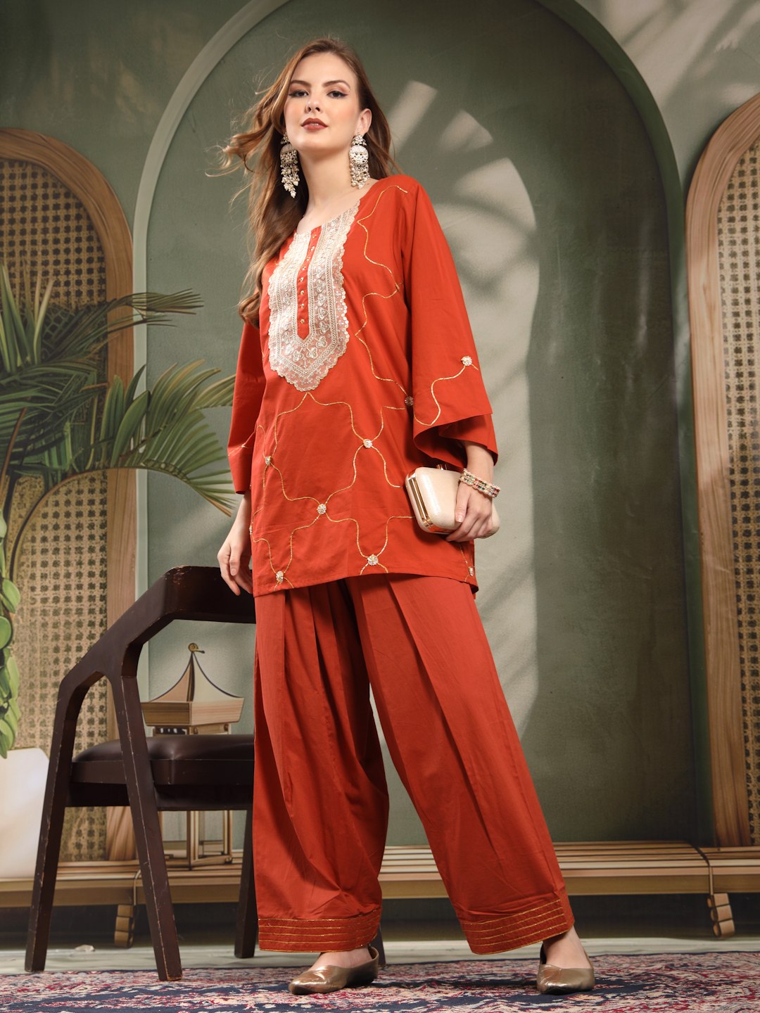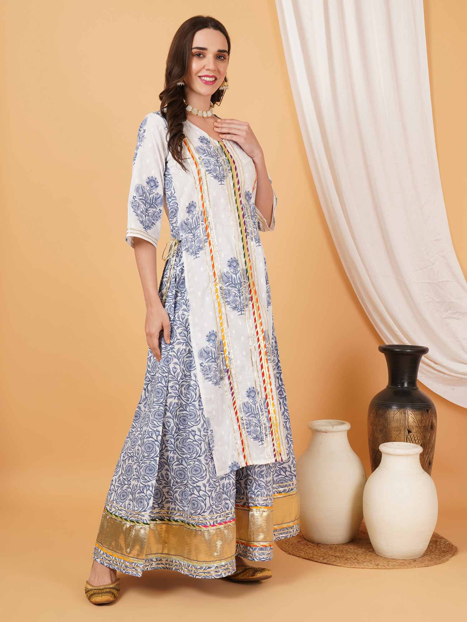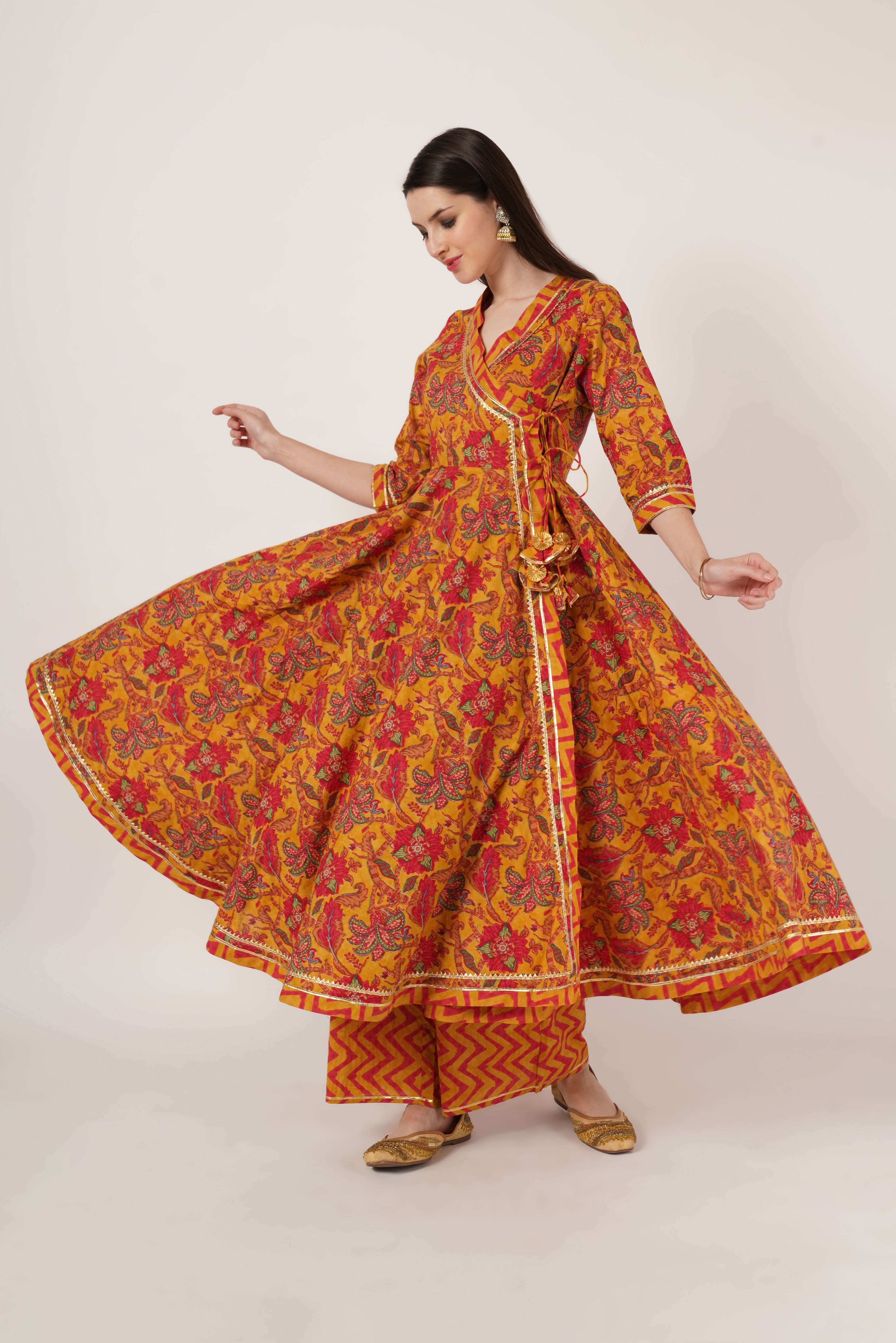 Rajasthani Angrakha Cotton Kurta Set with Palazzo For Women
