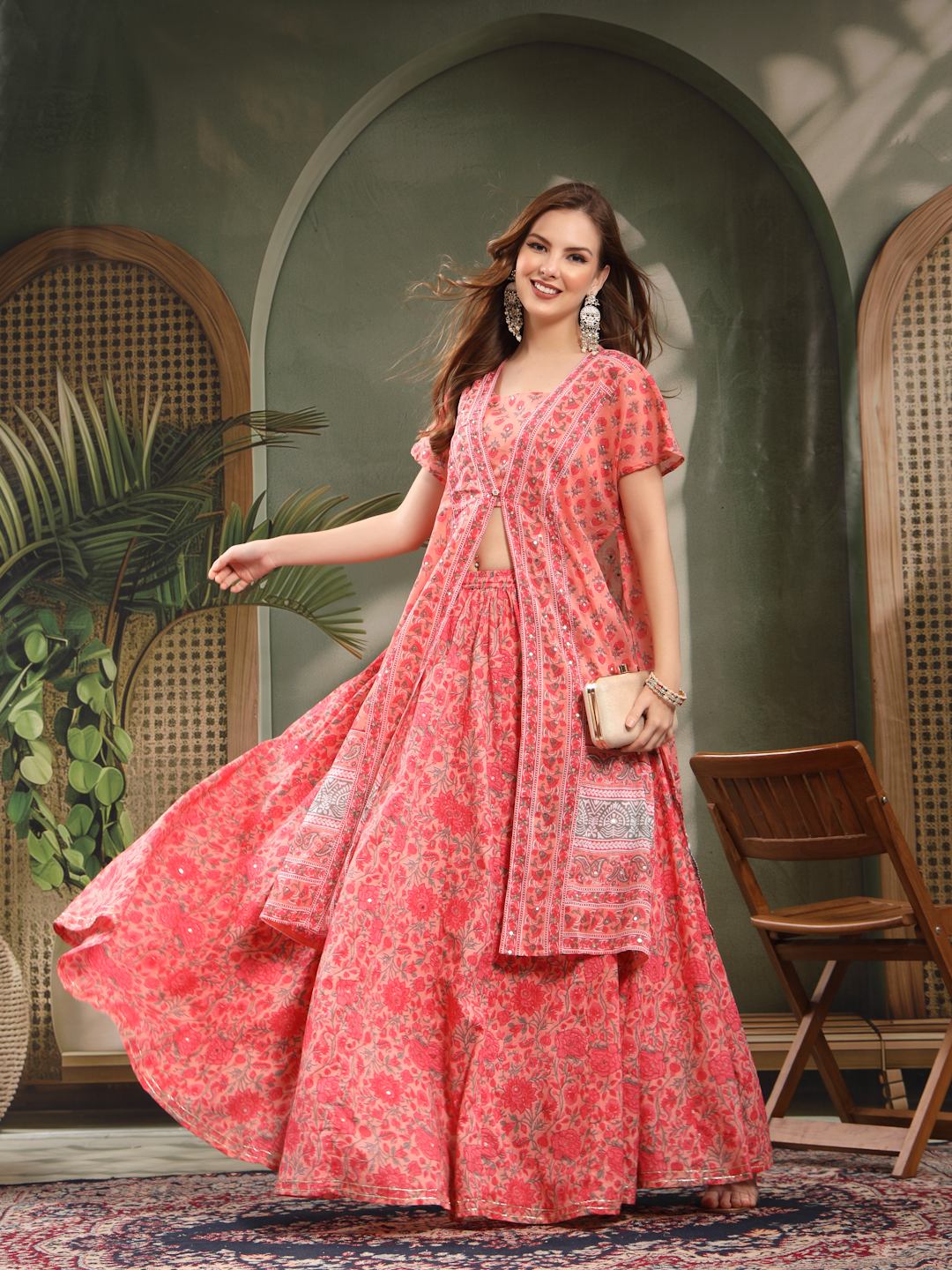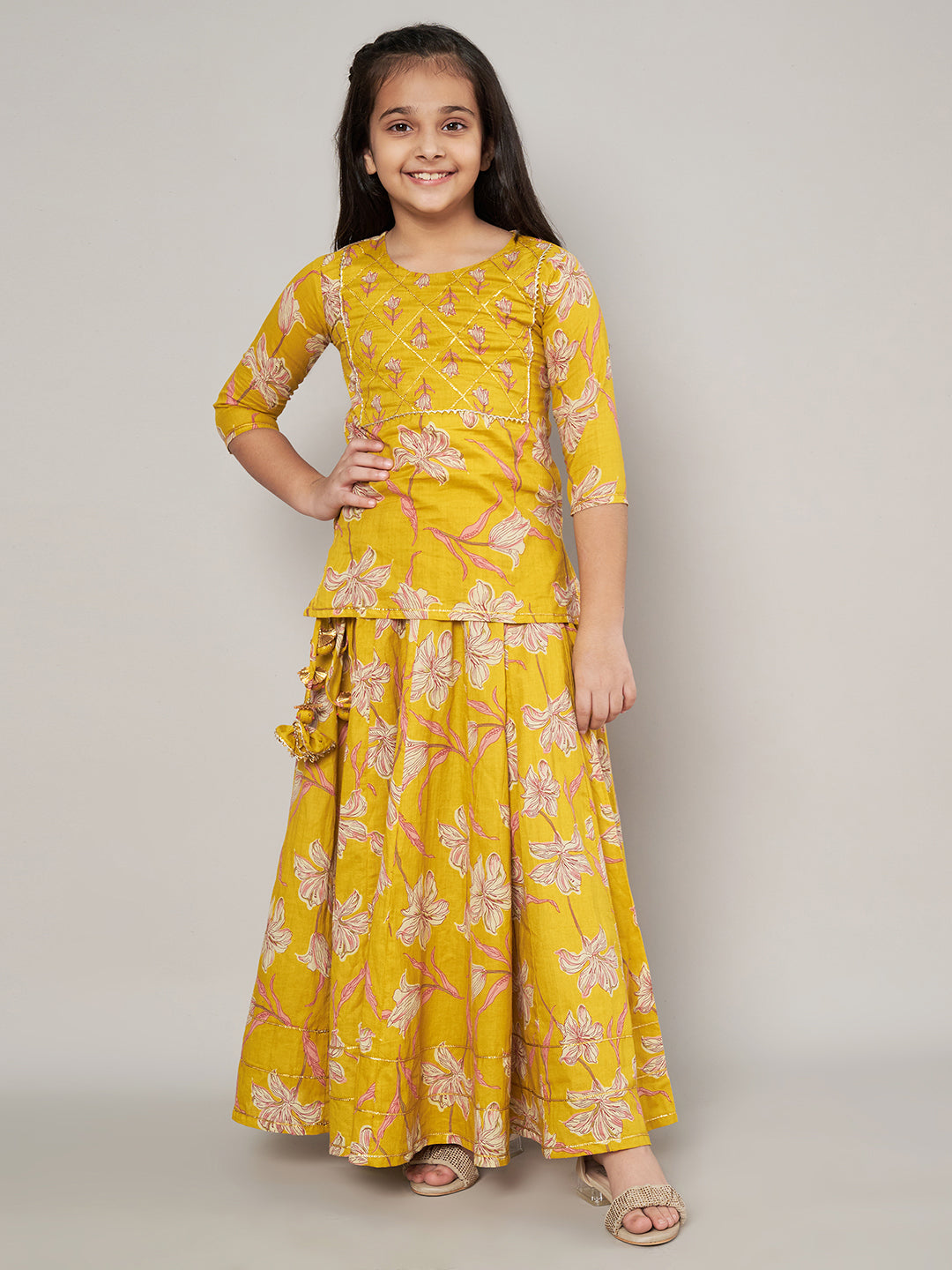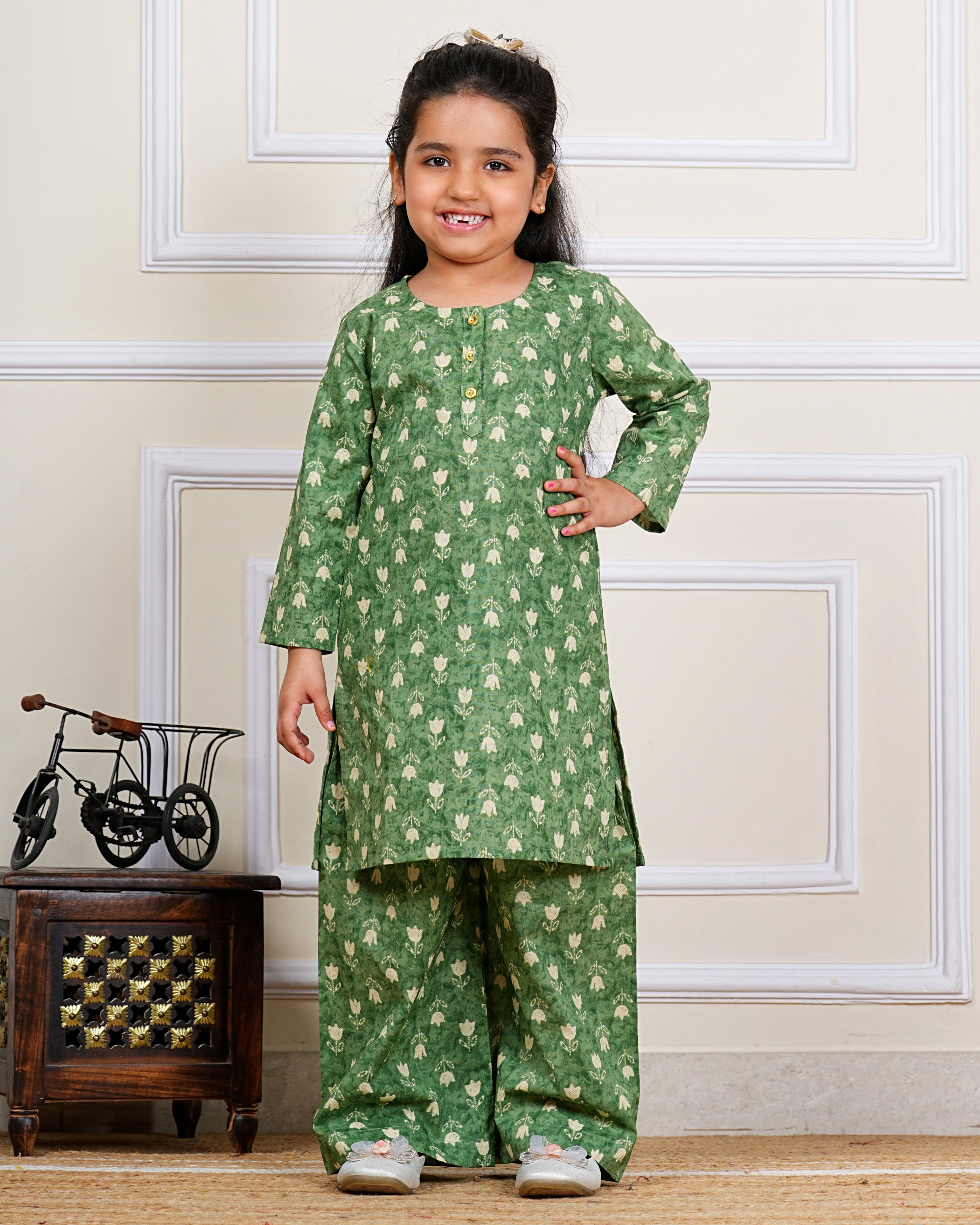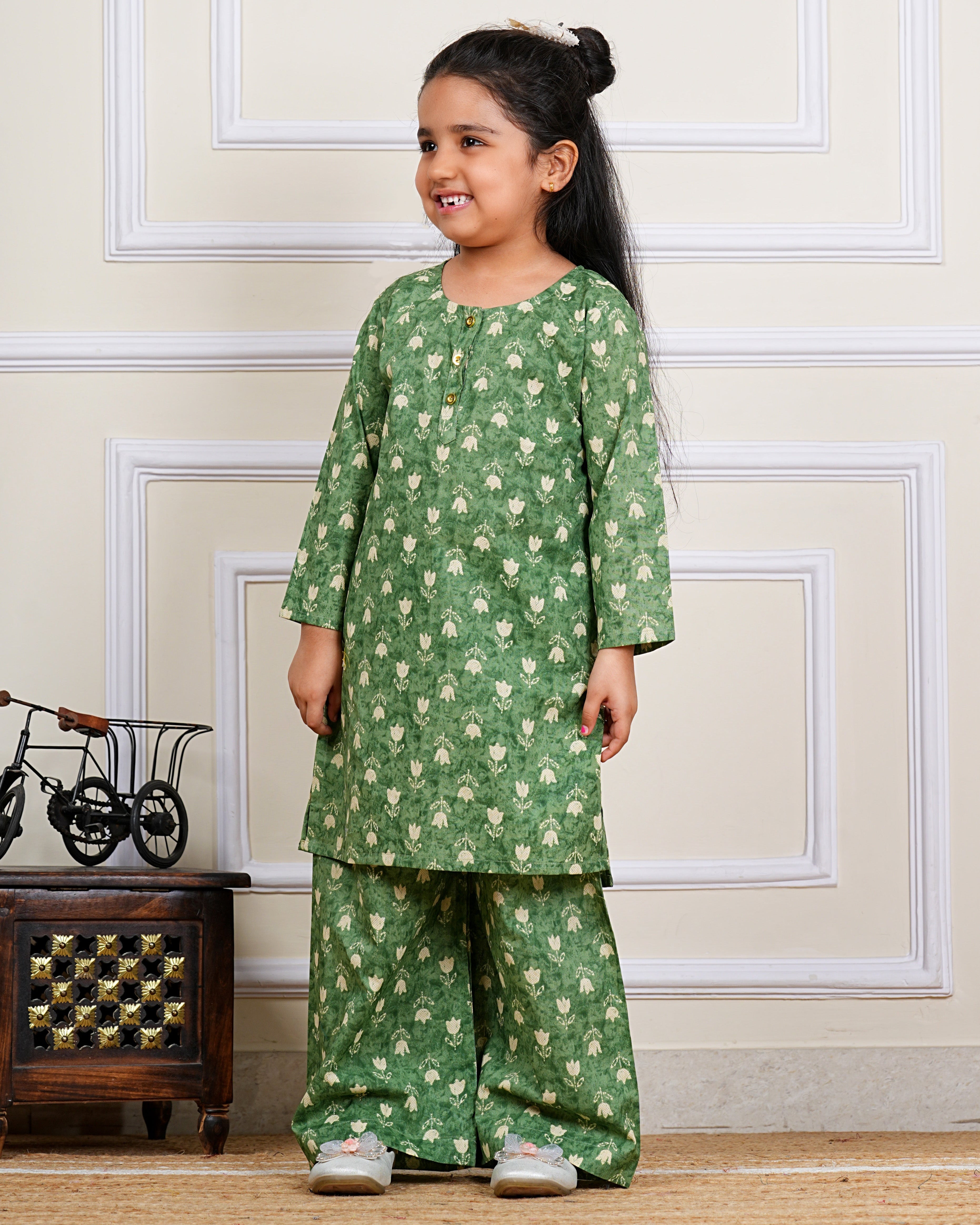 Traditional Jaipuri Kurta And Palazzo For Girls