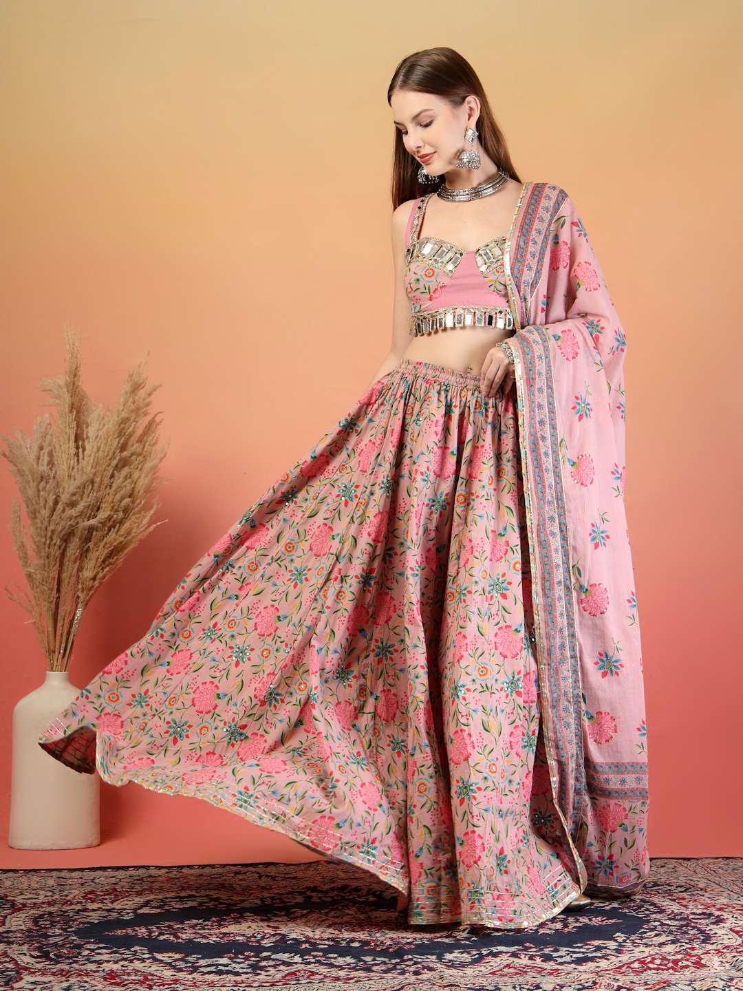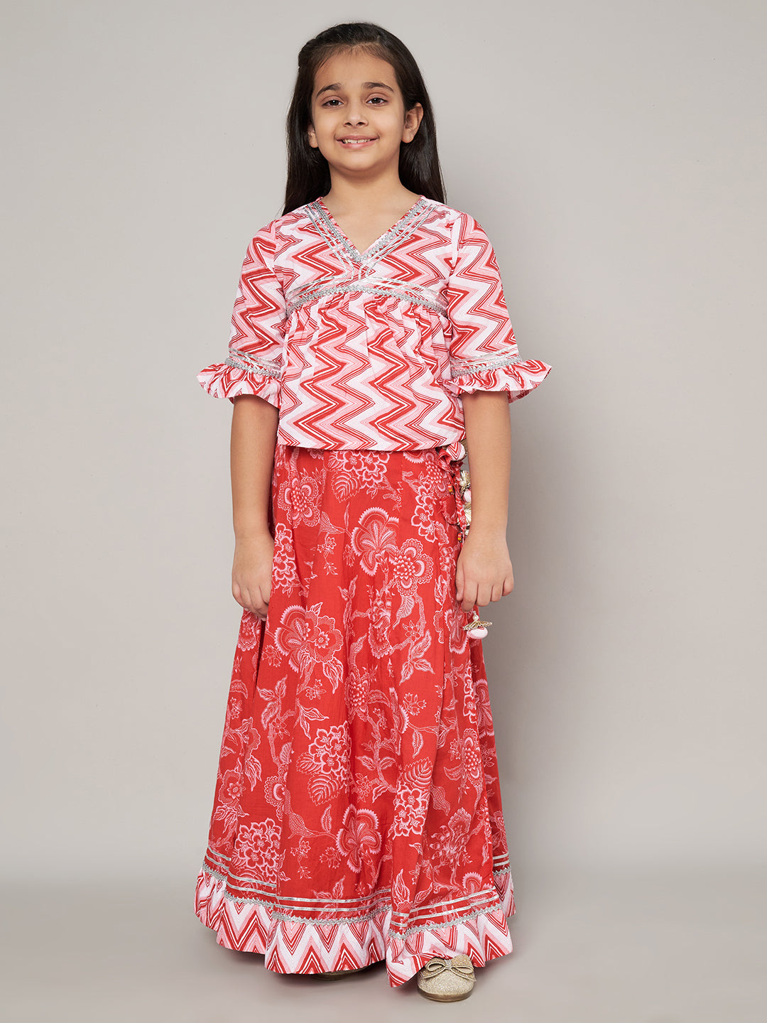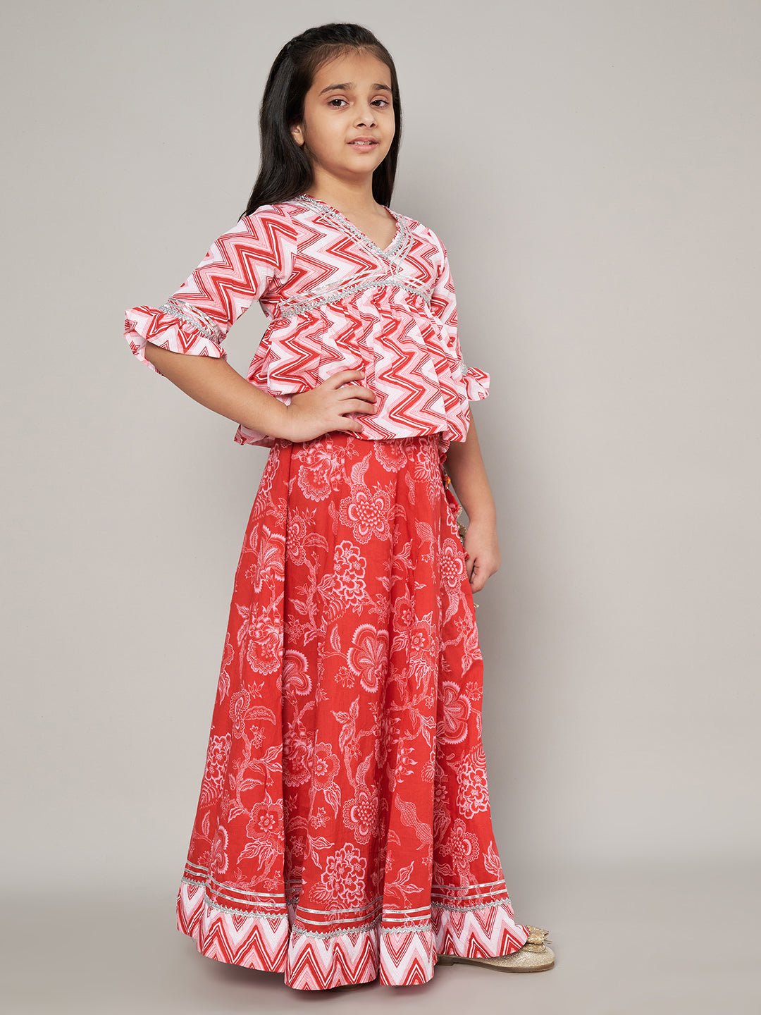Stylish Alia Cut Top with Printed Skirt for Girls