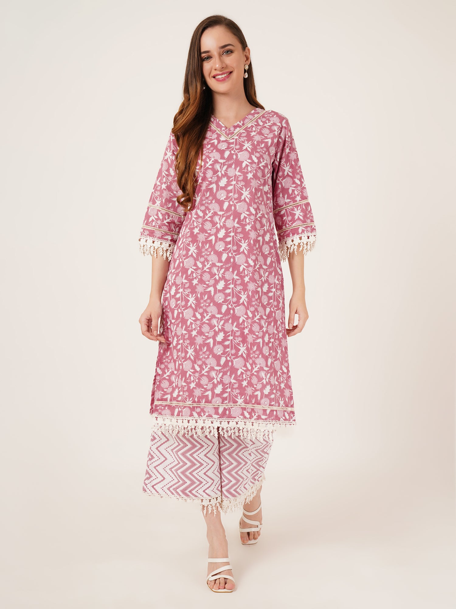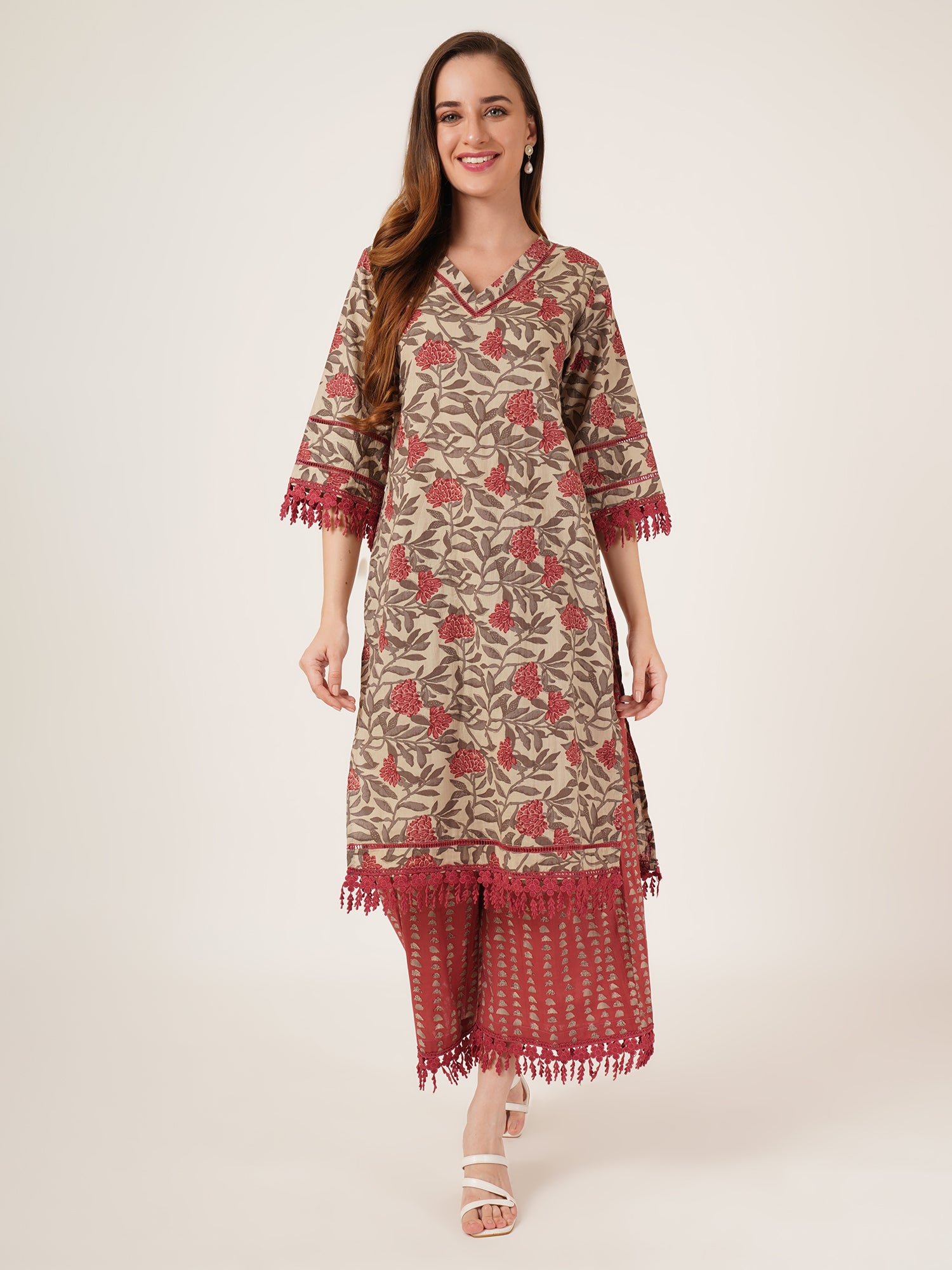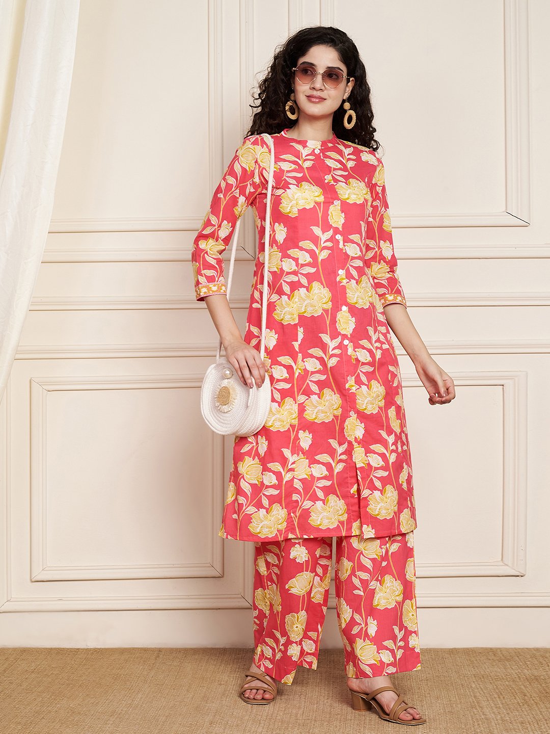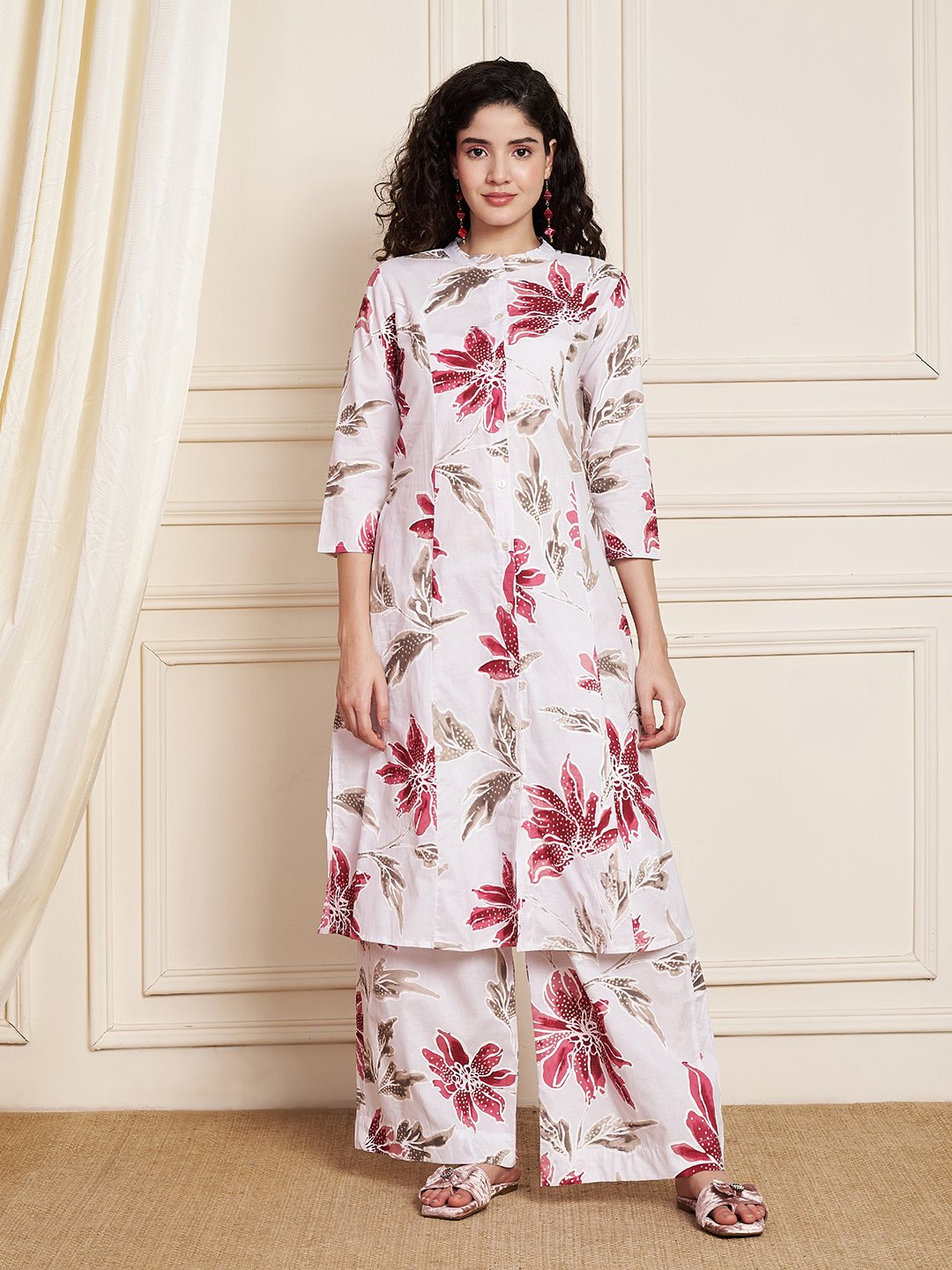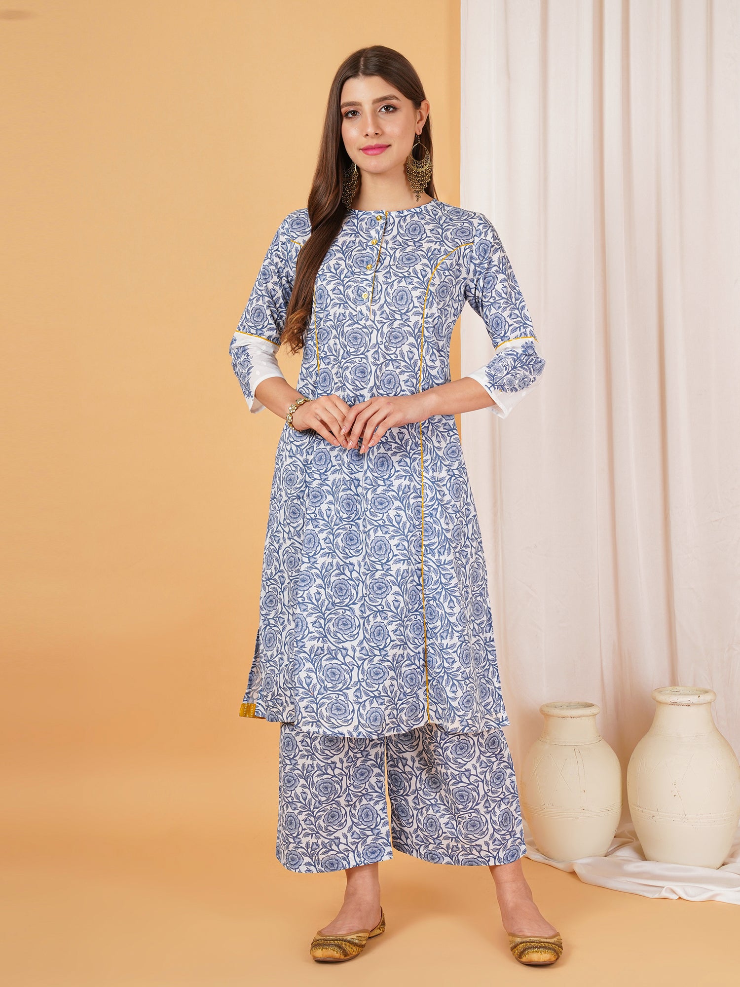Straight Cotton Floral Printed Kurta with Palazzo Set for Women