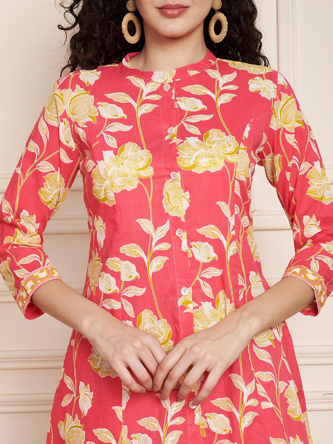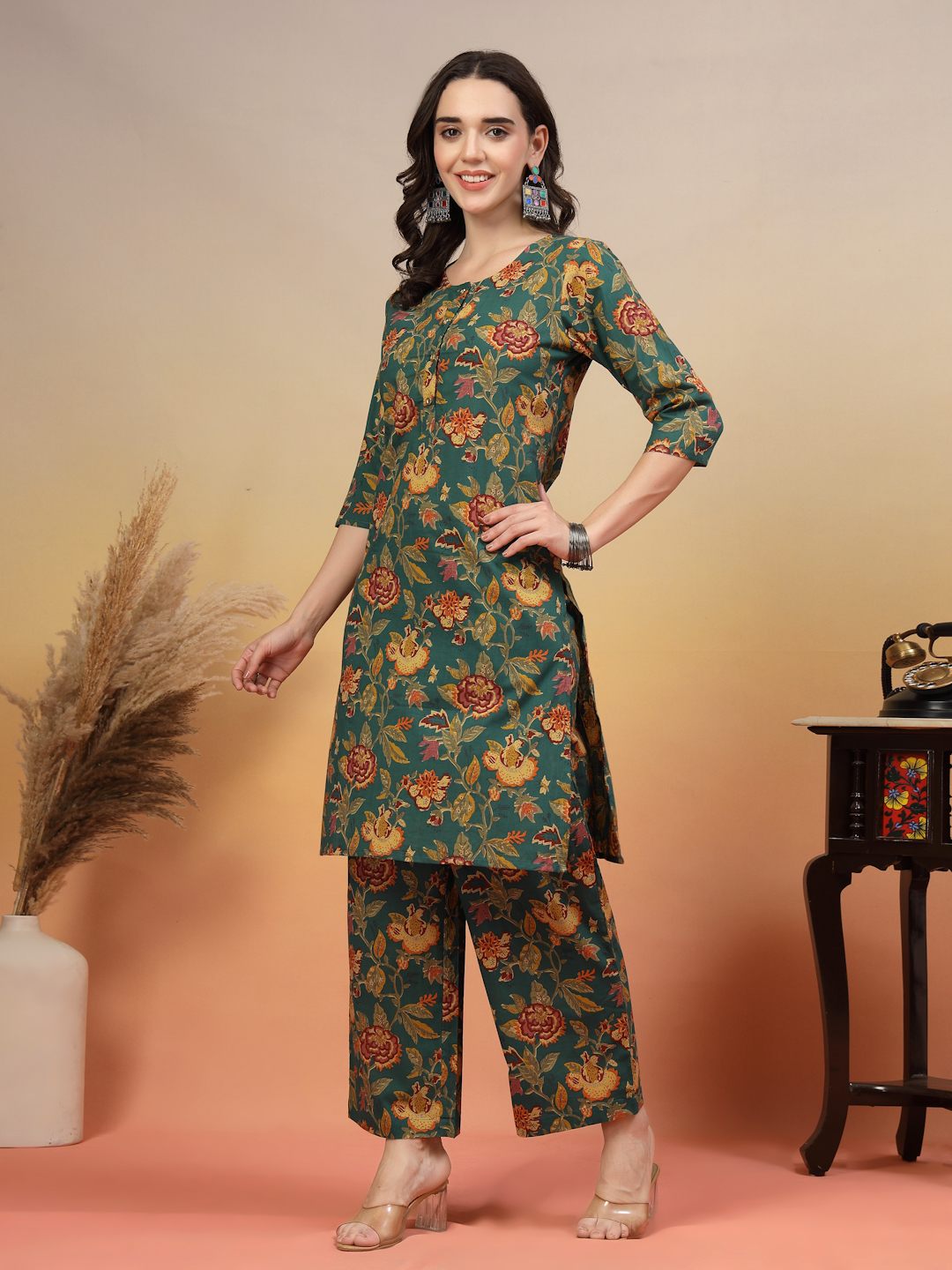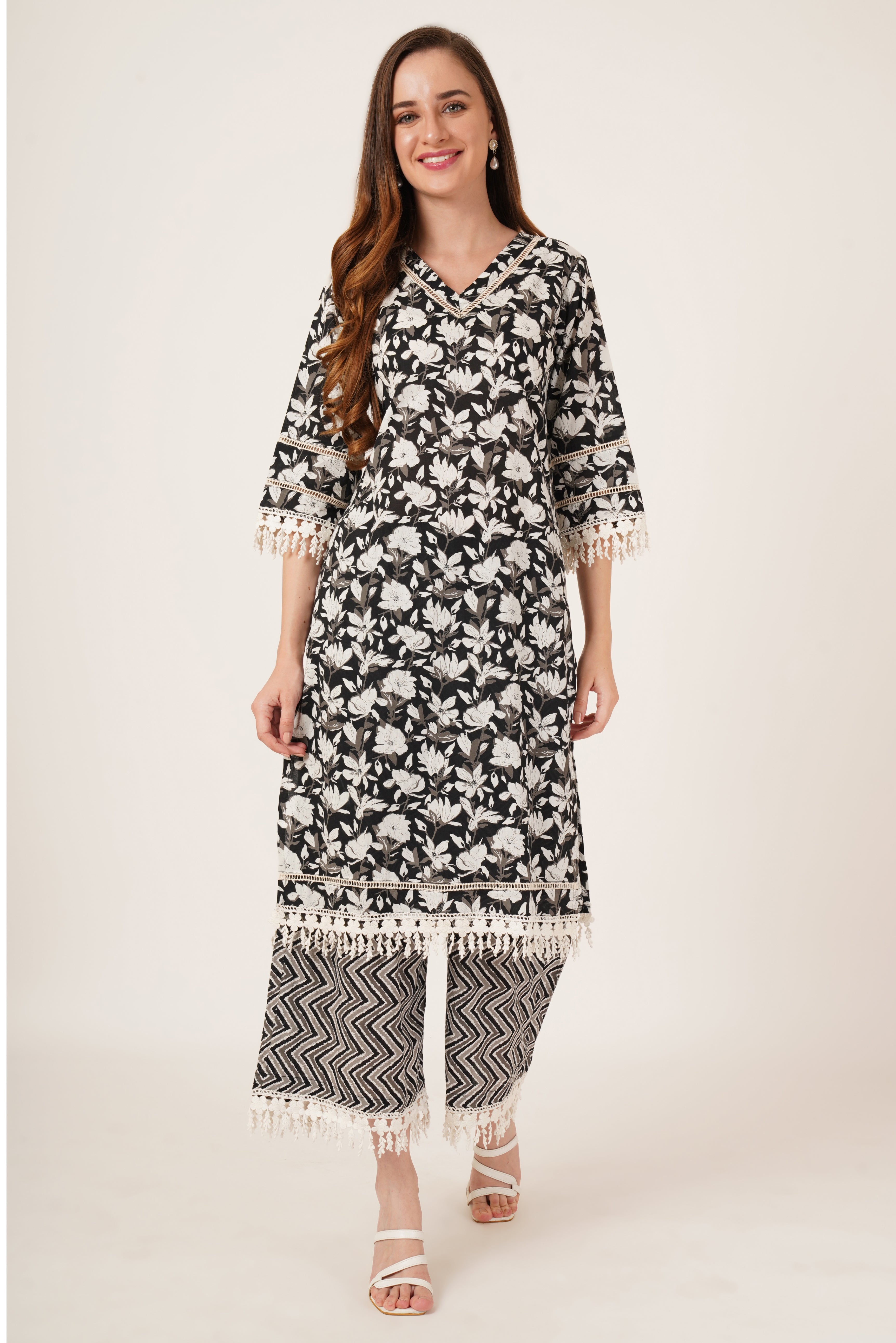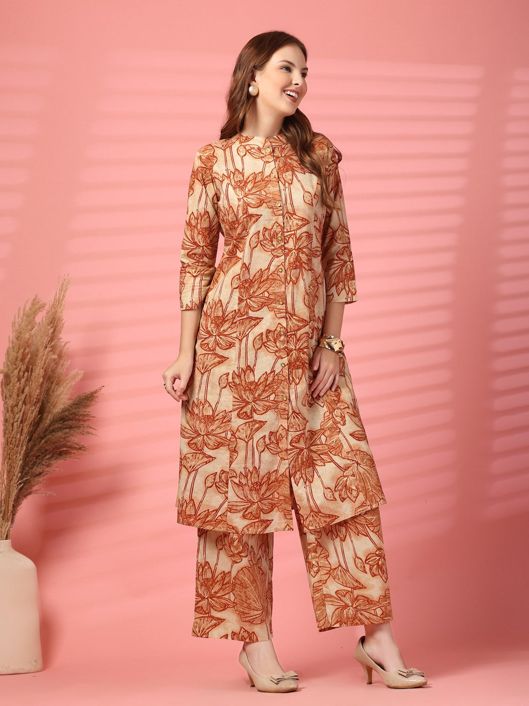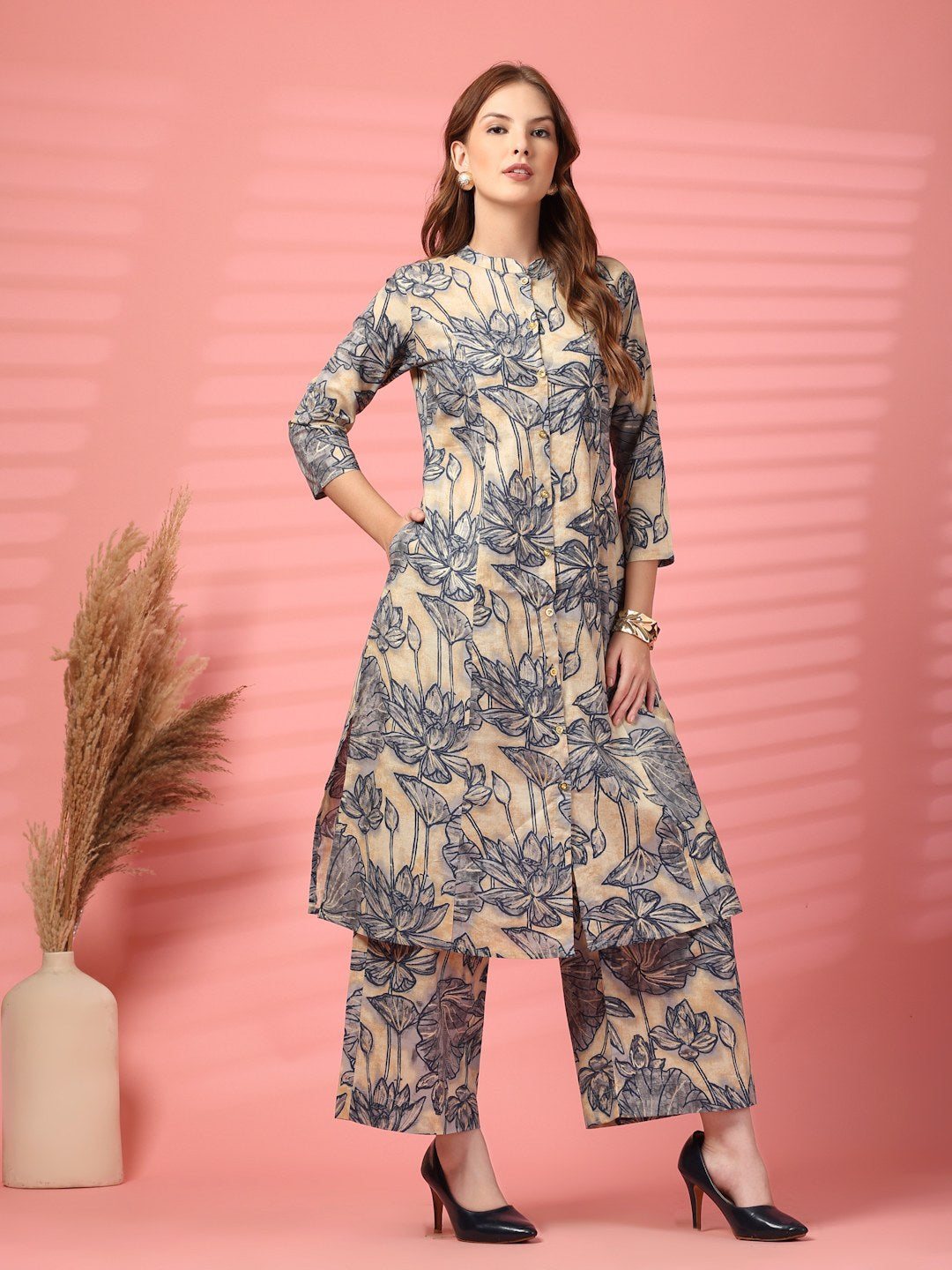 Straight Cotton Floral Printed Kurta with Palazzo Set for Women