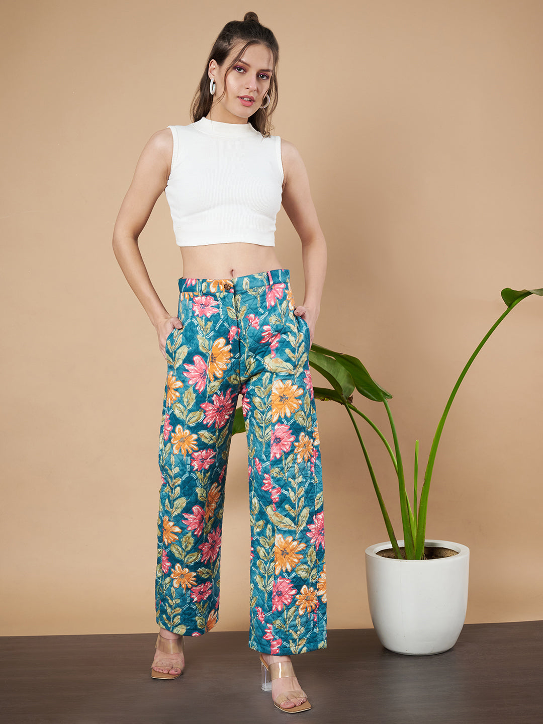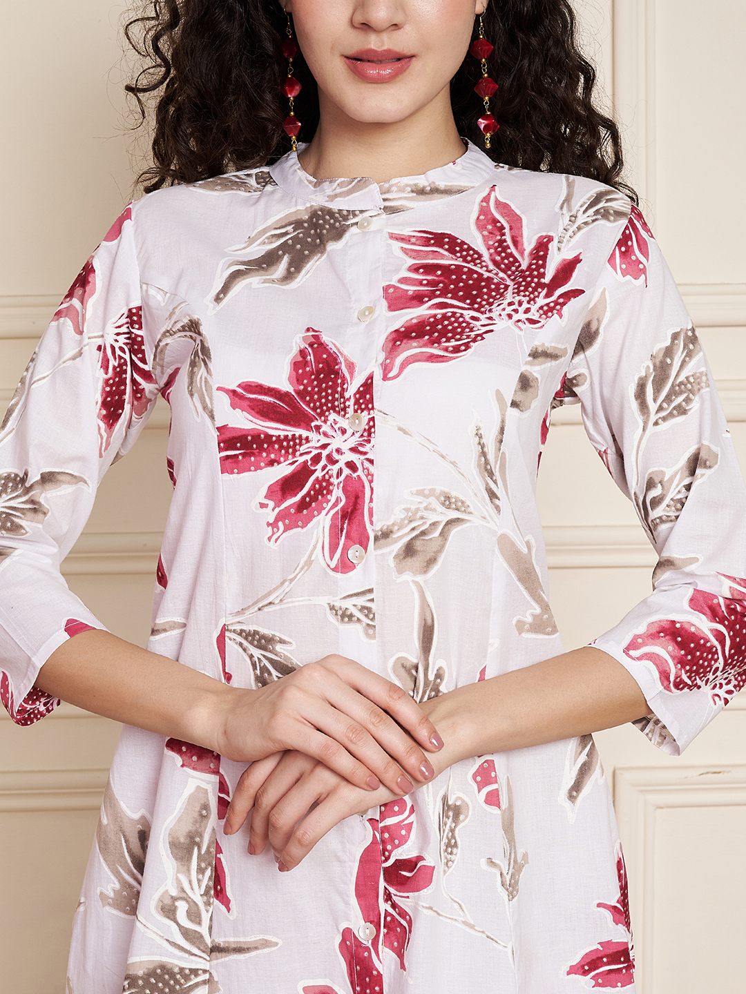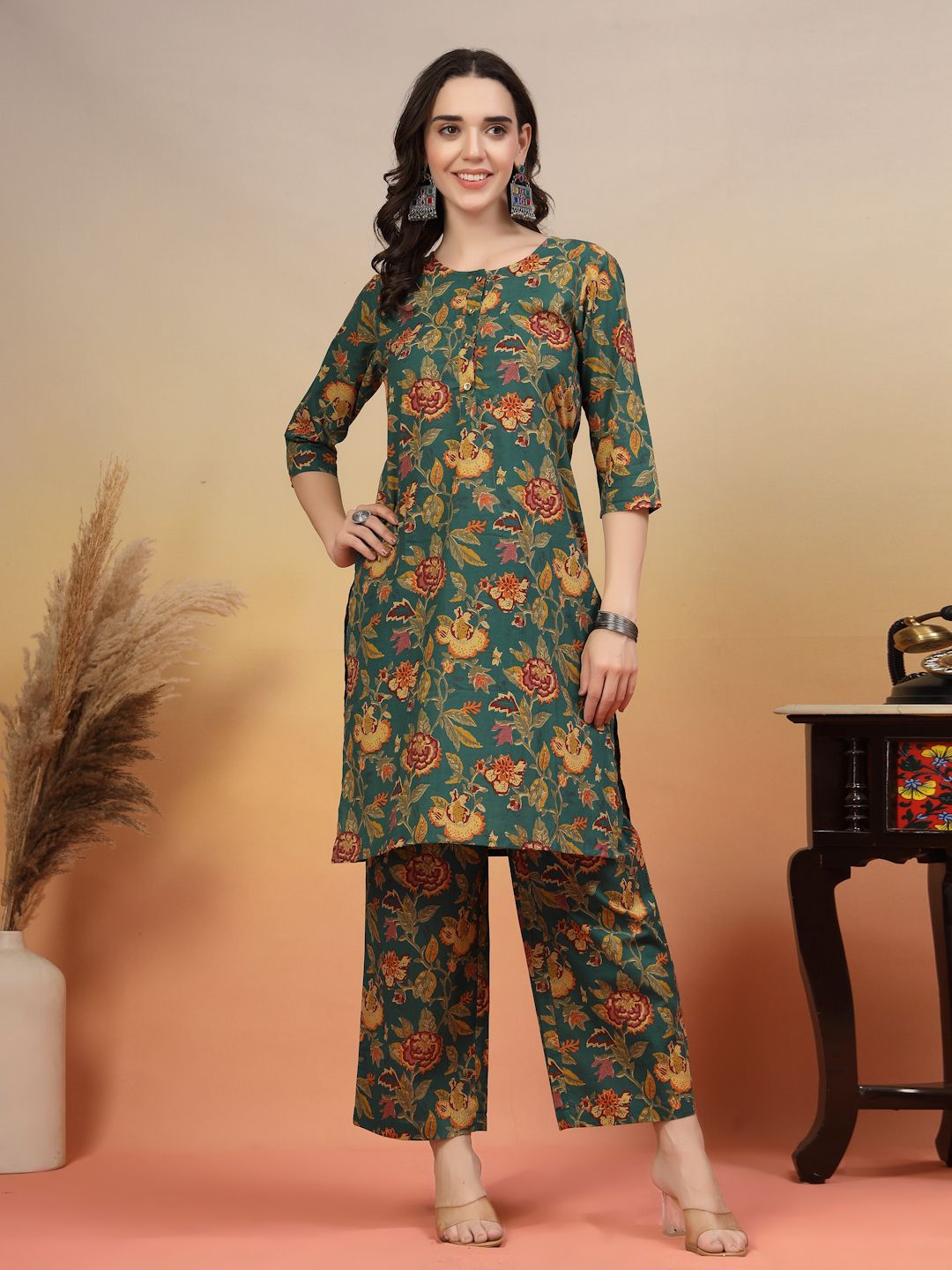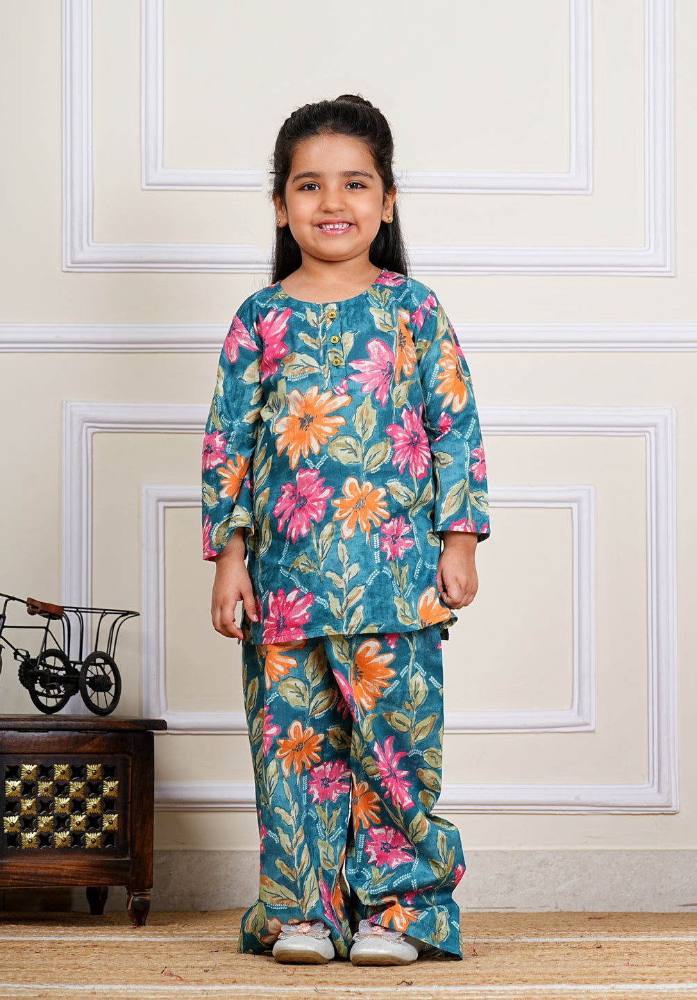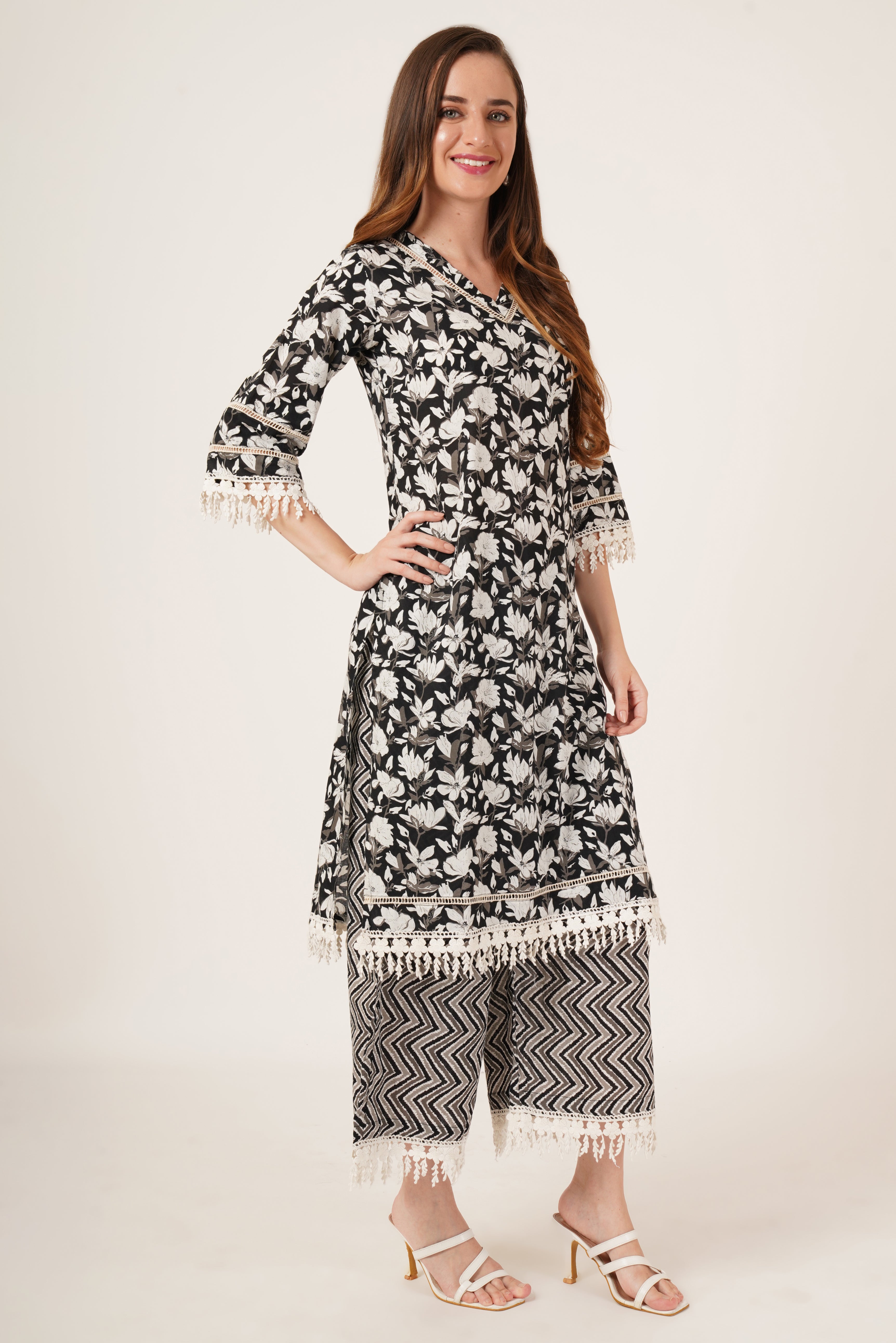Straight Cotton Floral Printed Kurta with Palazzo Set for Women