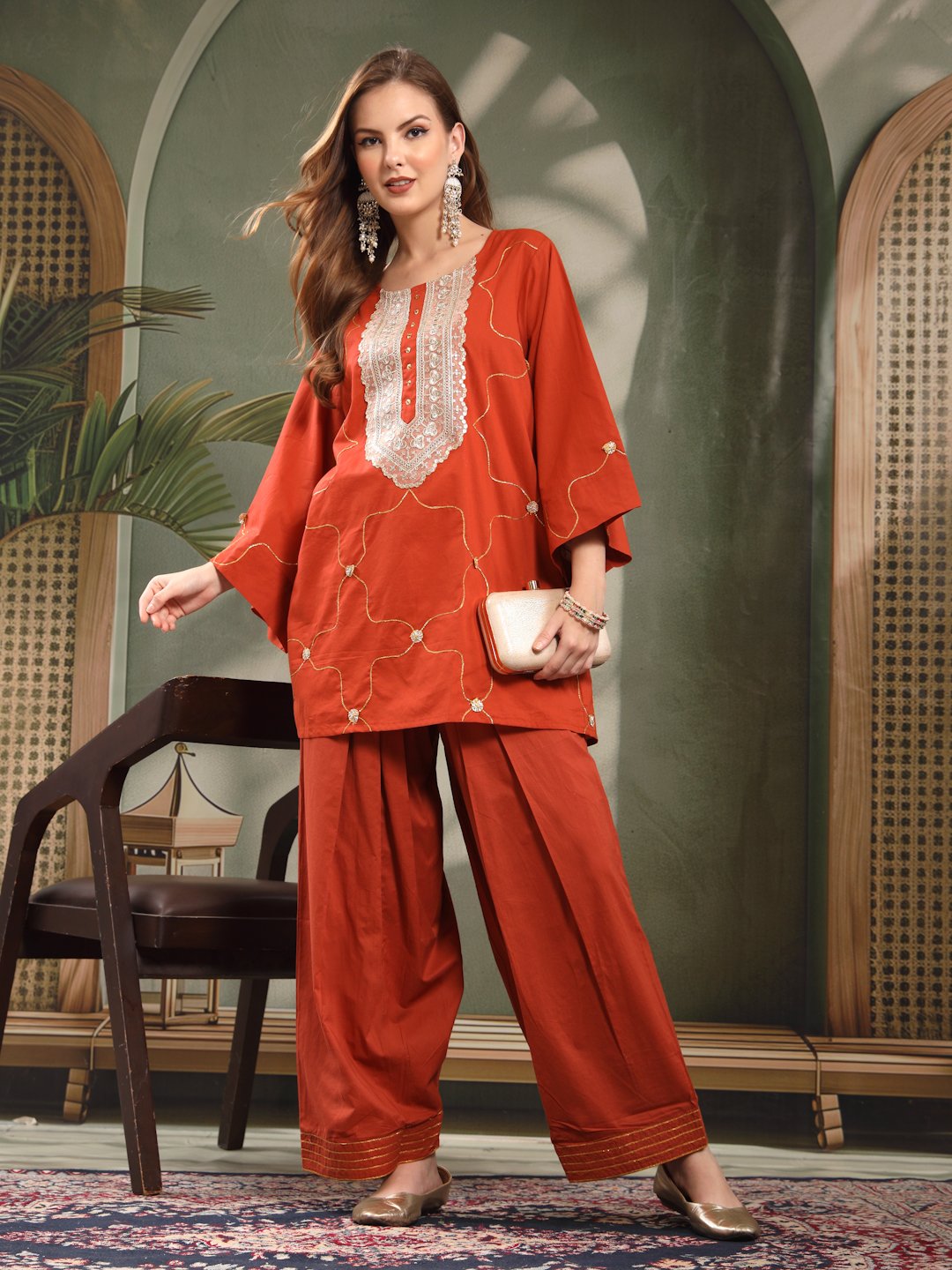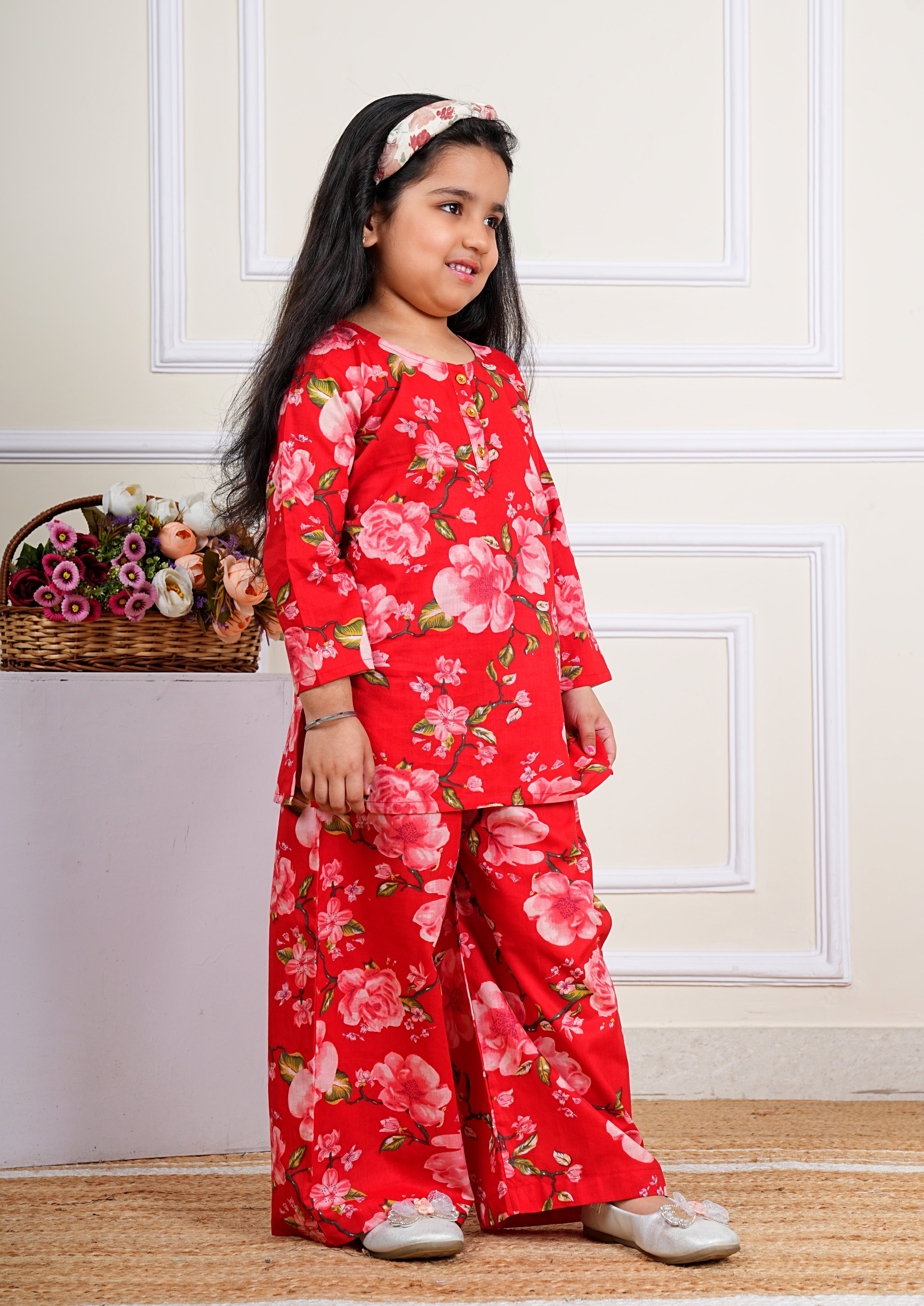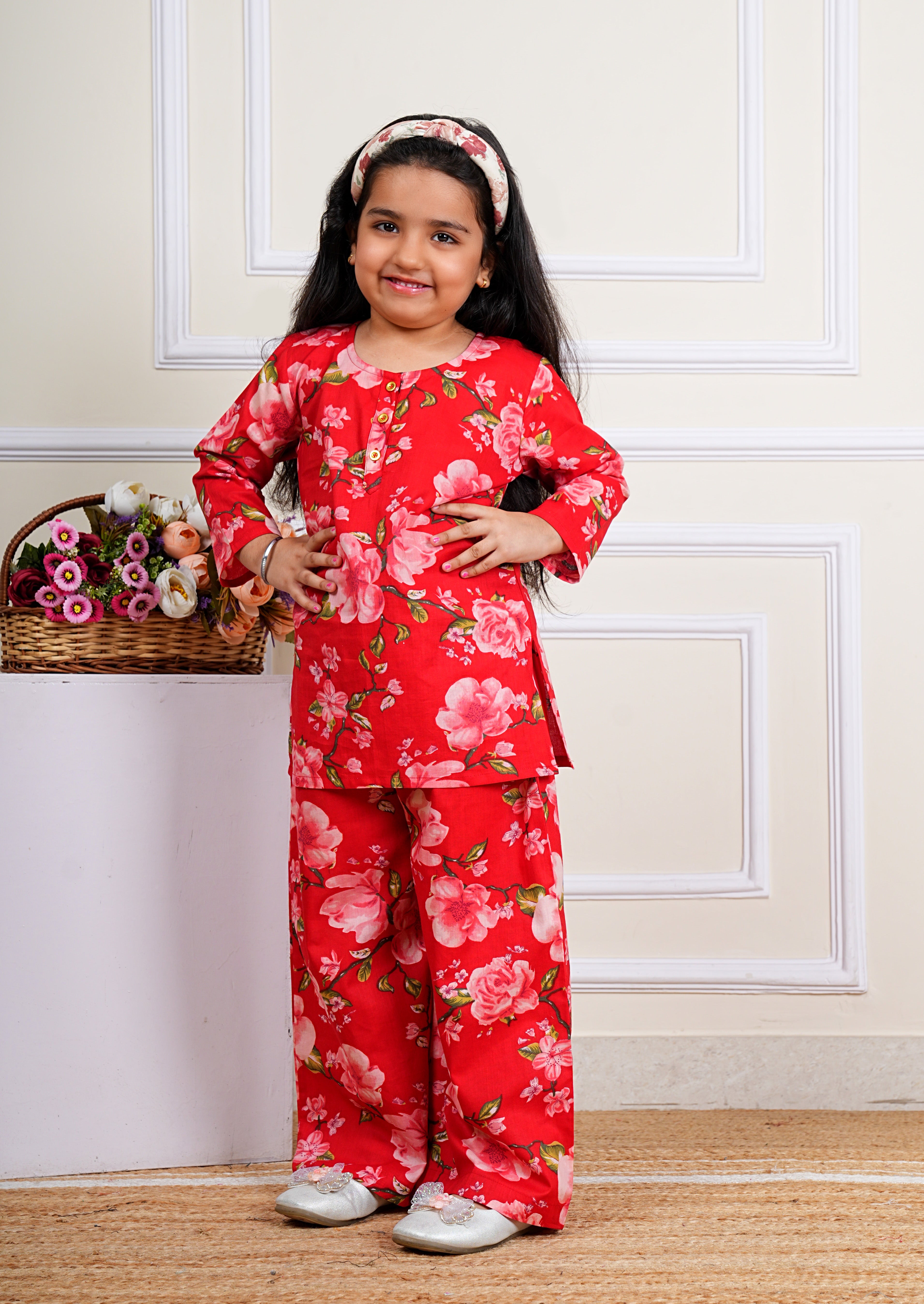 Stylish Red Full Sleeves Kurta and Palazzo for Girls