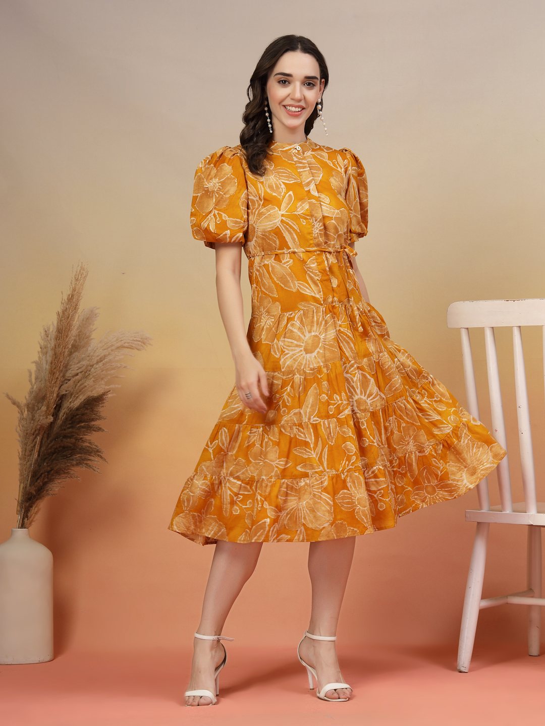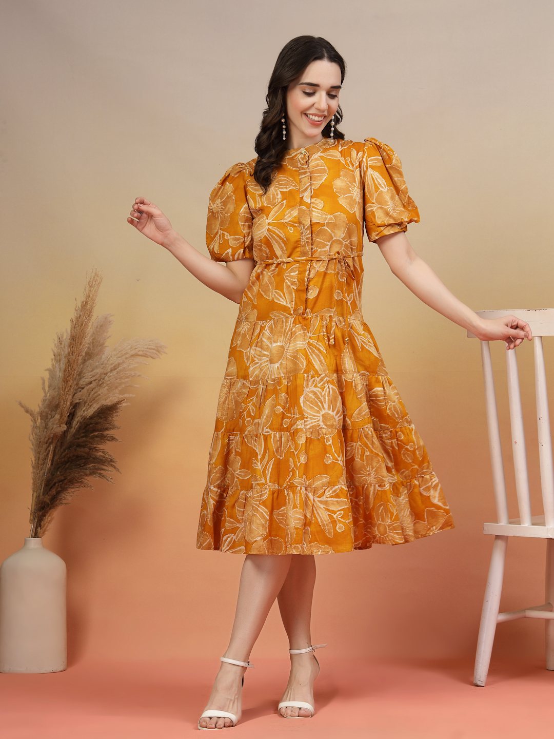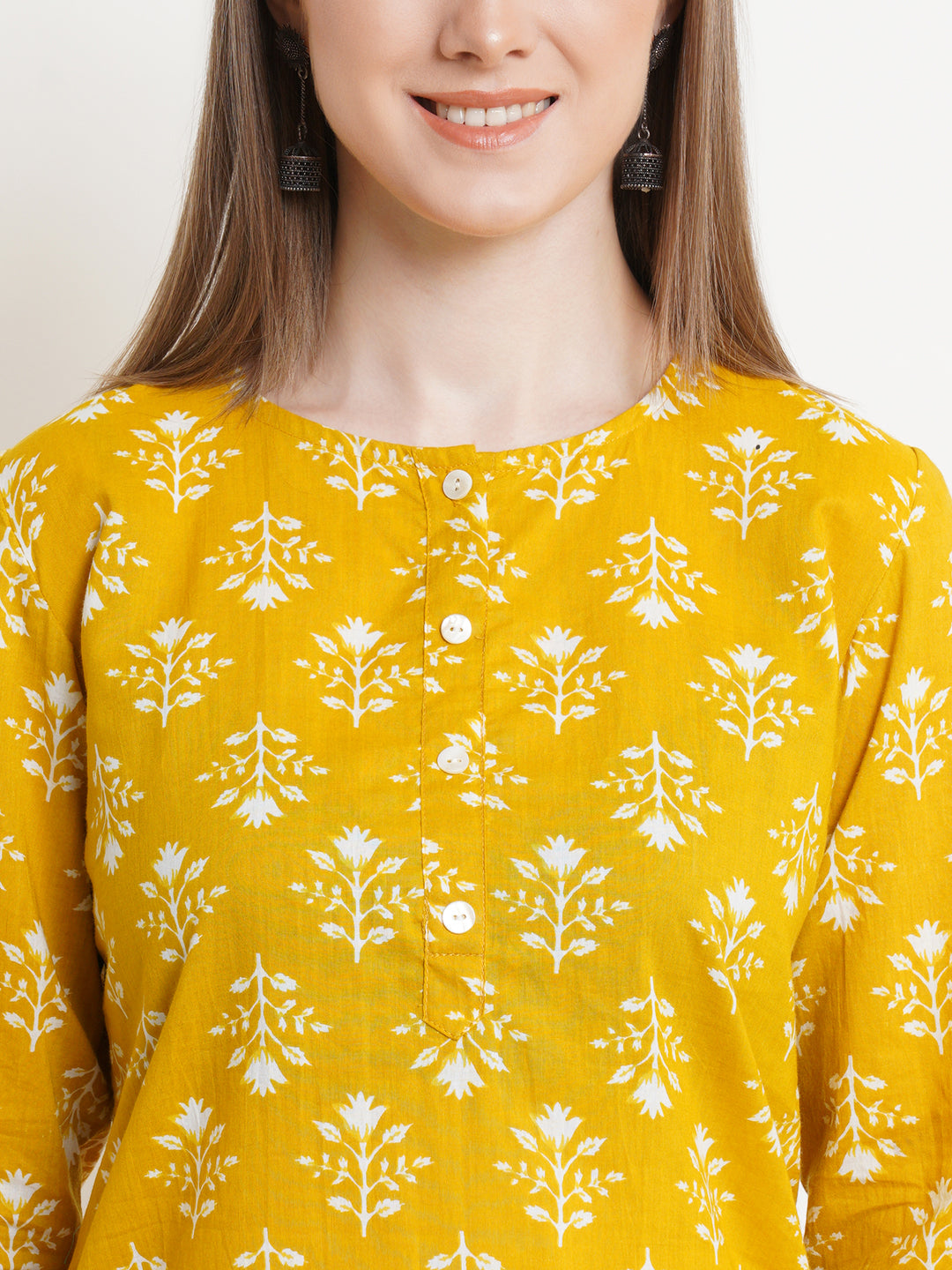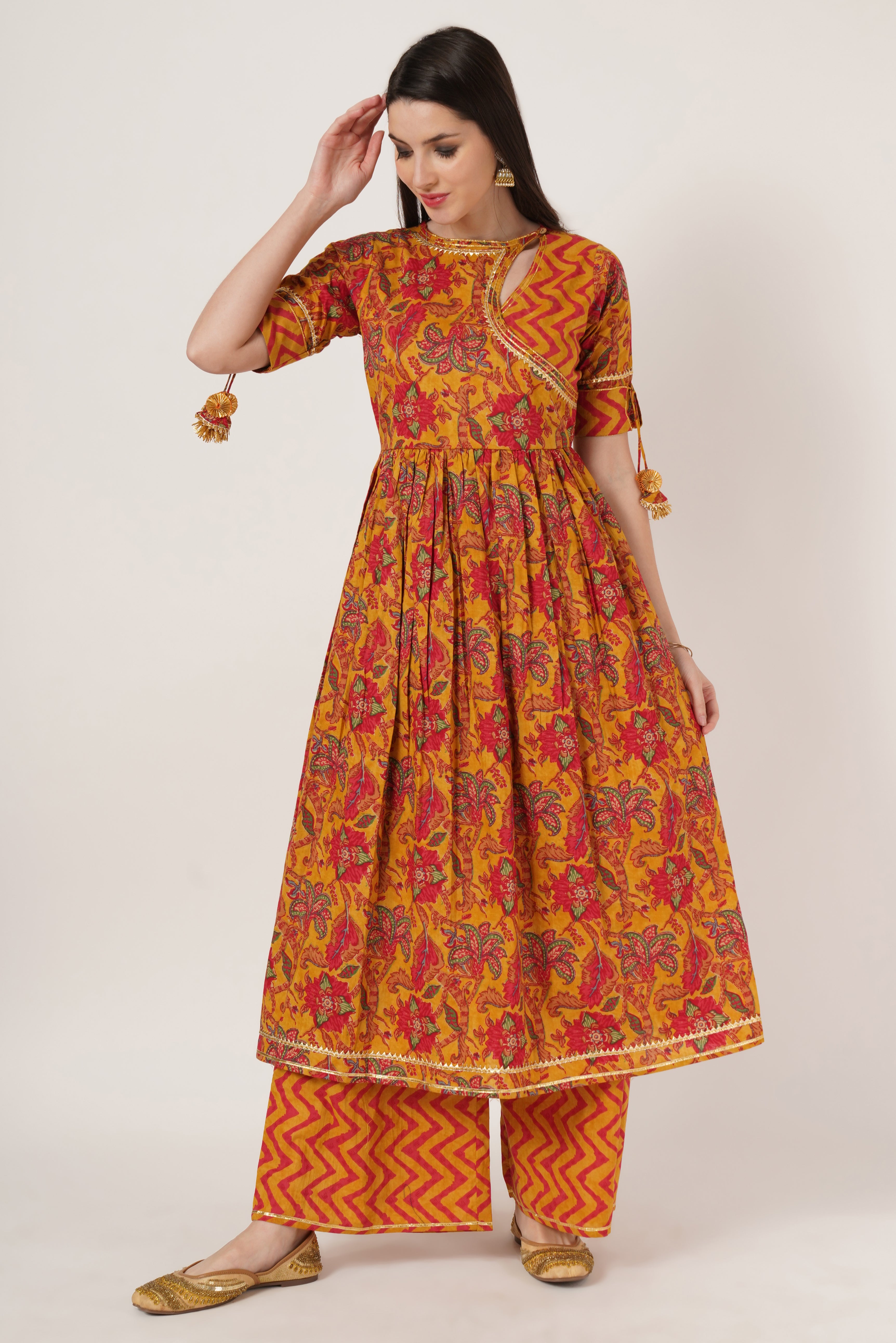 Mustard Yellow Pure Cotton Floral Printed Kurta Salwar Set for Women