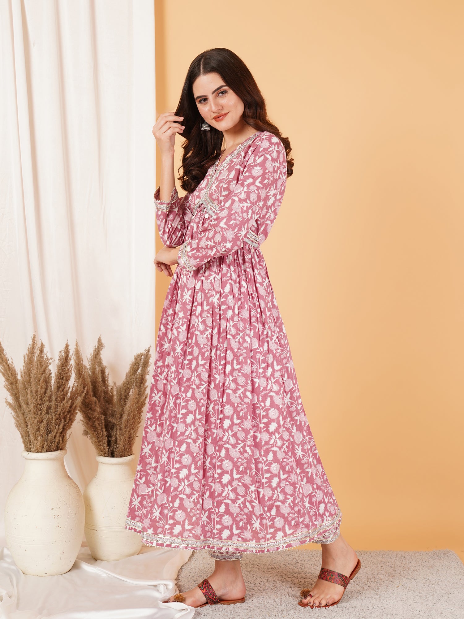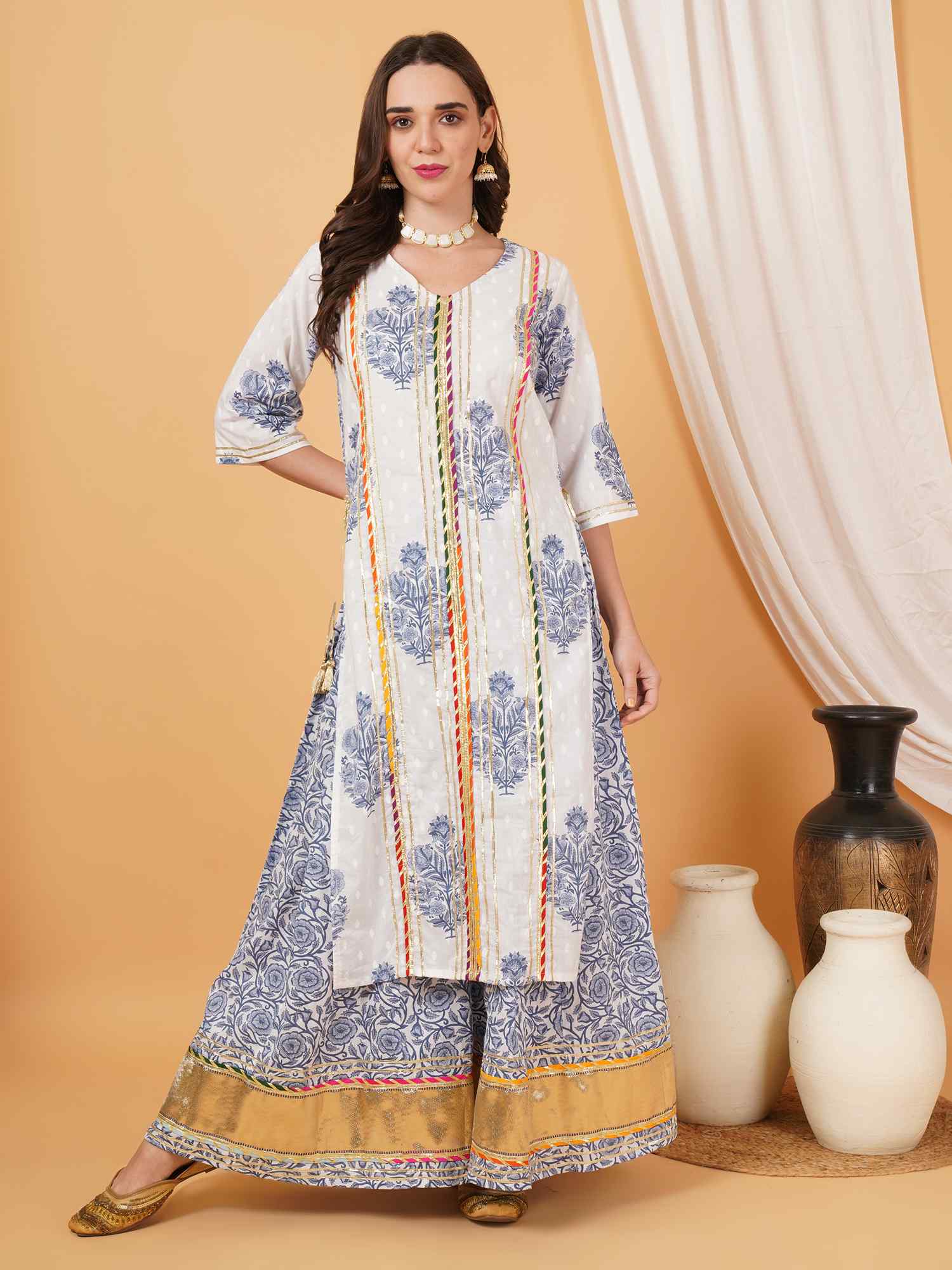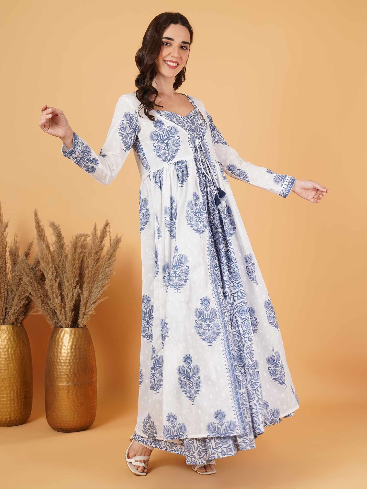 Elegant Jaipuri Cotton Flared Anarkali Kurta with Palazzo for Women