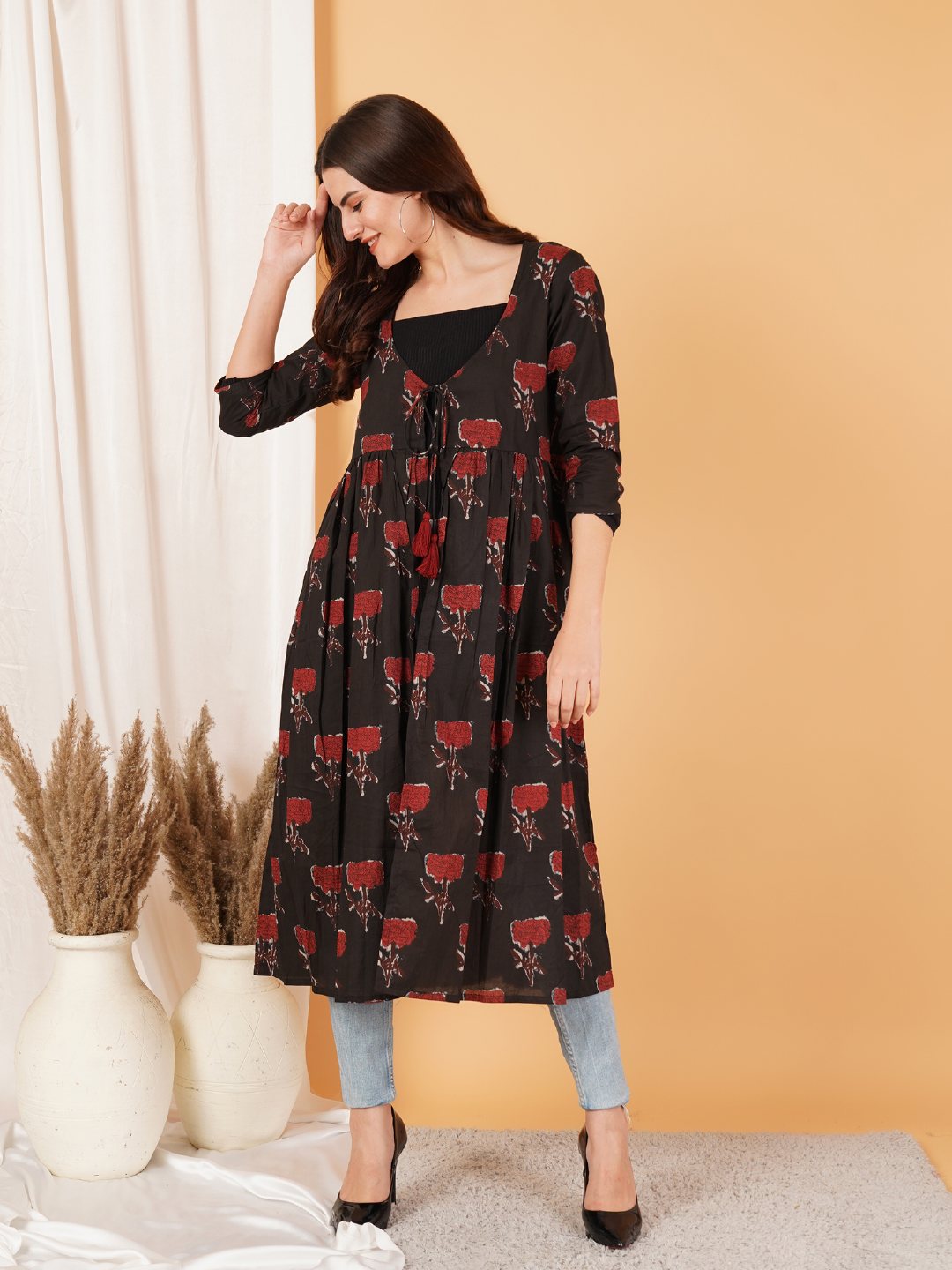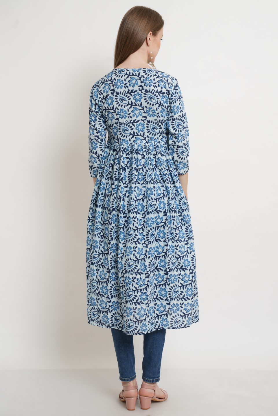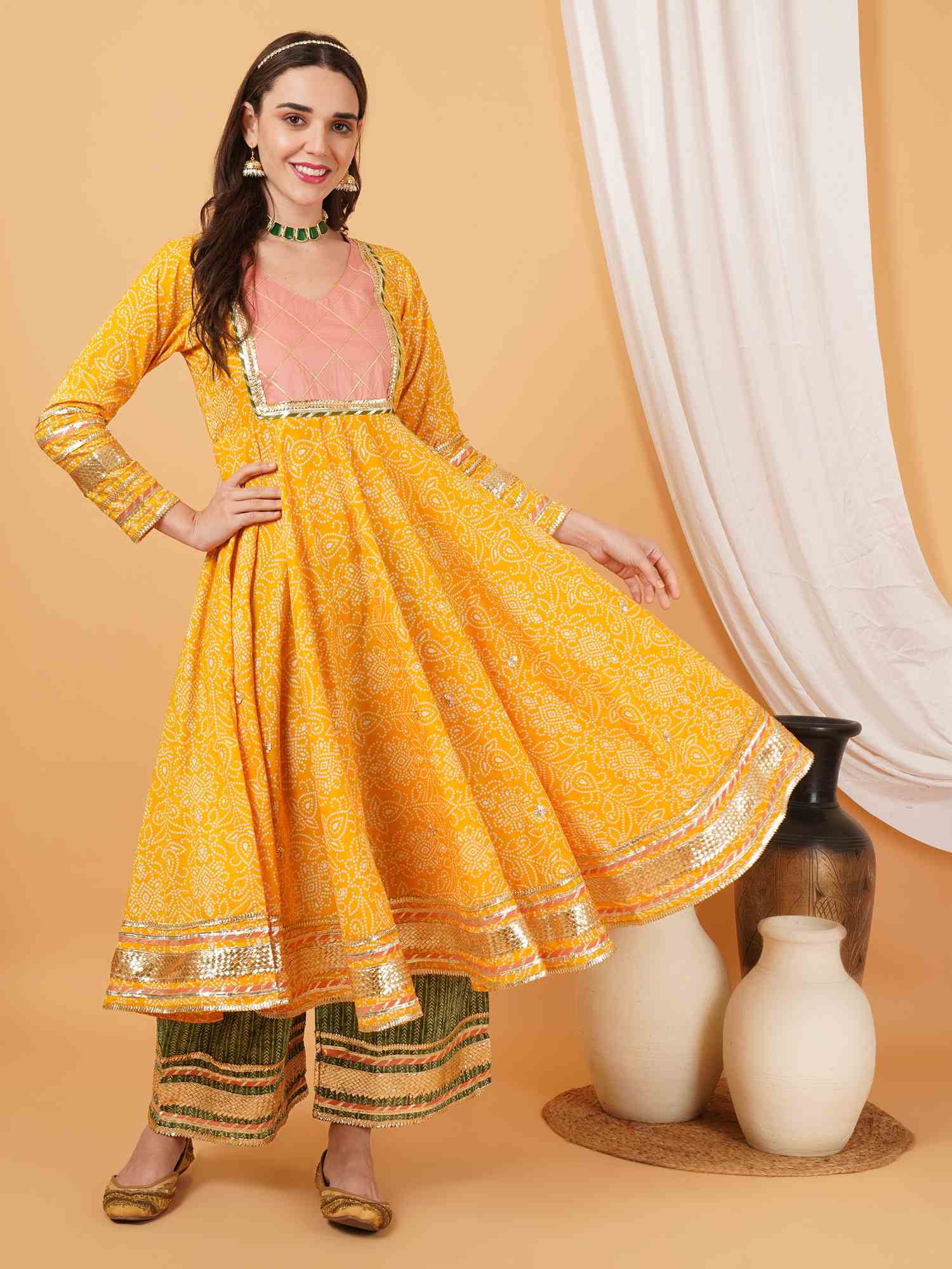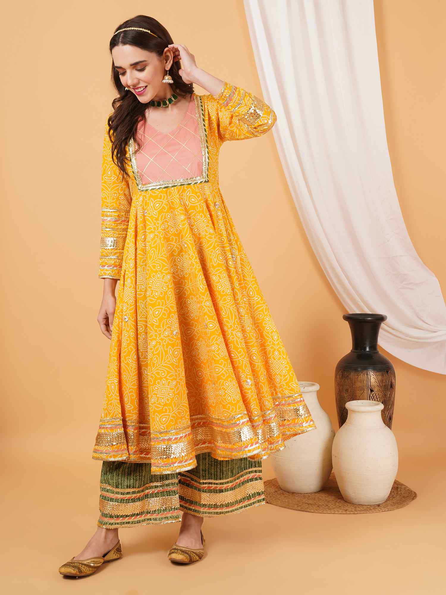 Elegant Jaipuri Cotton Flared Anarkali Kurta with Palazzo for Women