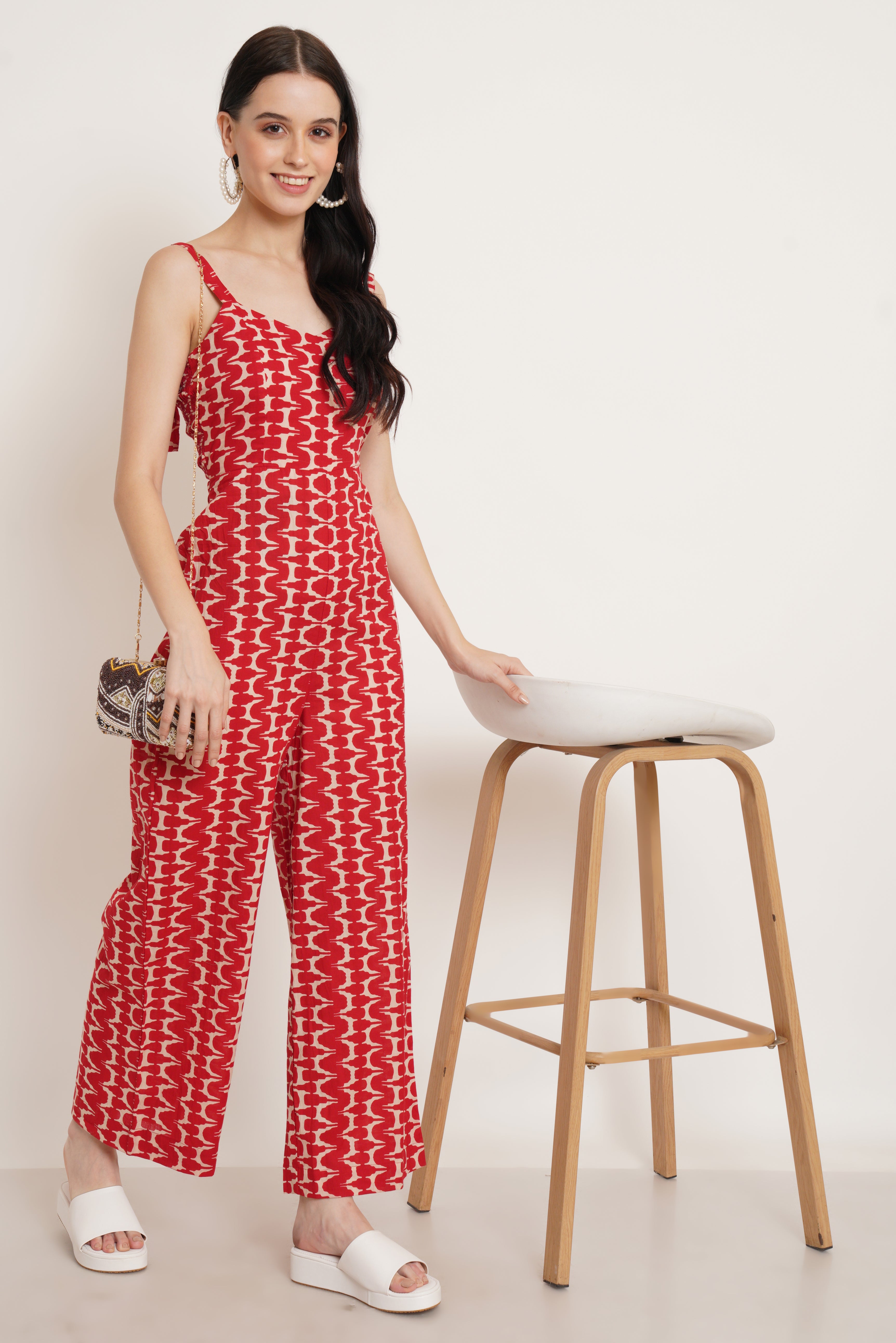 Red Bohemian Floral Bell Sleeve Playsuit For Women