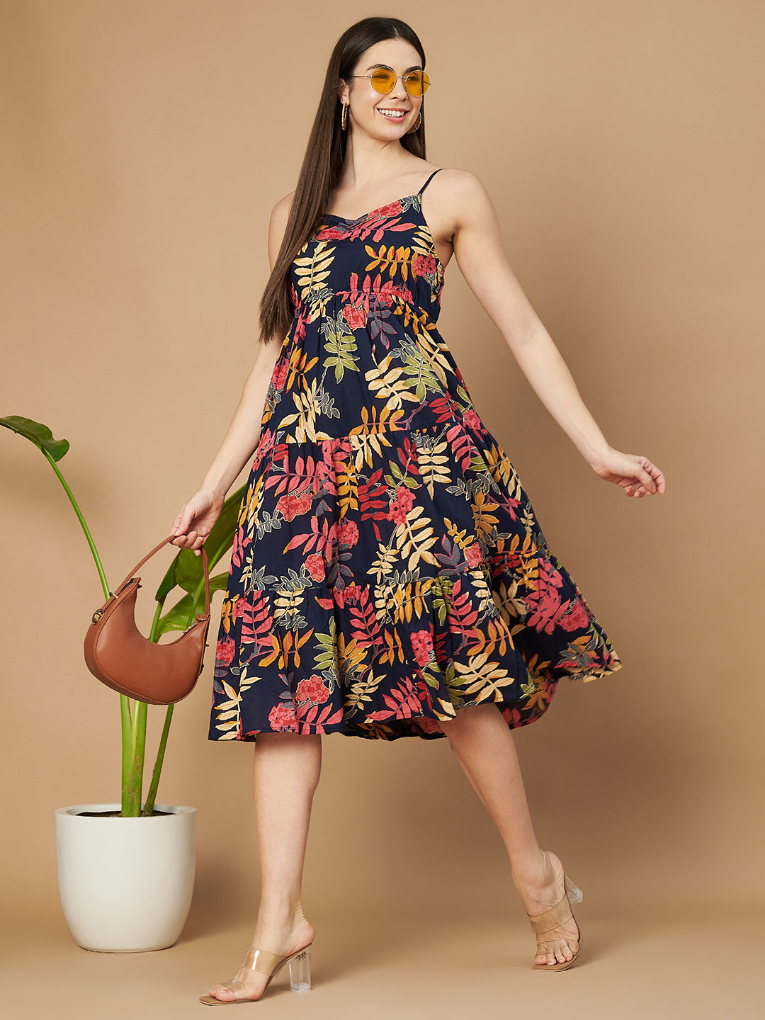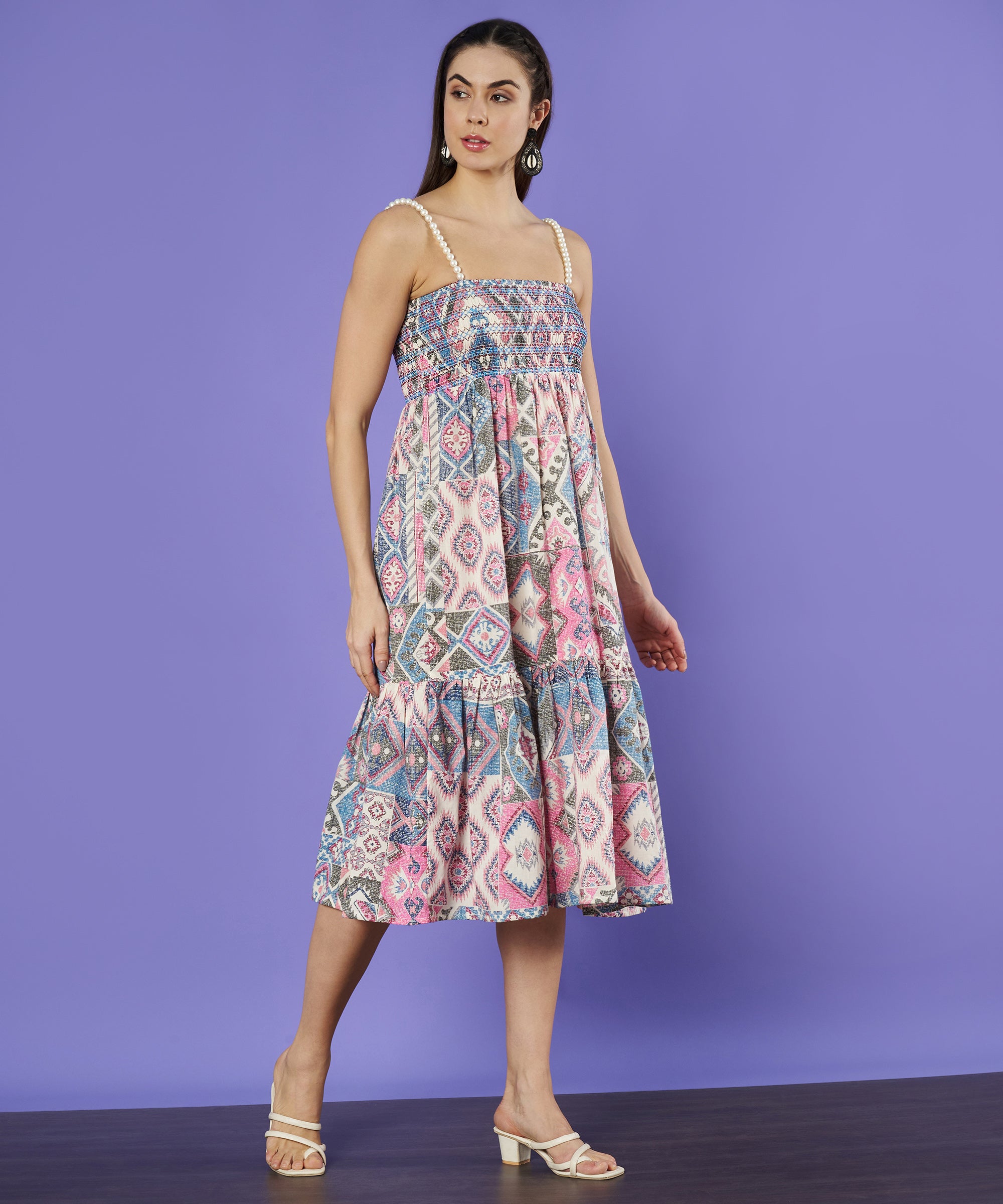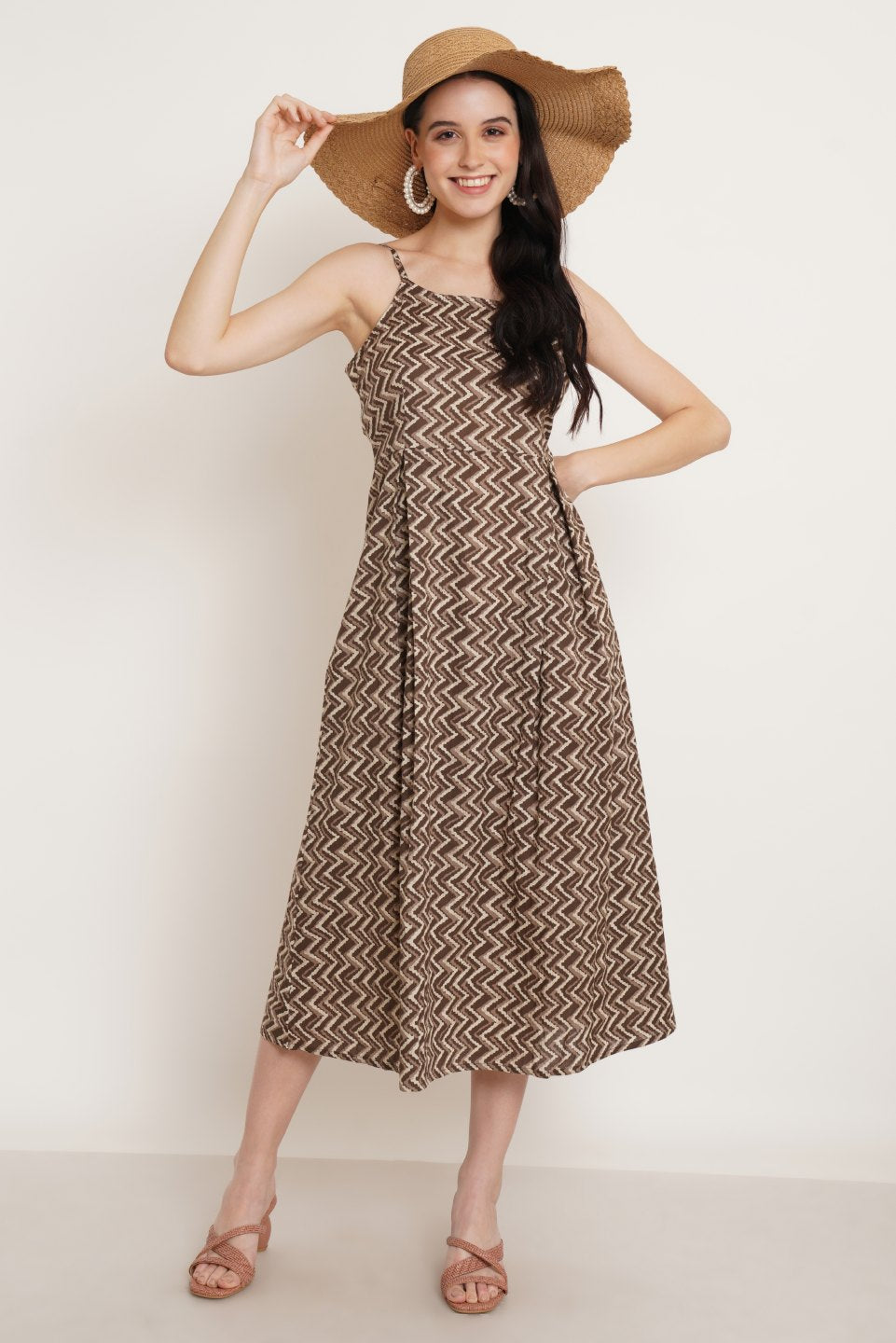 Pre-Shrunk Cotton Multicolor Fit and Flare Dress For Women