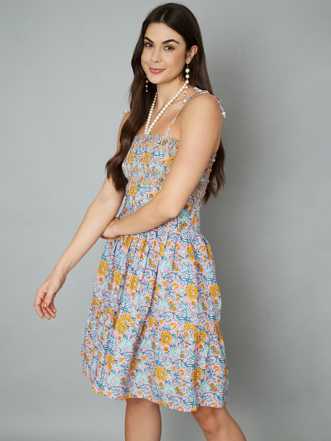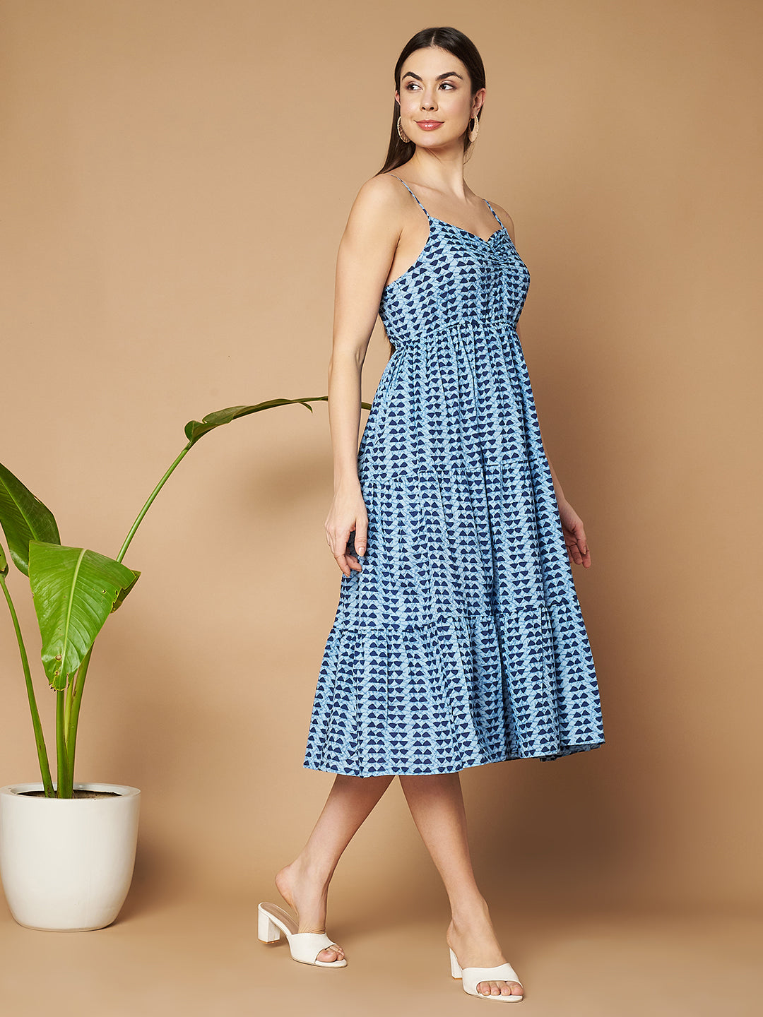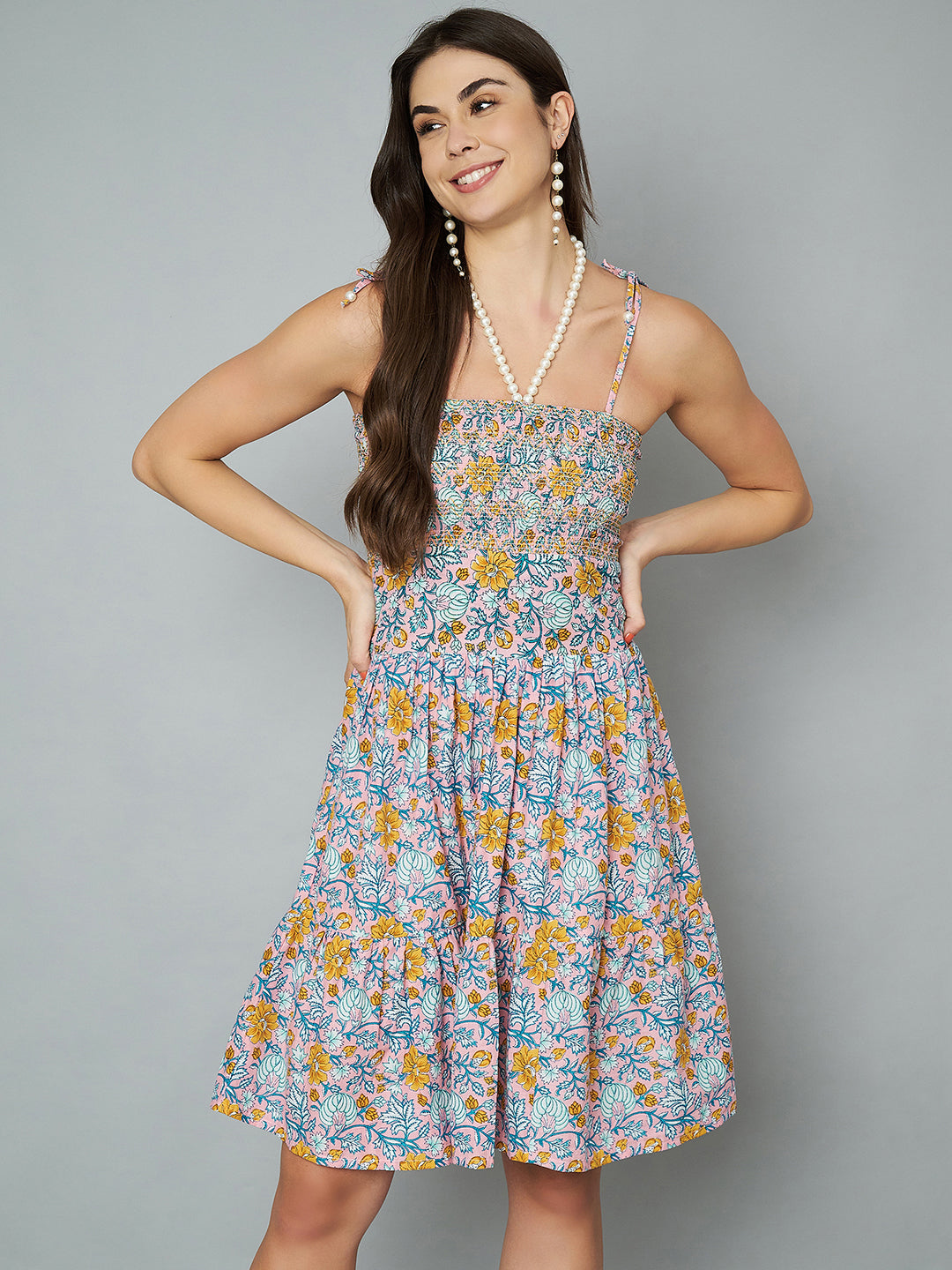 Pre-Shrunk Cotton Multicolor Fit and Flare Dress For Women