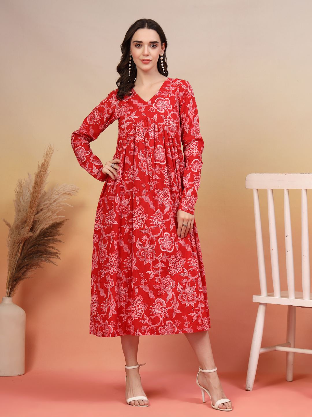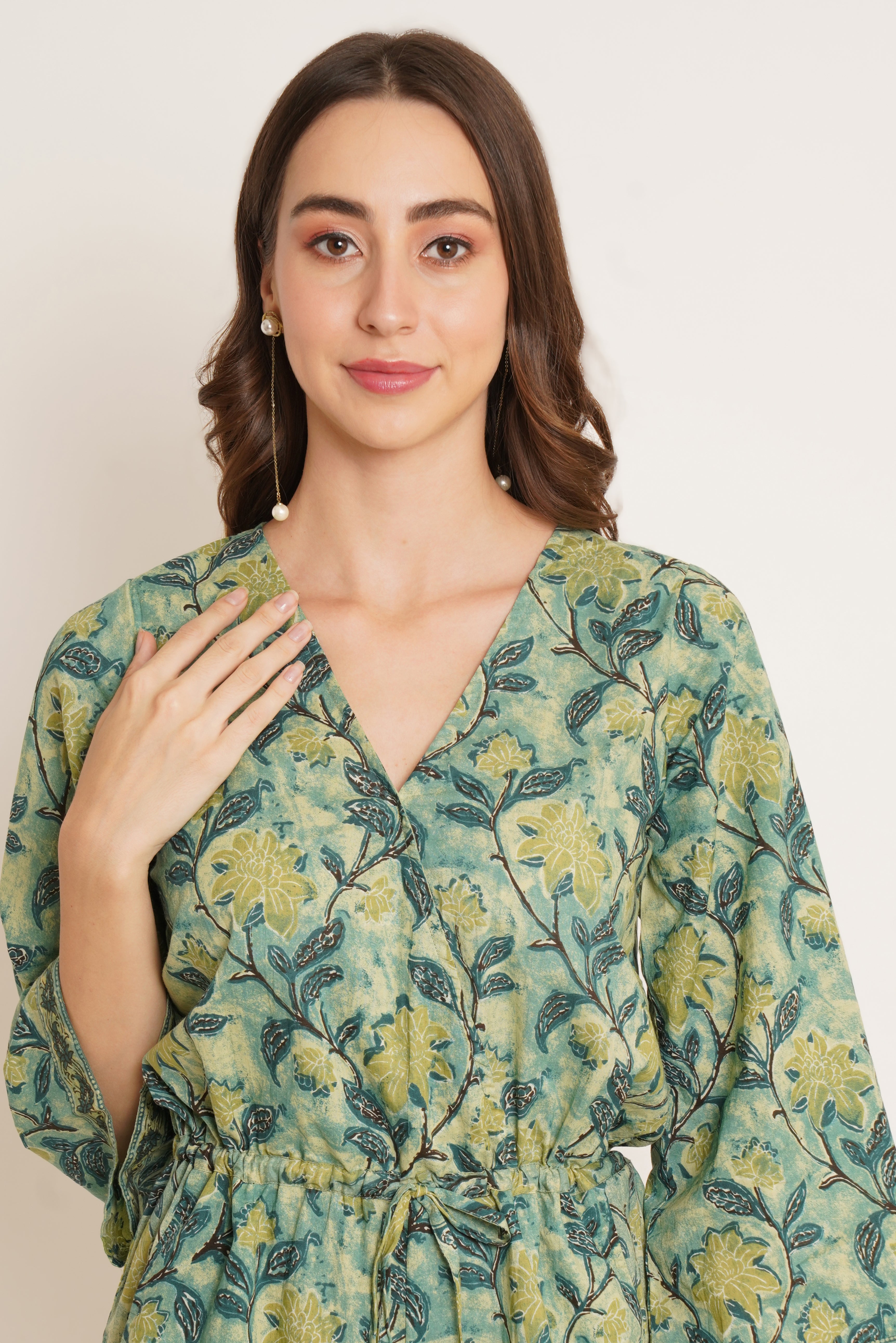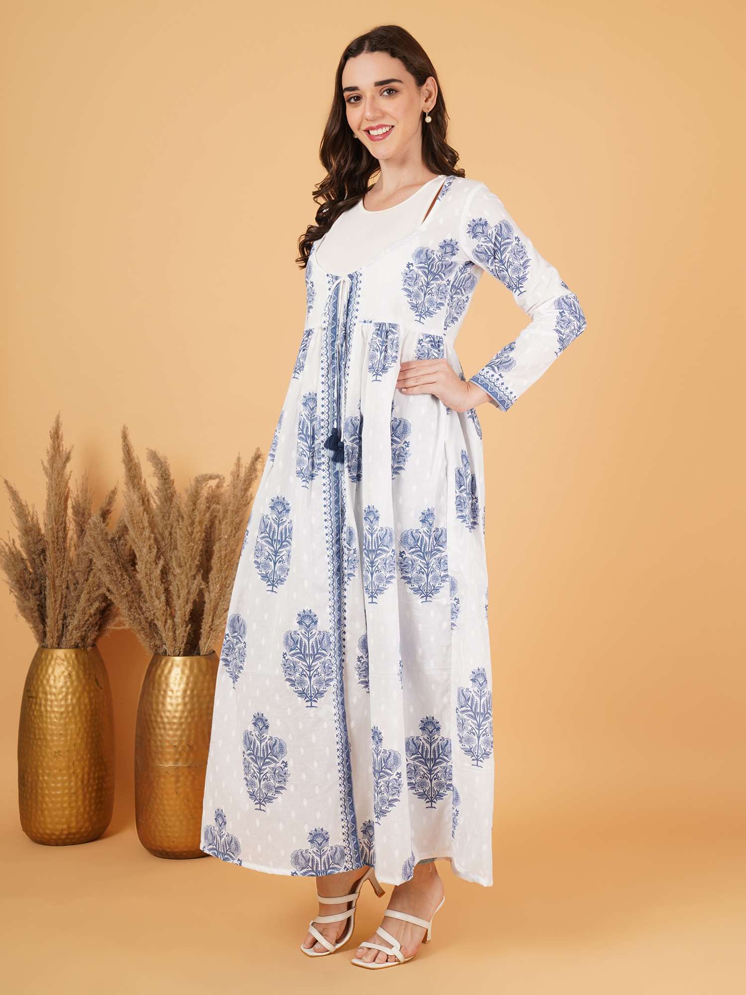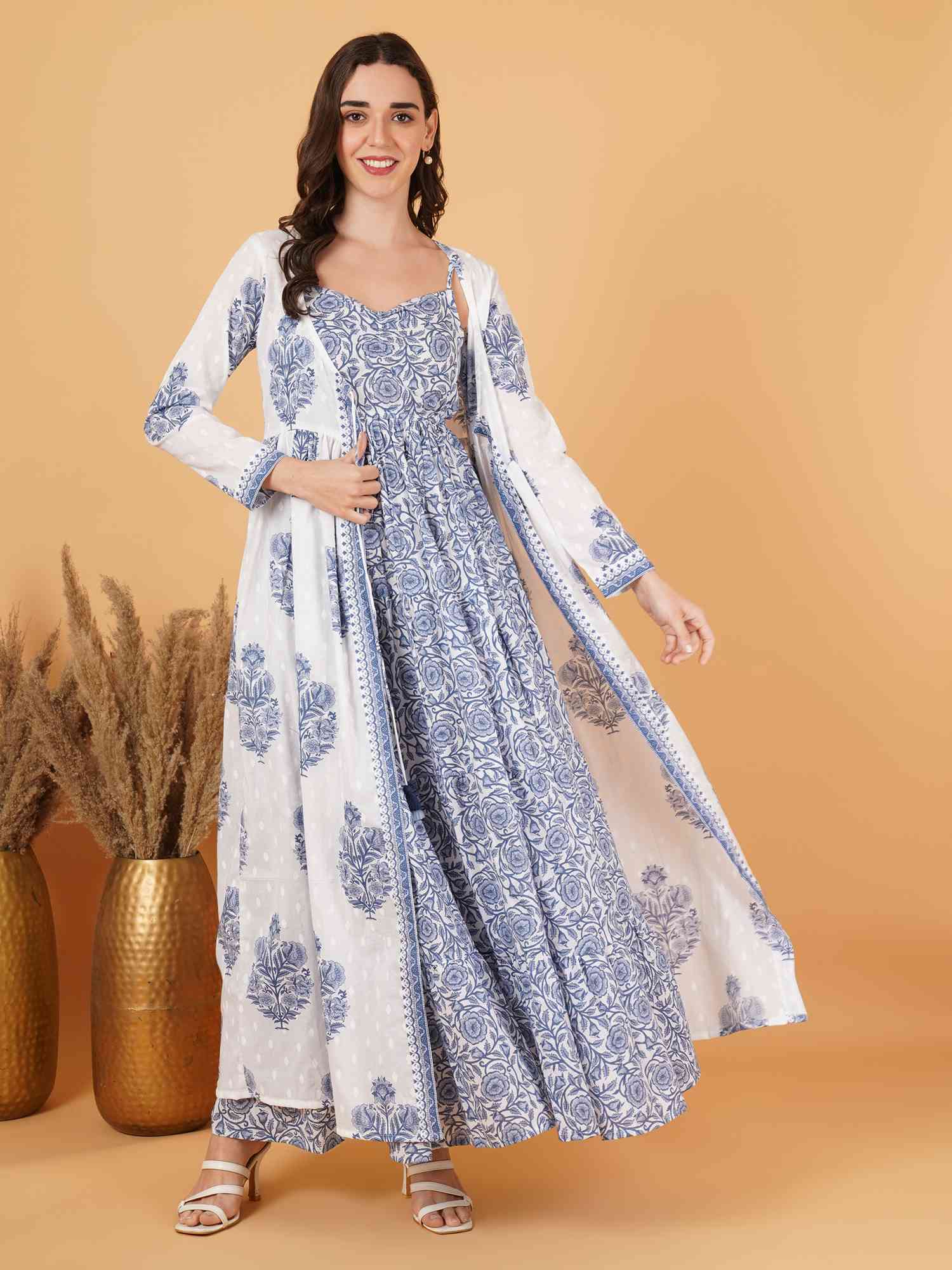 Floral Printed Jaipuri Cotton Shrug and Dress Co-Ord Set For Women