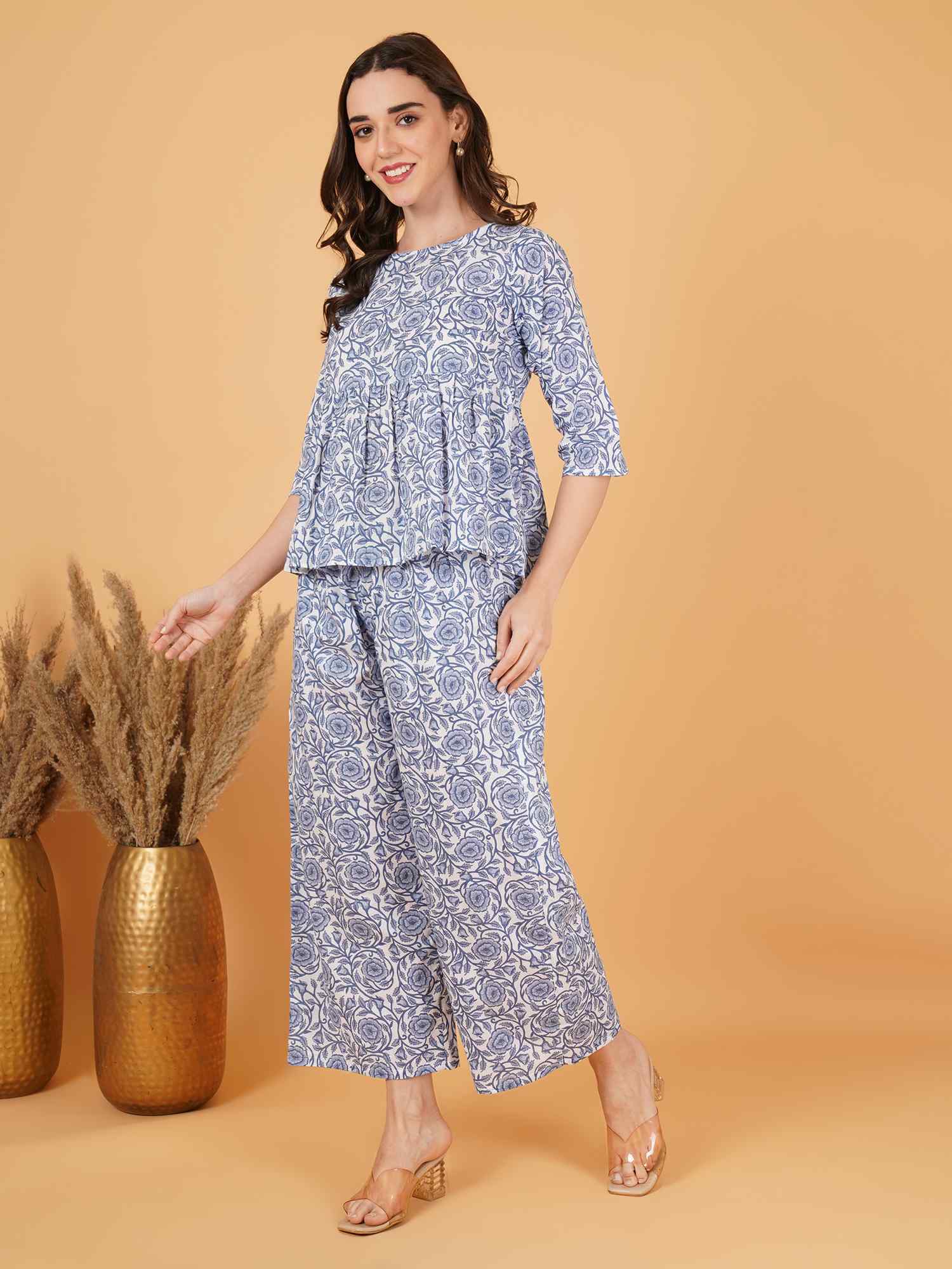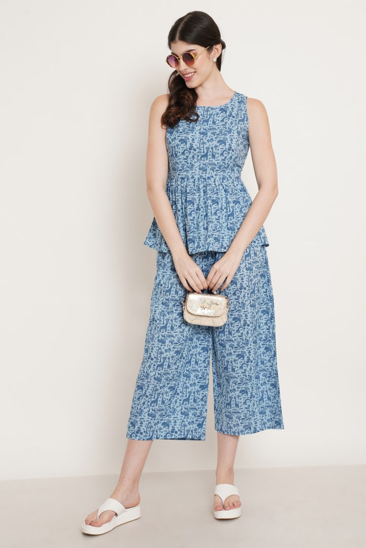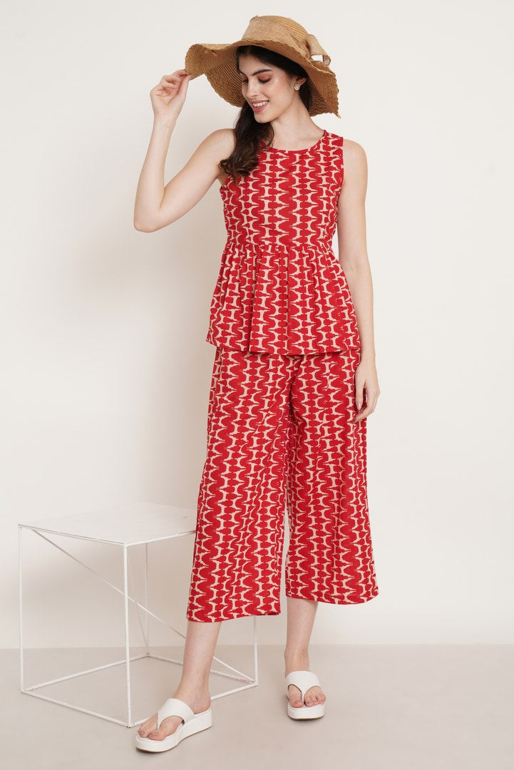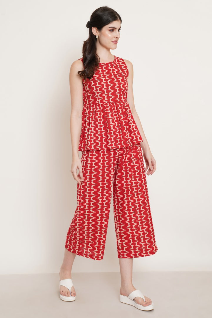 Pure Cotton Peplum Top and Palazzo Co-Ord Set for Women