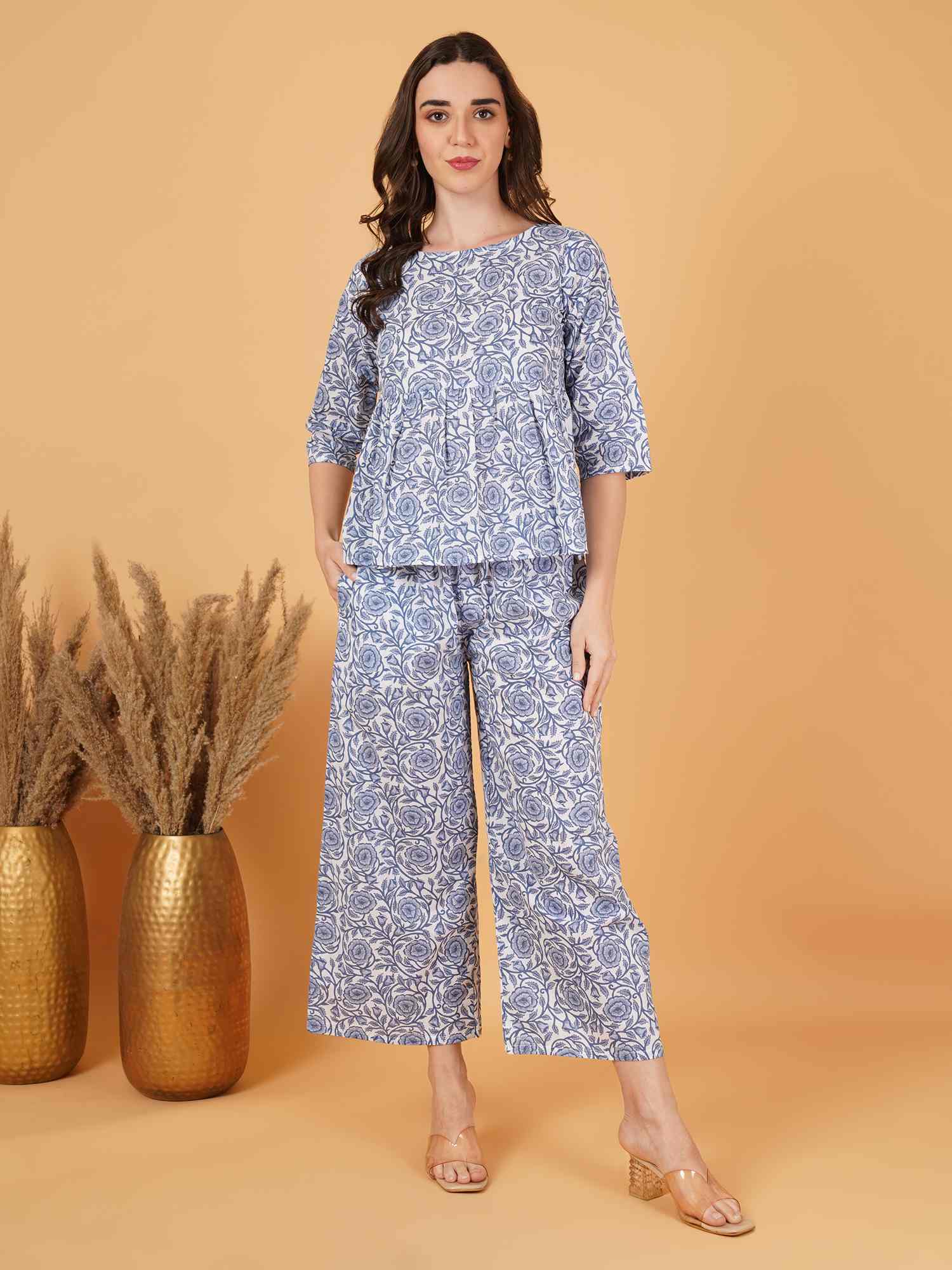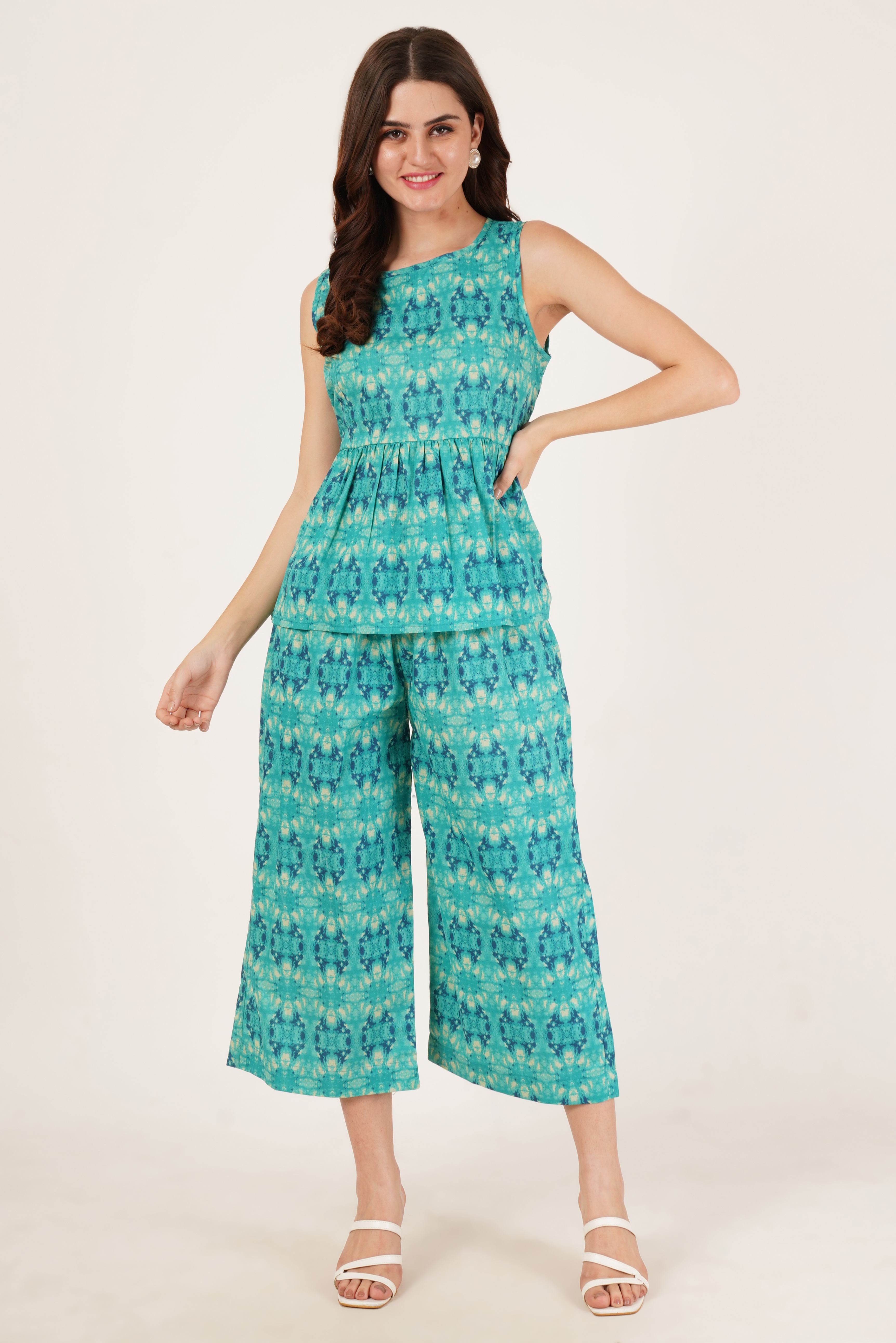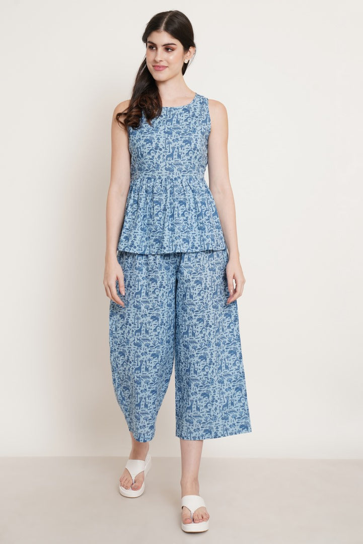 Pure Cotton Peplum Top and Palazzo Co-Ord Set for Women