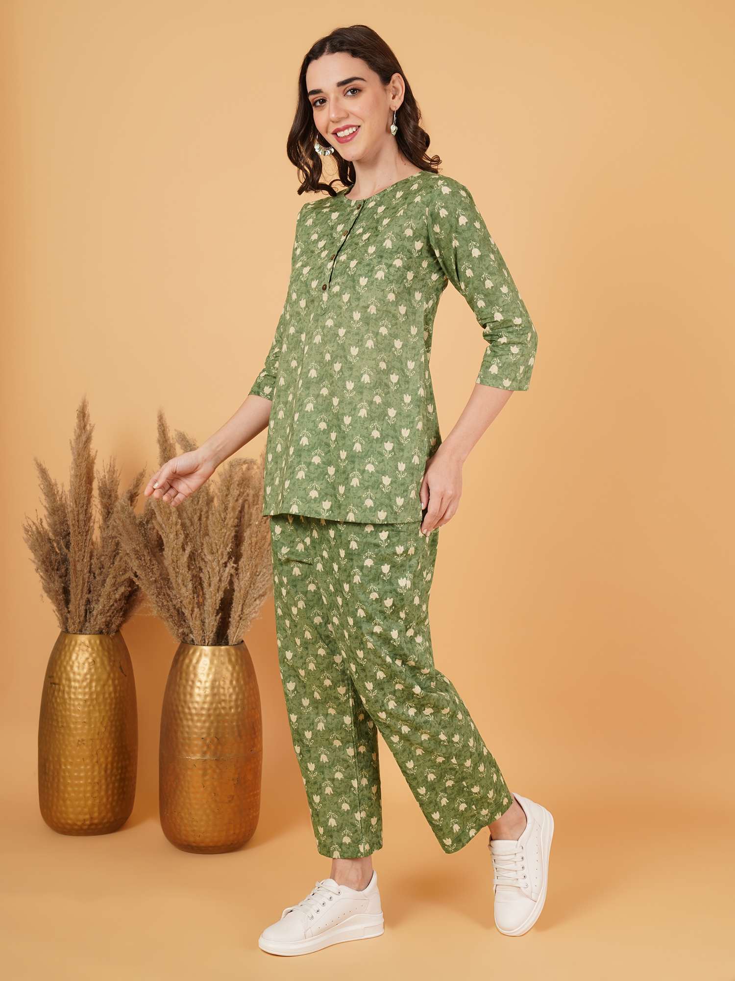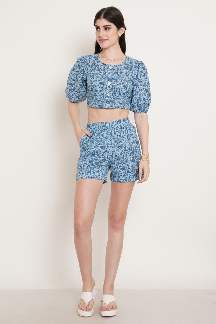 Printed Cotton Top and Shorts Co-Ord Set For Women