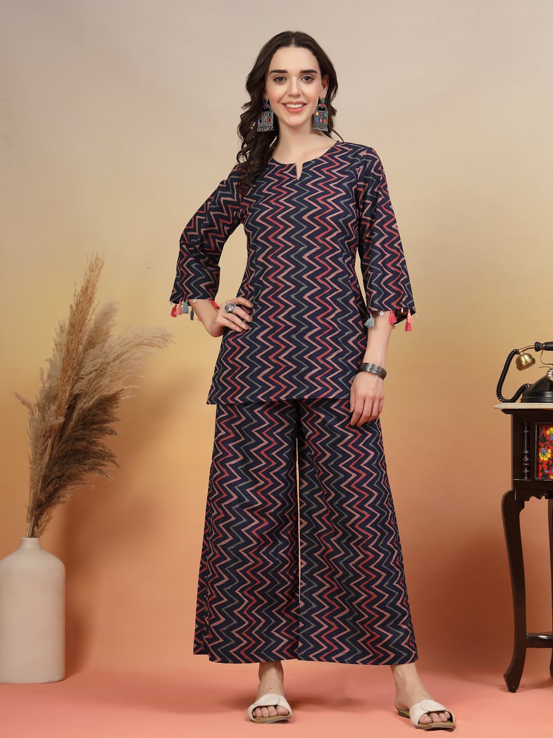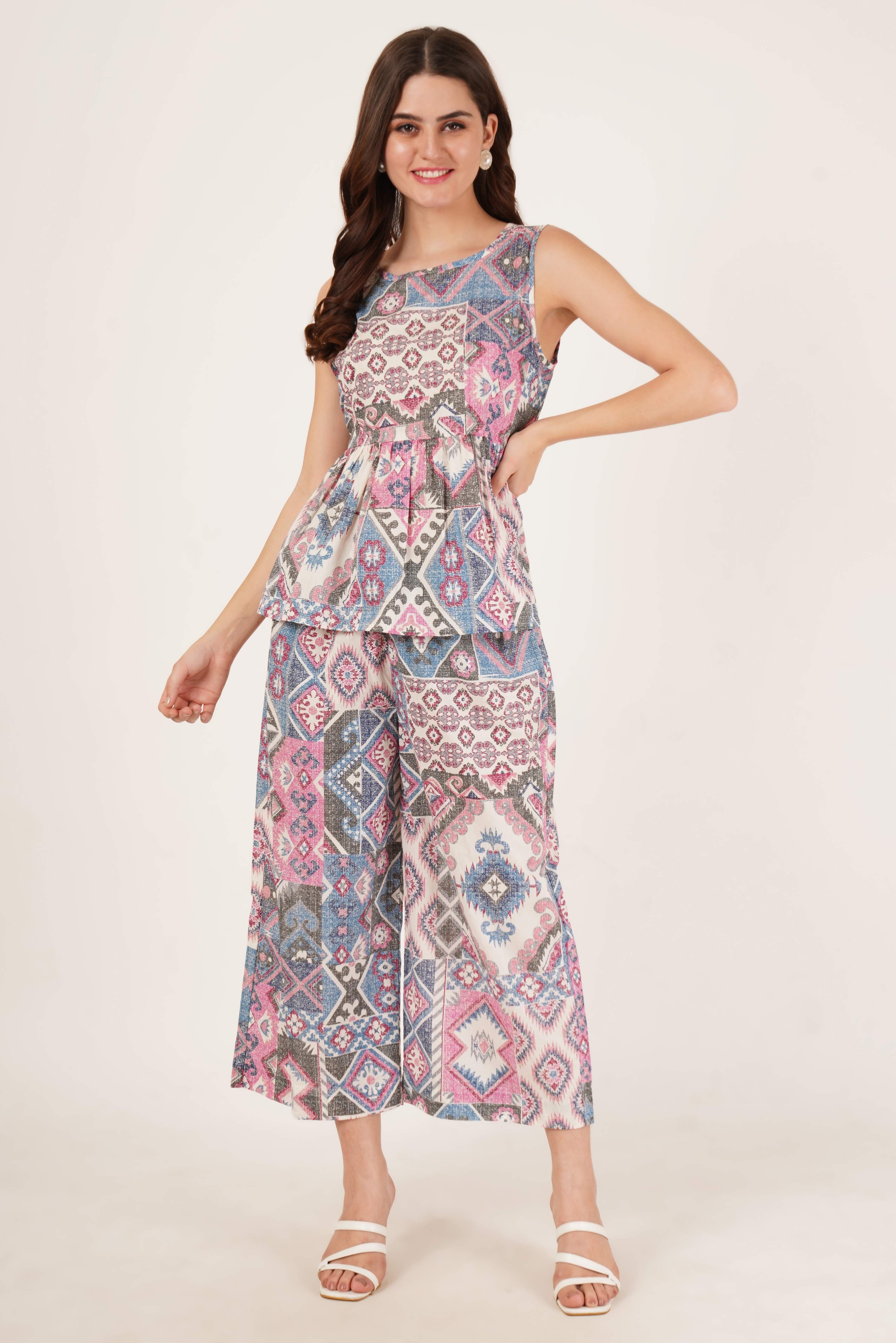 Jaipuri Cotton Peplum Top with Inner and Palazzo Co-Ord Set for Women
