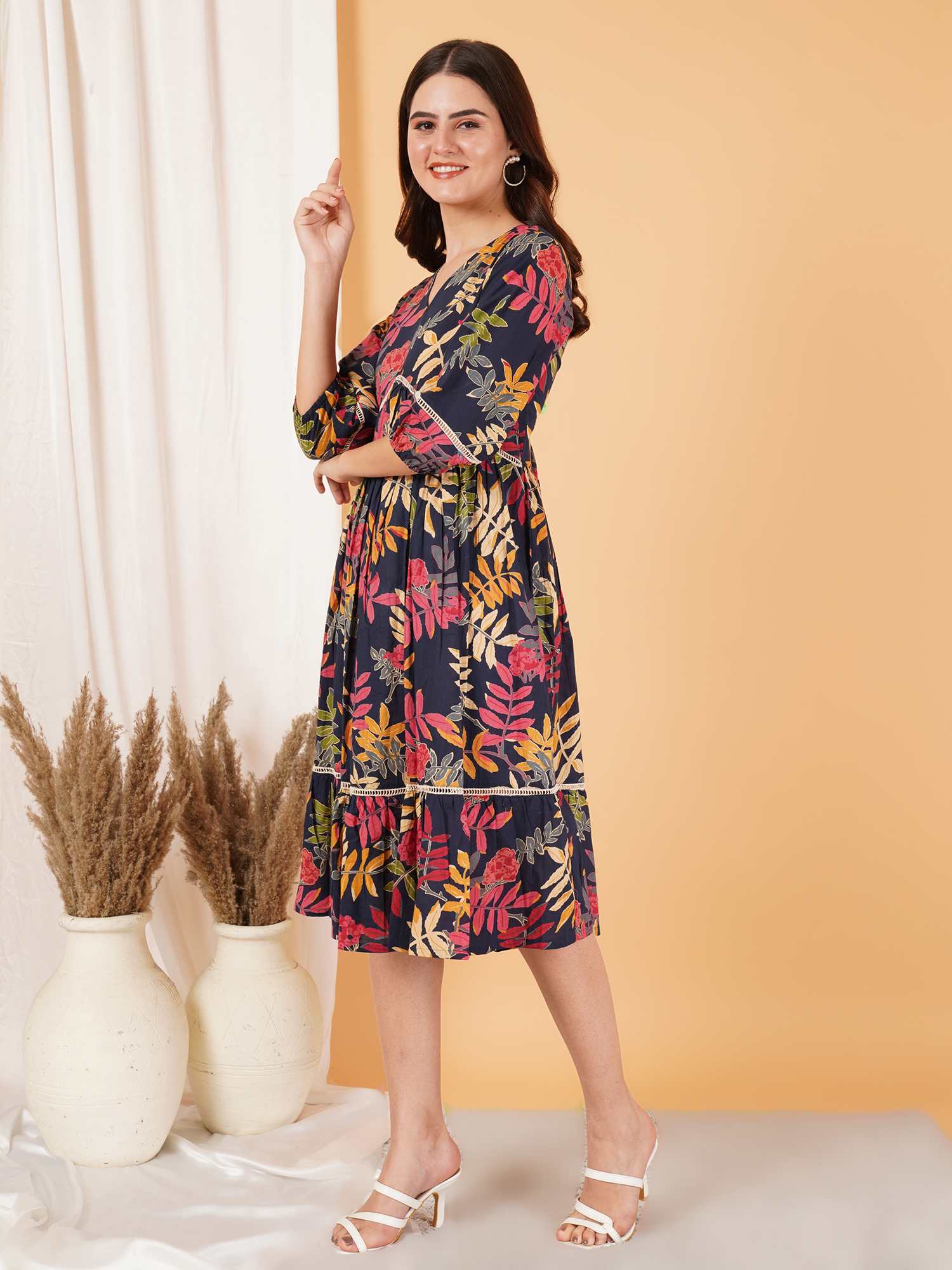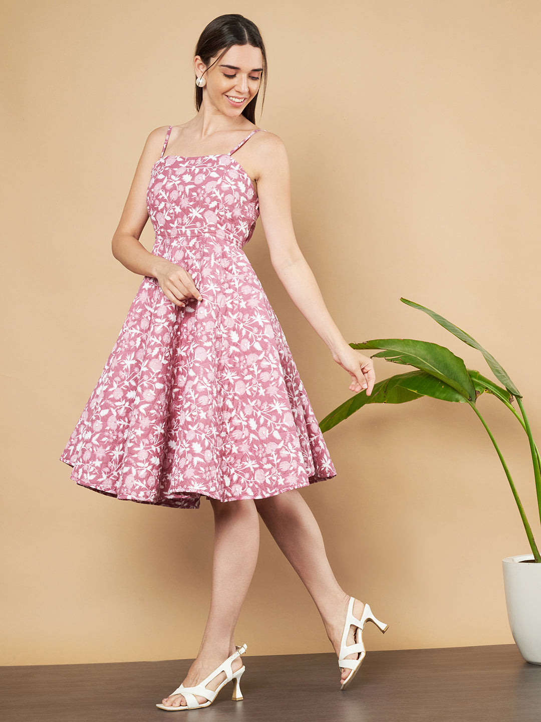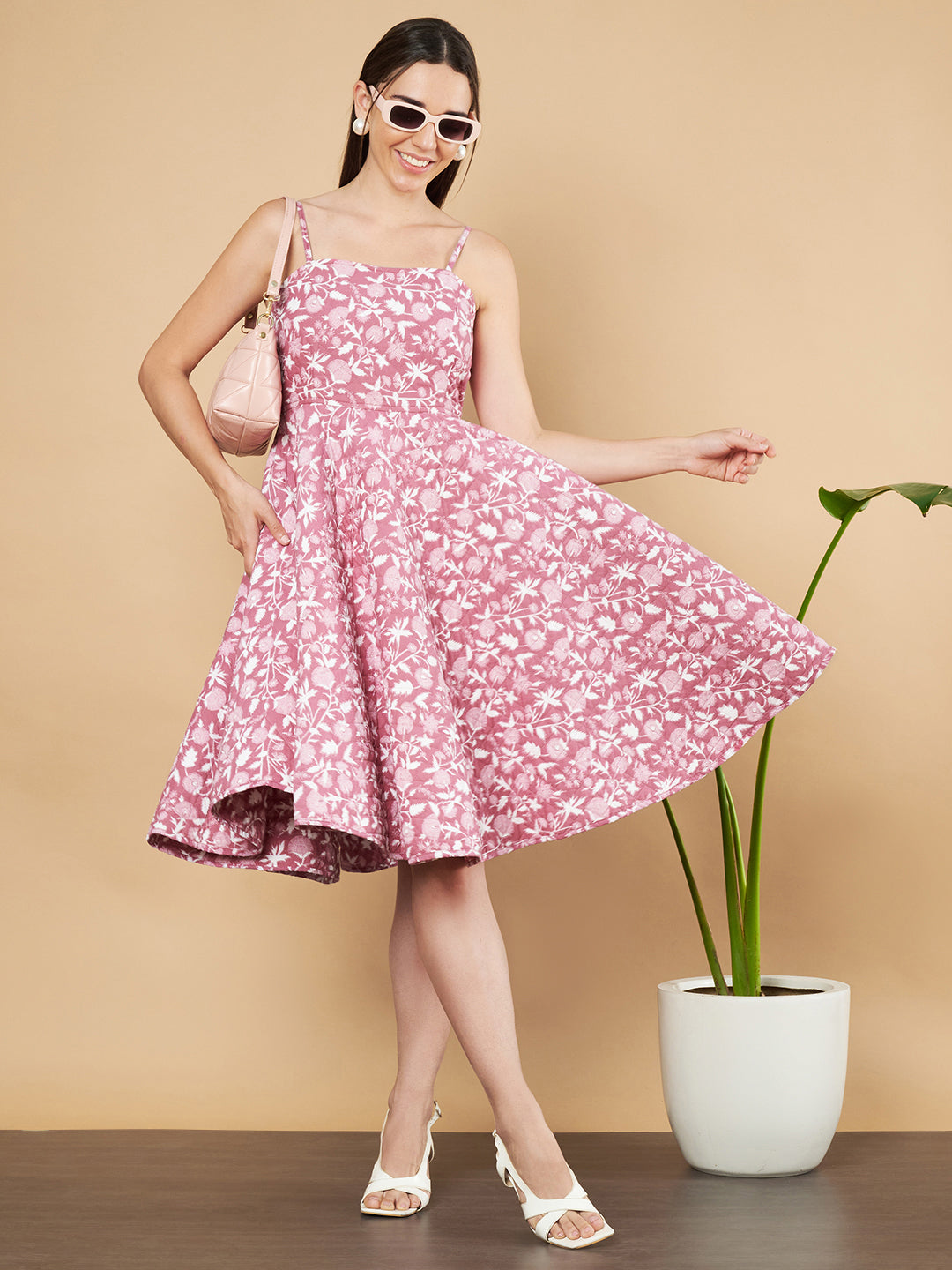 Heritage Cotton Floral Fit and Flare Dress For Women