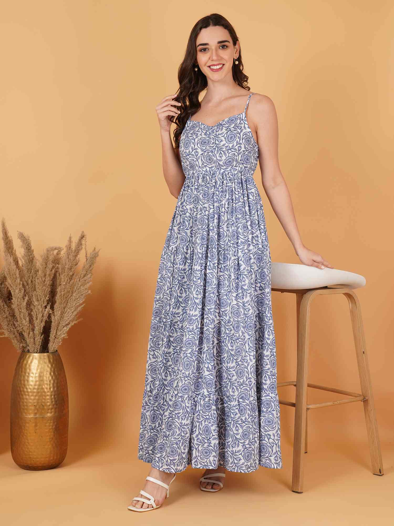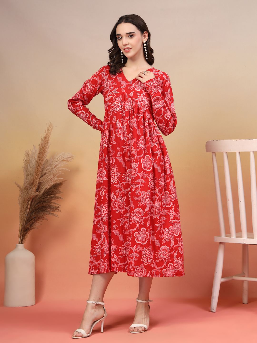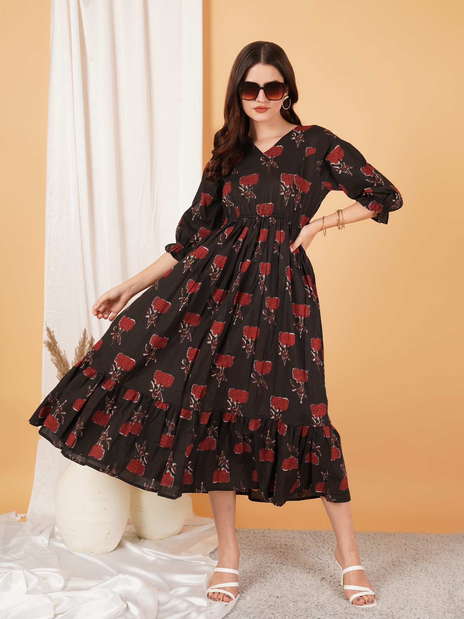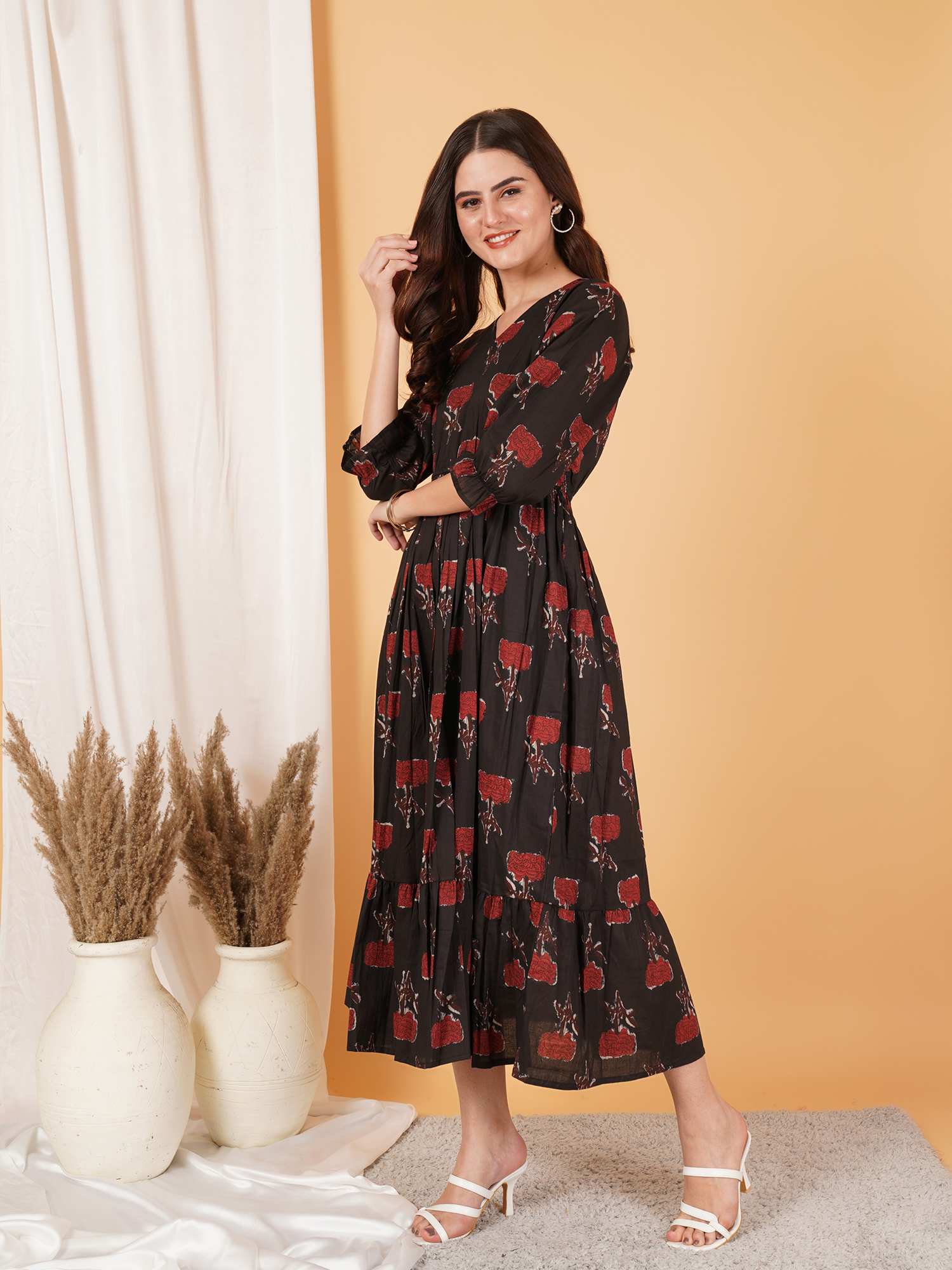 Heritage Cotton Floral Fit and Flare Dress For Women