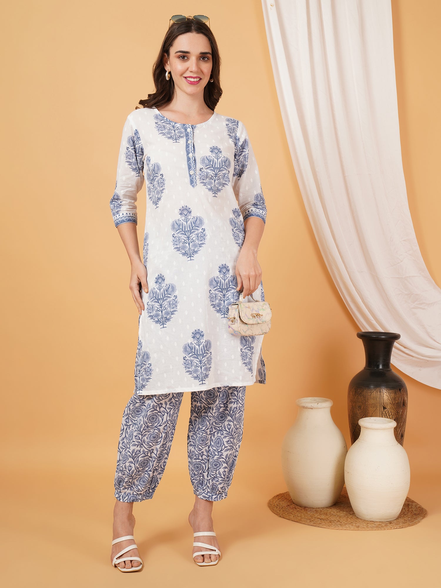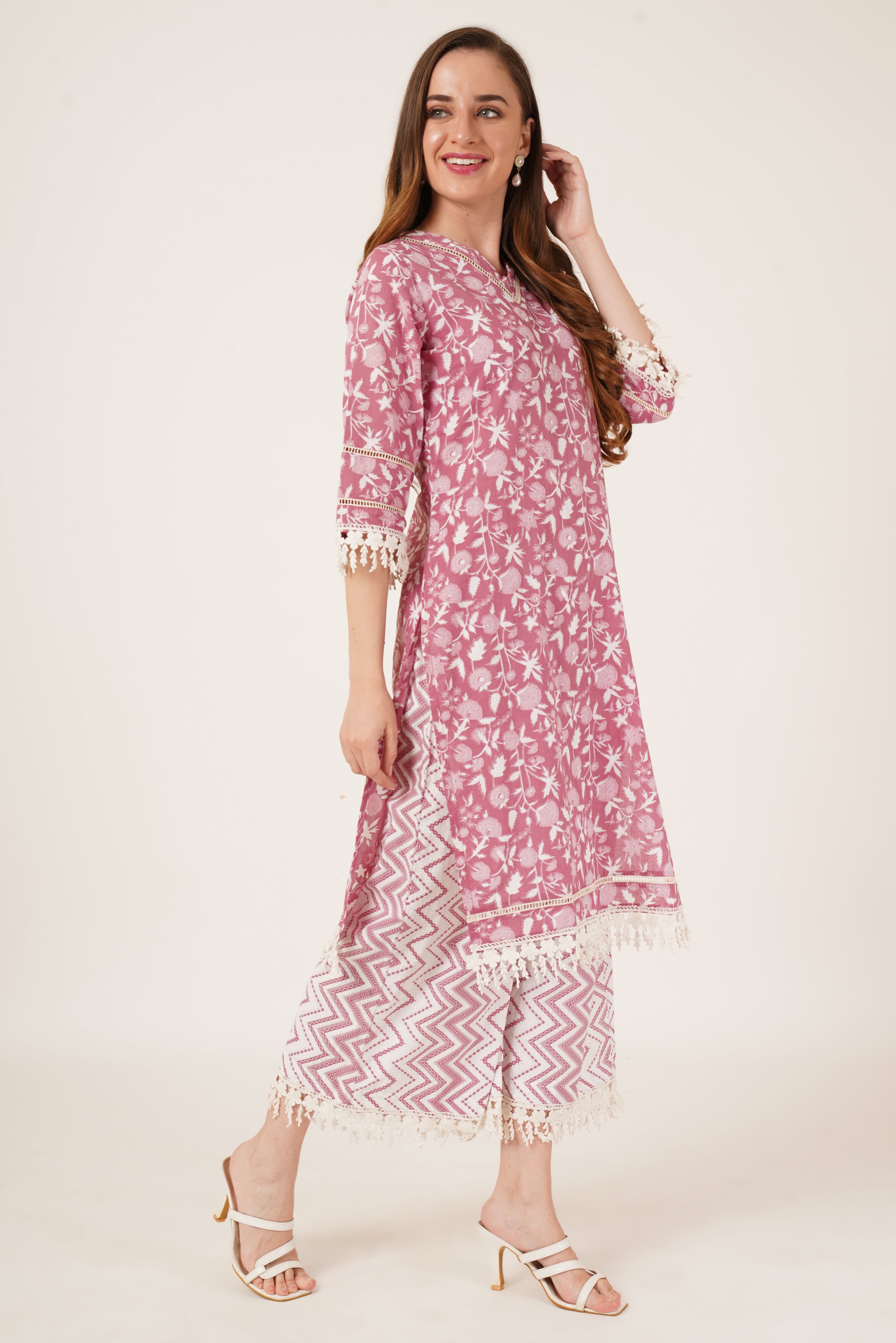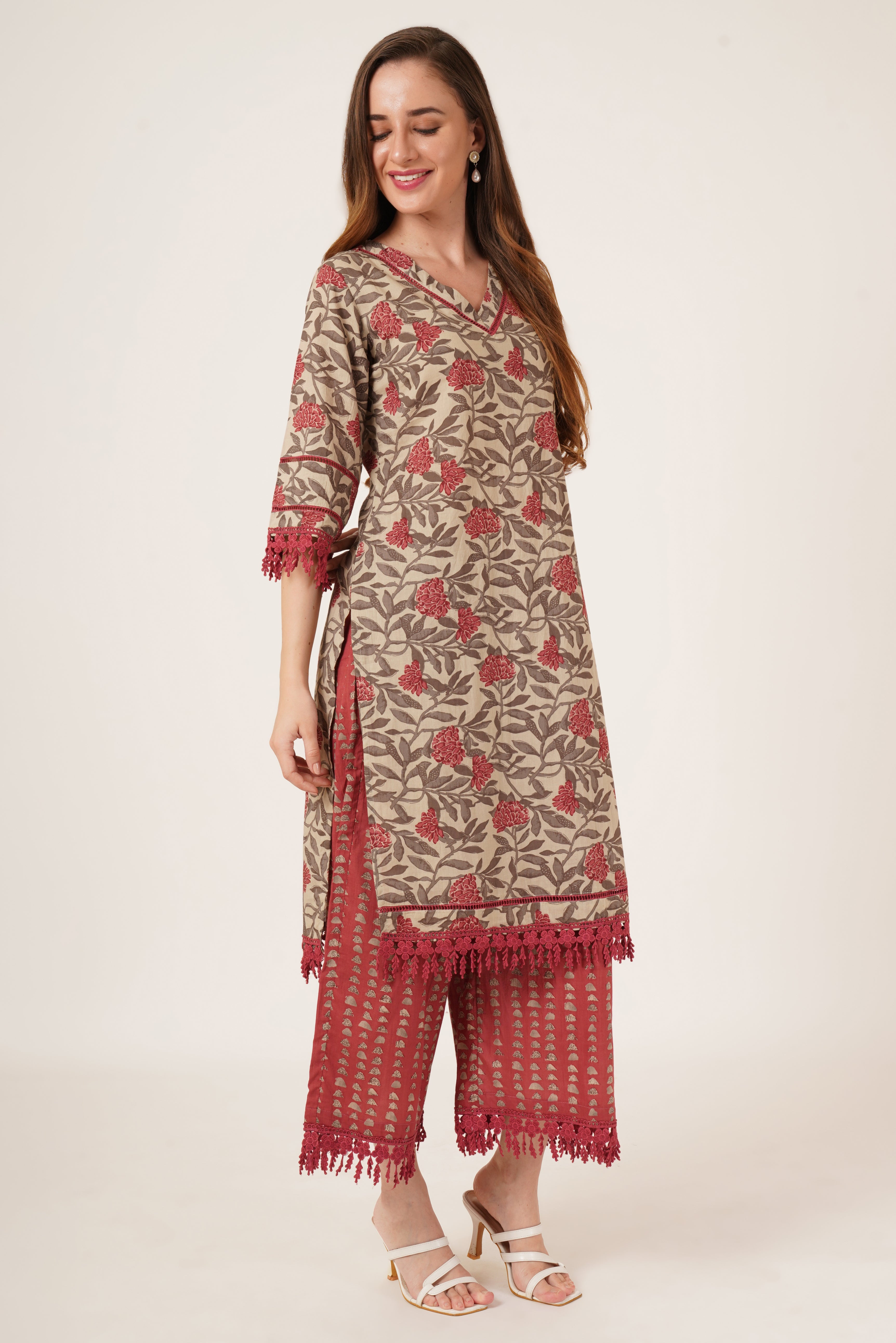 Sanganer Handblock Cotton Straight Kurta with Palazzo for Women