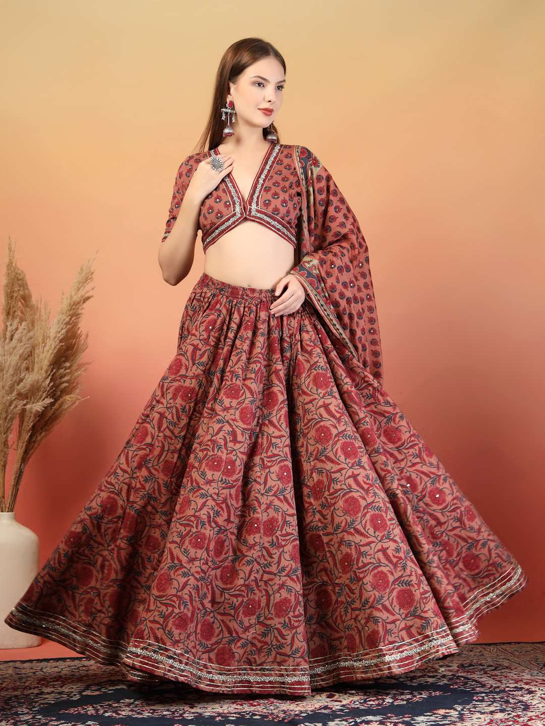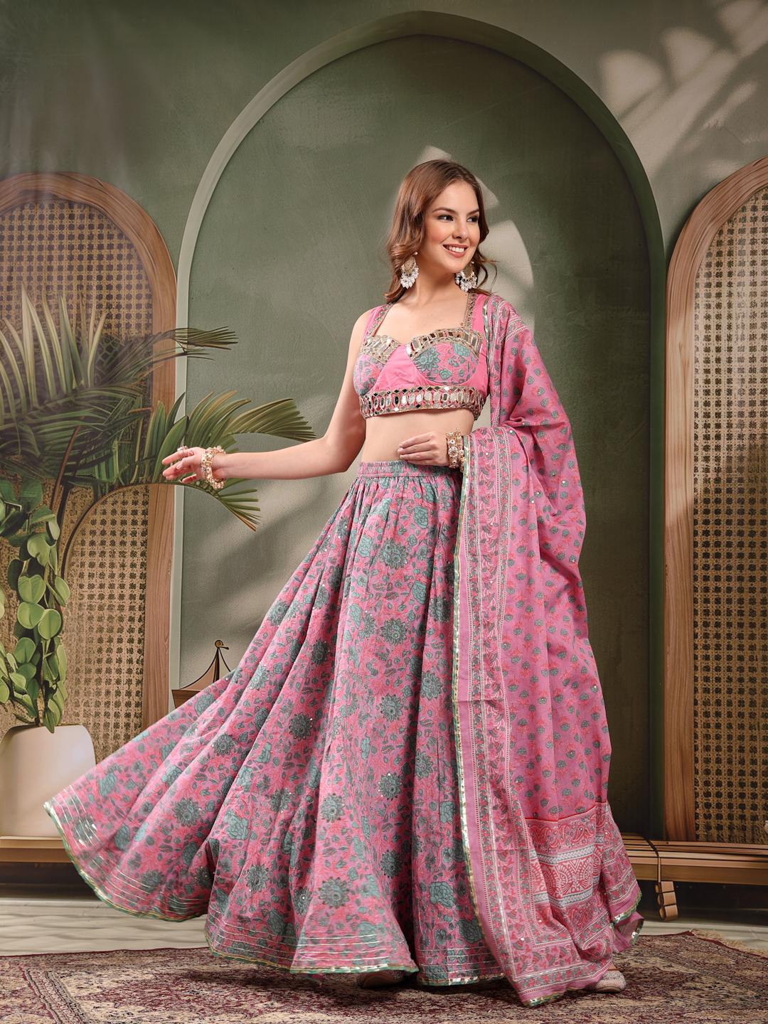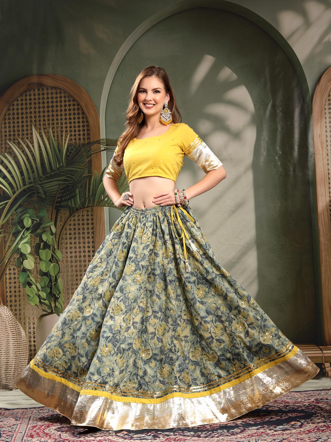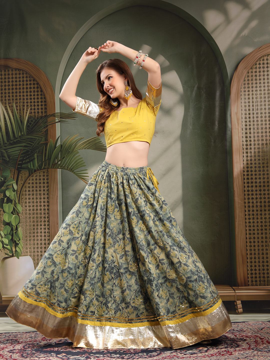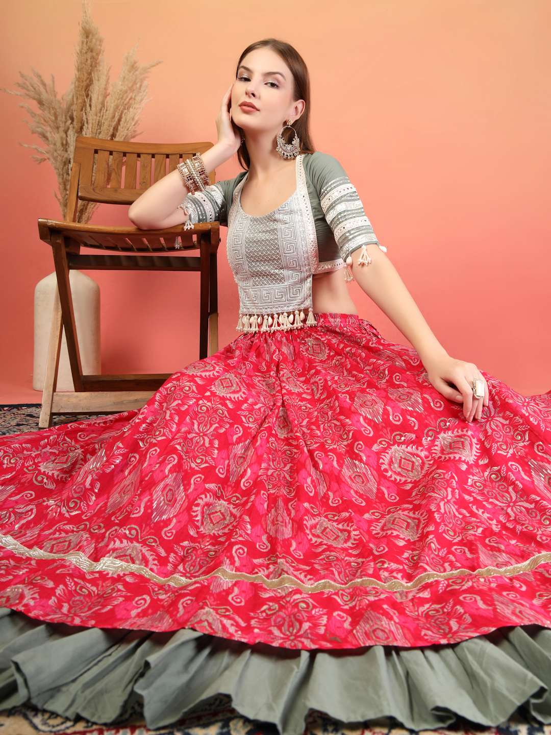 Frill Border Handcrafted Cotton Lehenga Choli Set For Women
