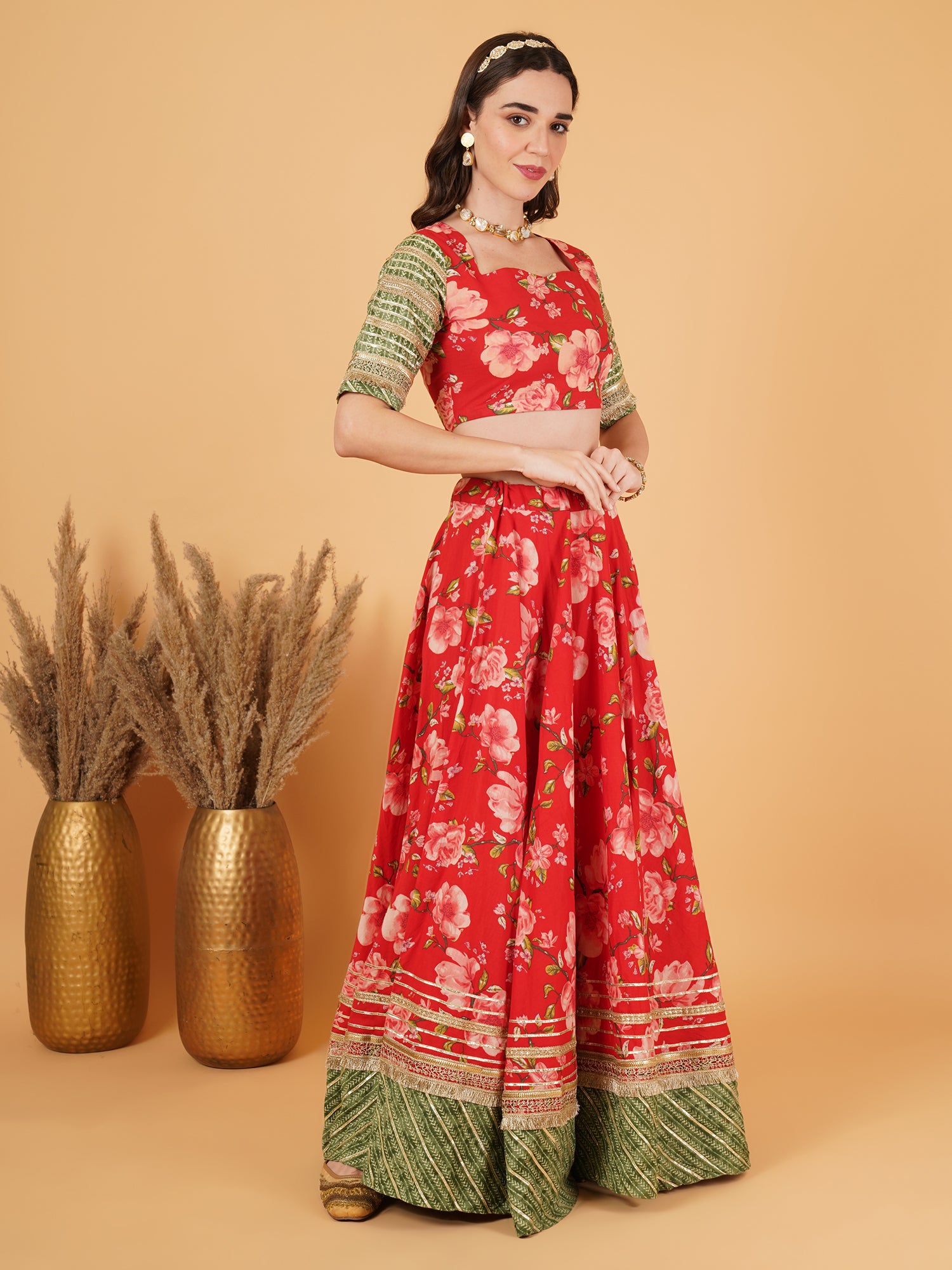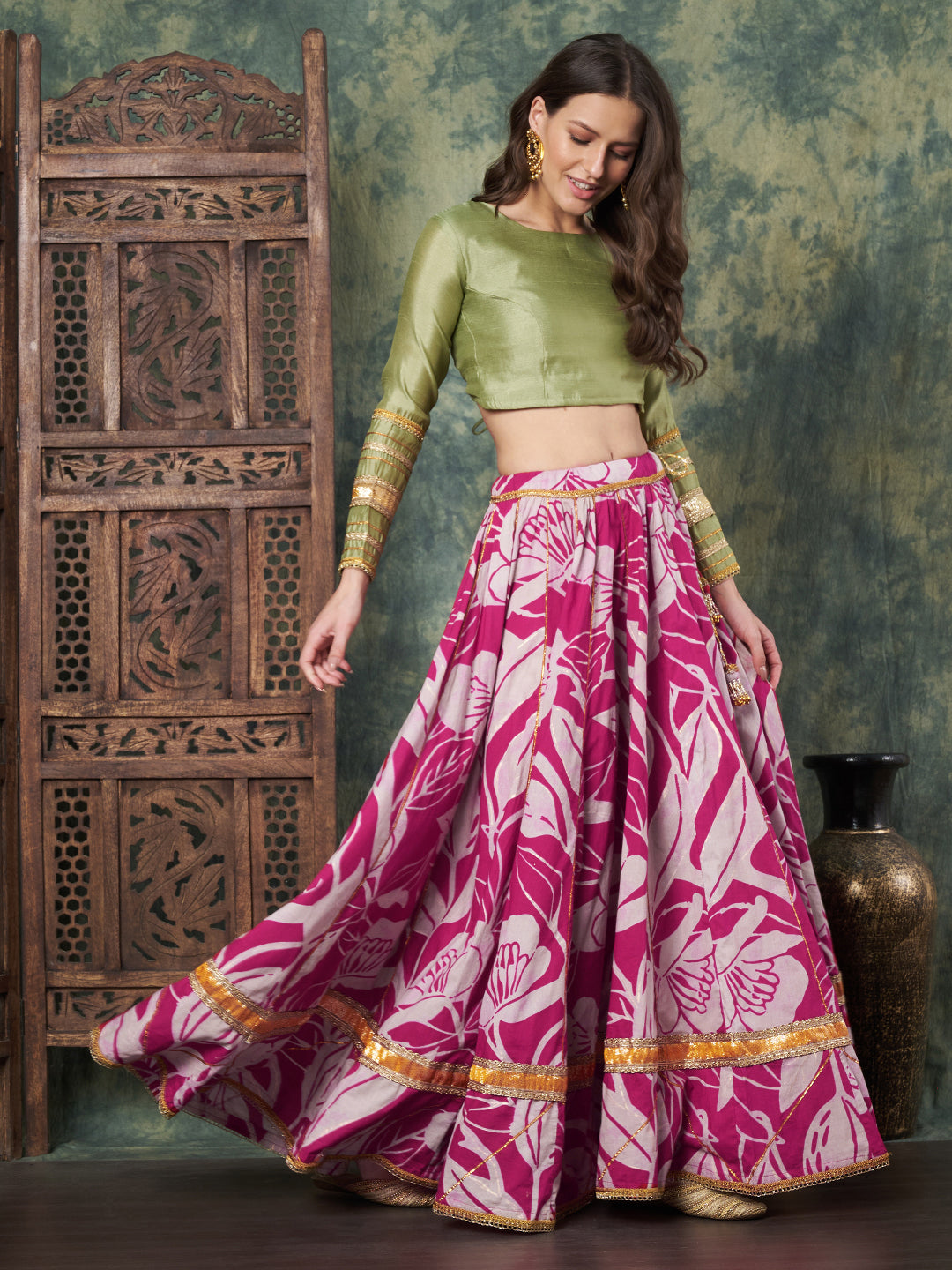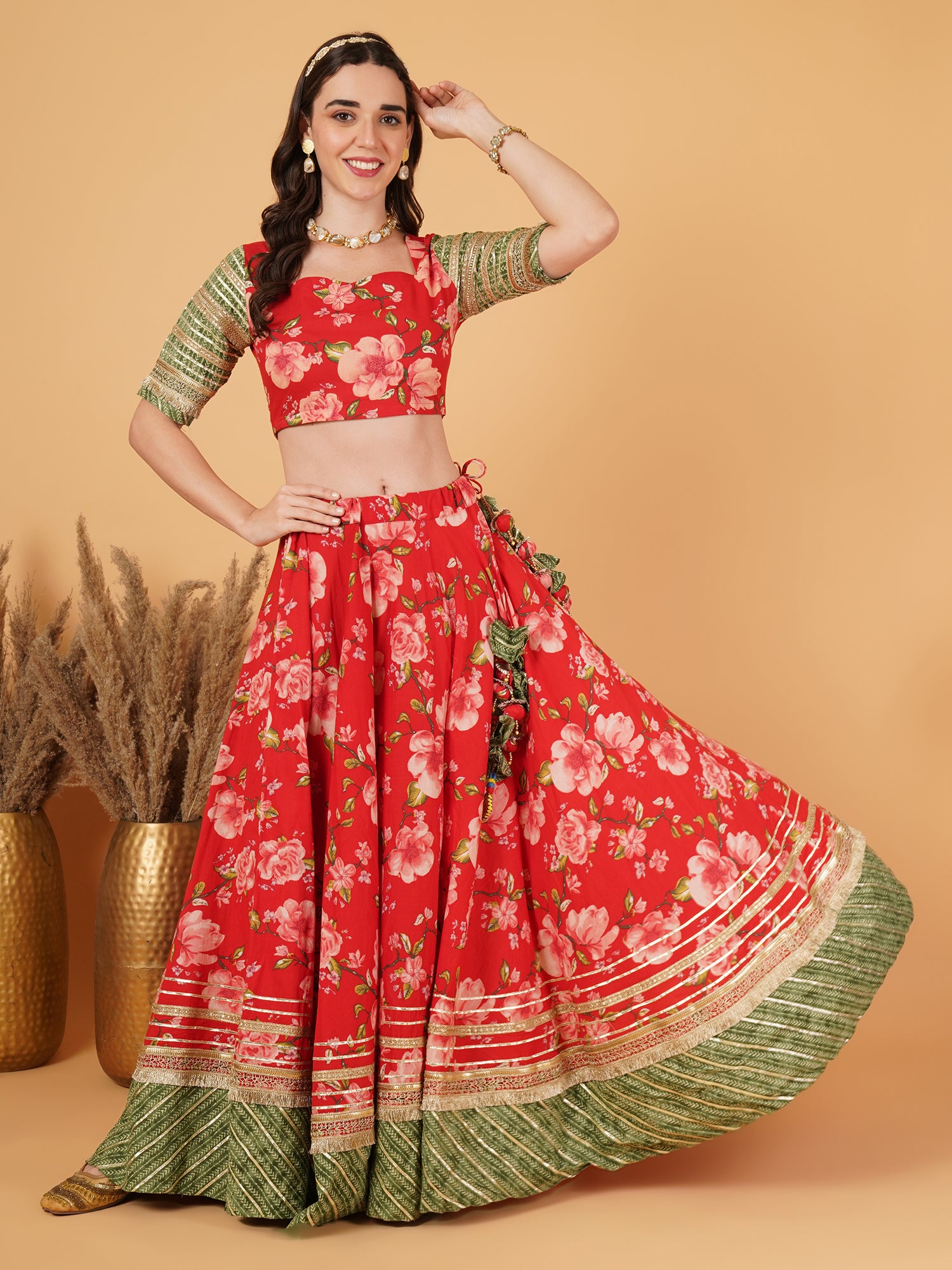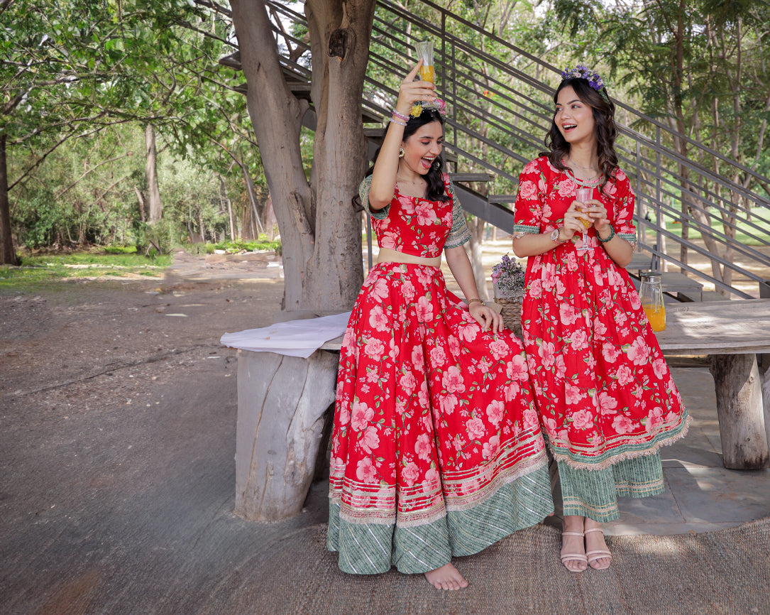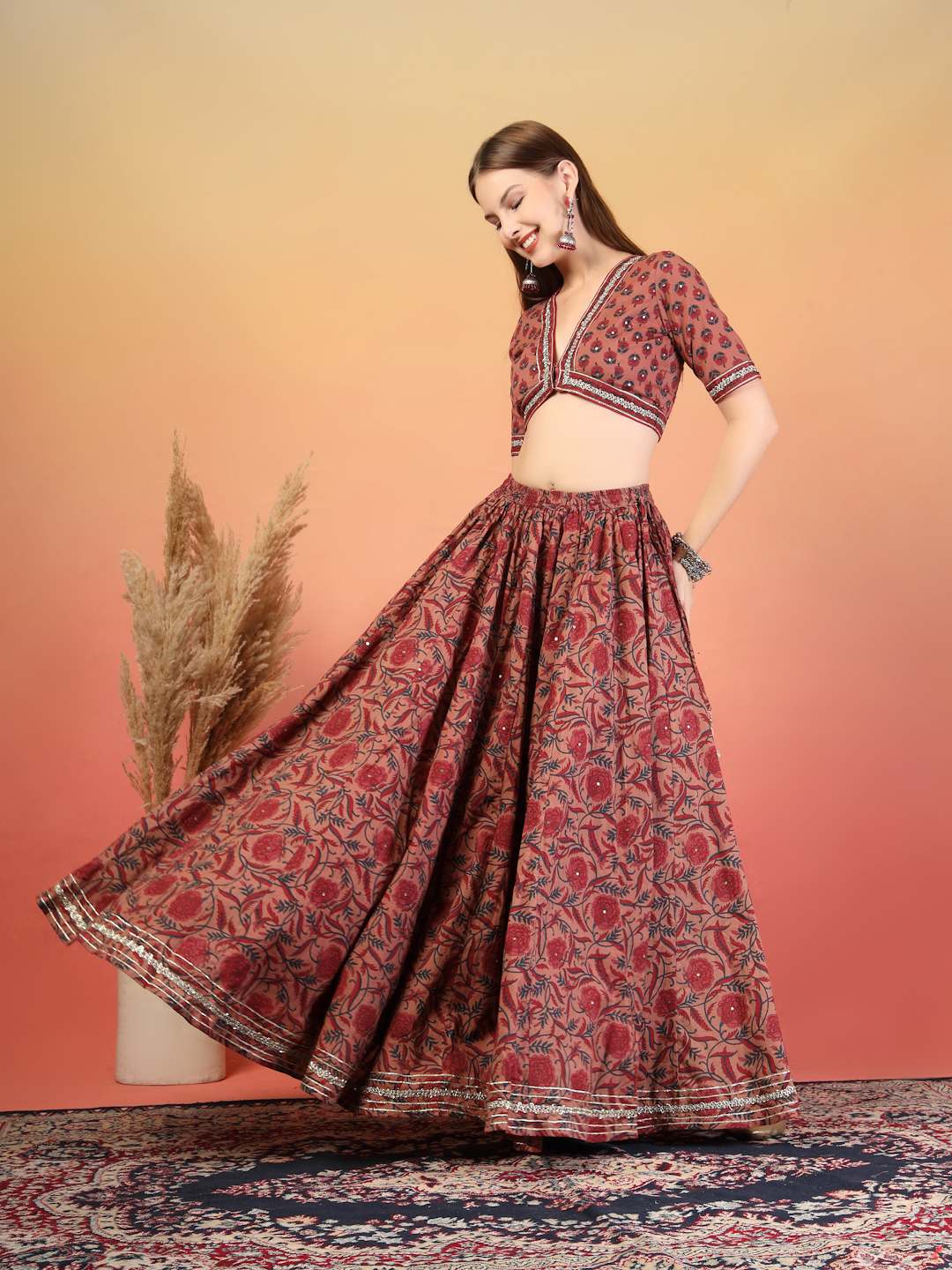 Frill Border Handcrafted Cotton Lehenga Choli Set For Women