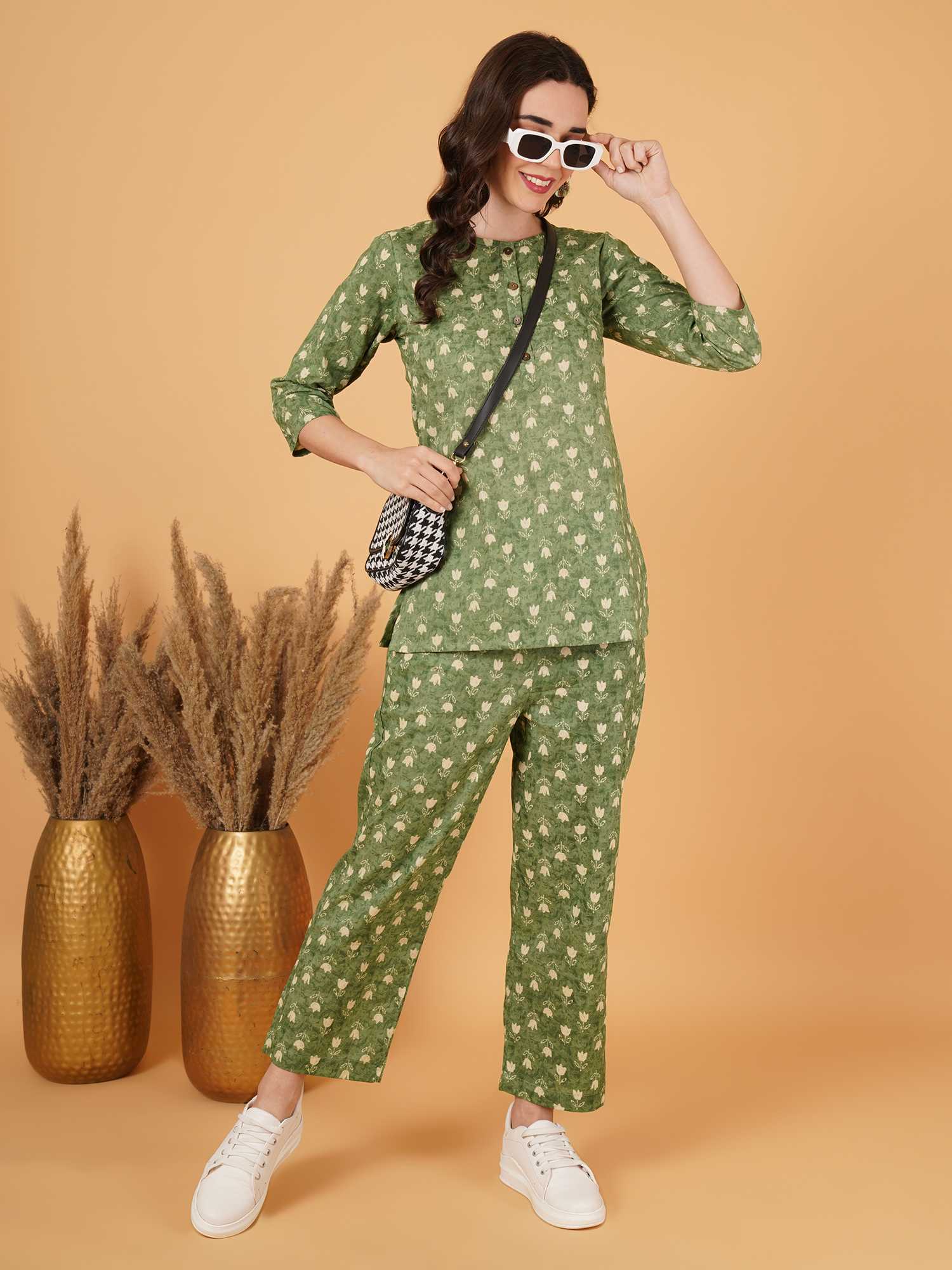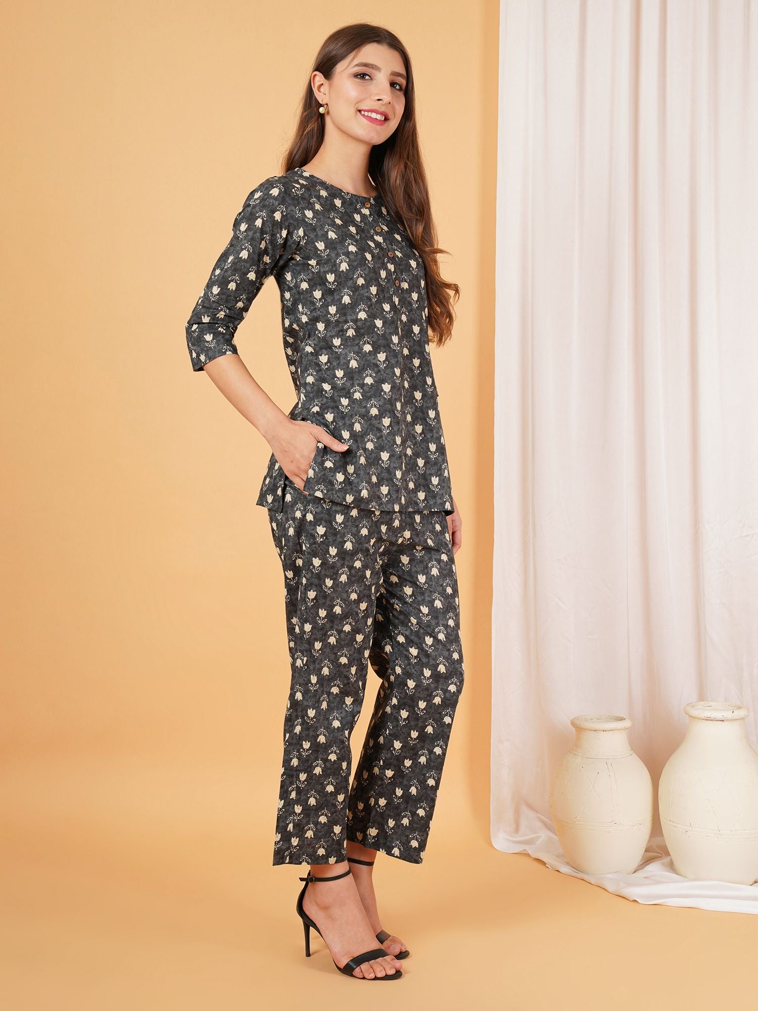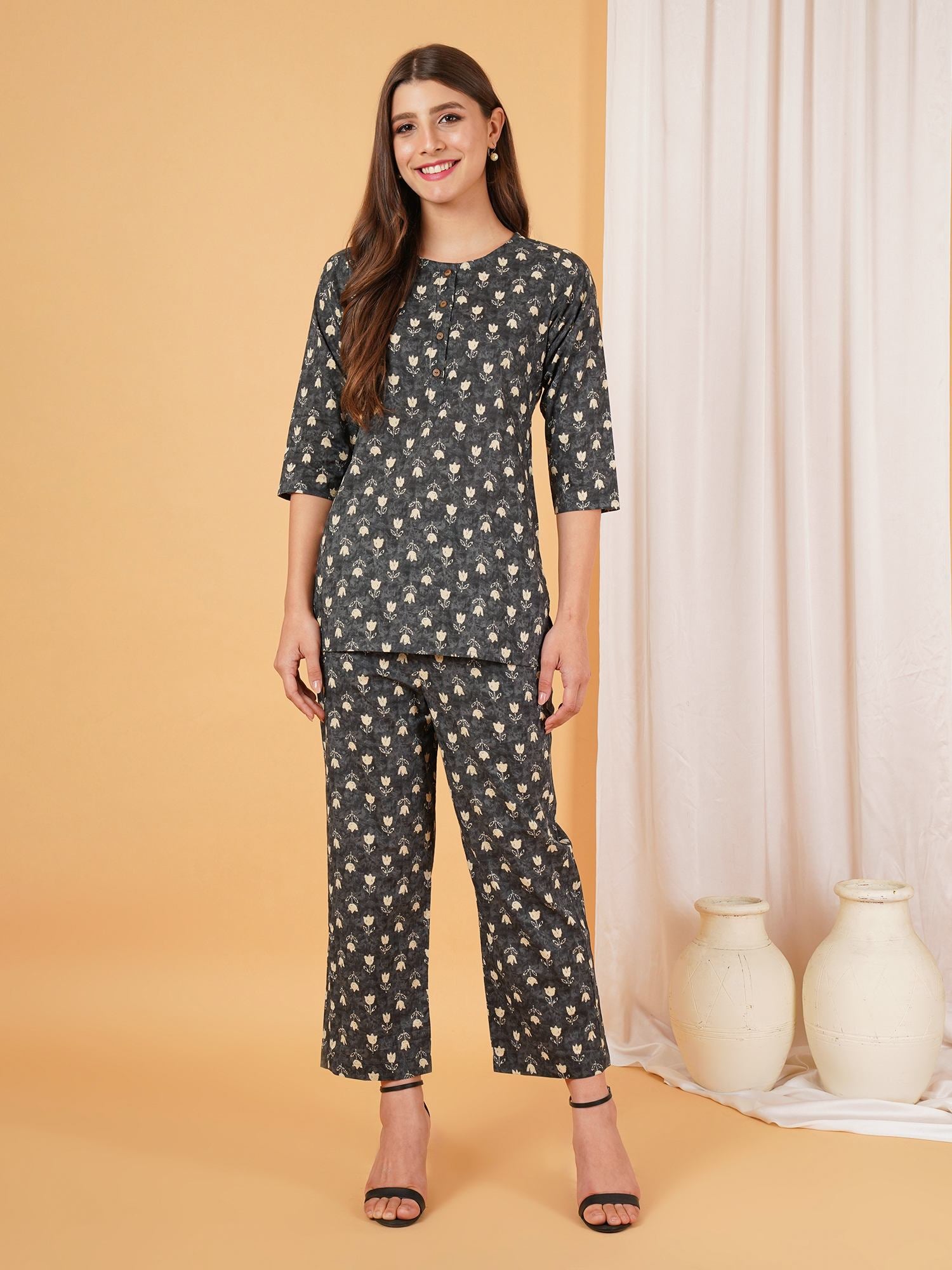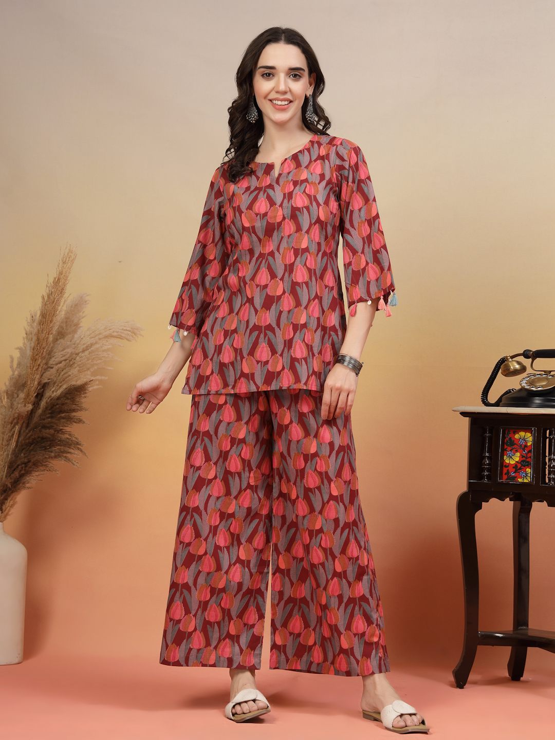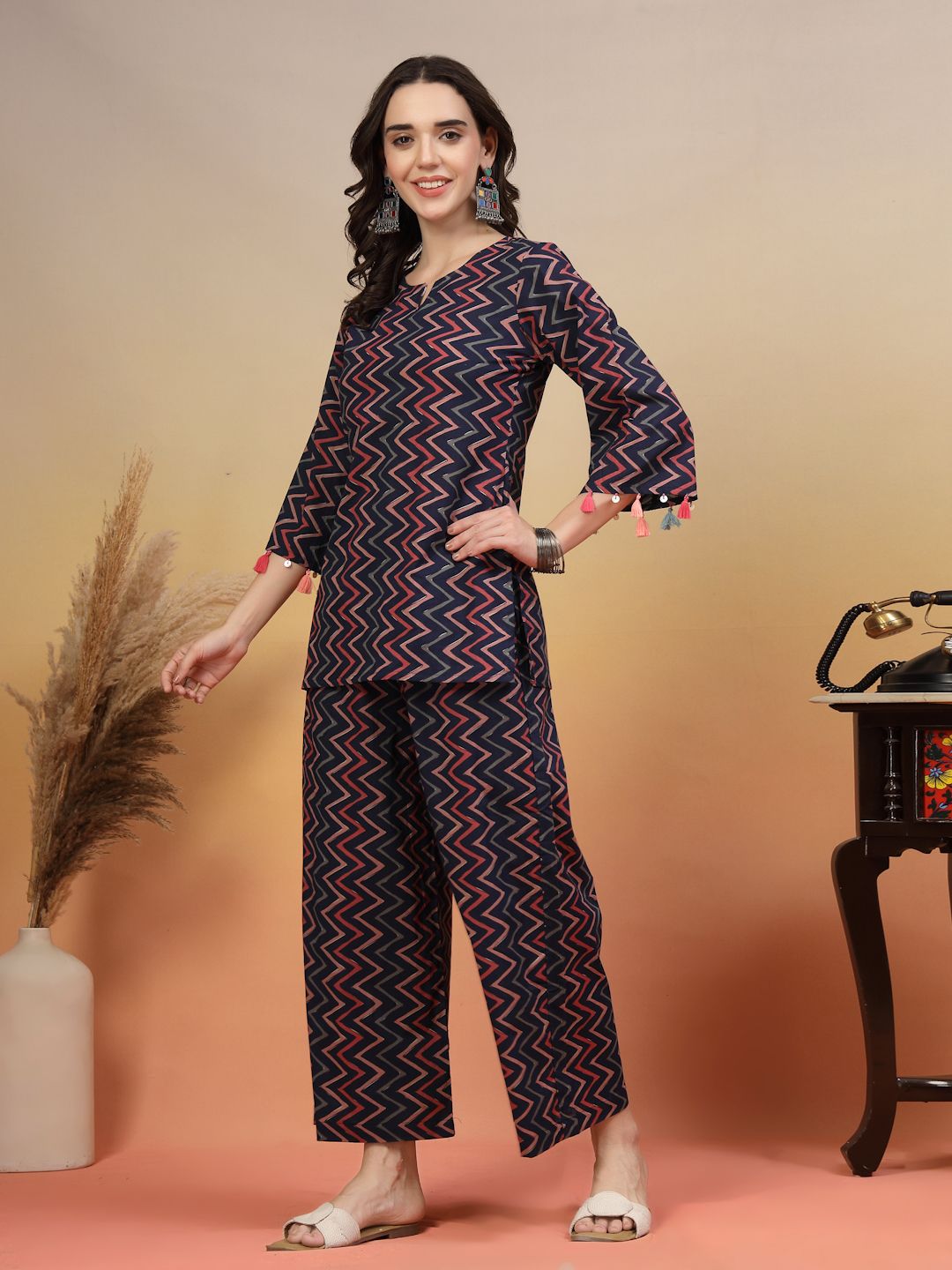 Relaxed Fit Cotton Co-Ord Set with Modern Print For Women