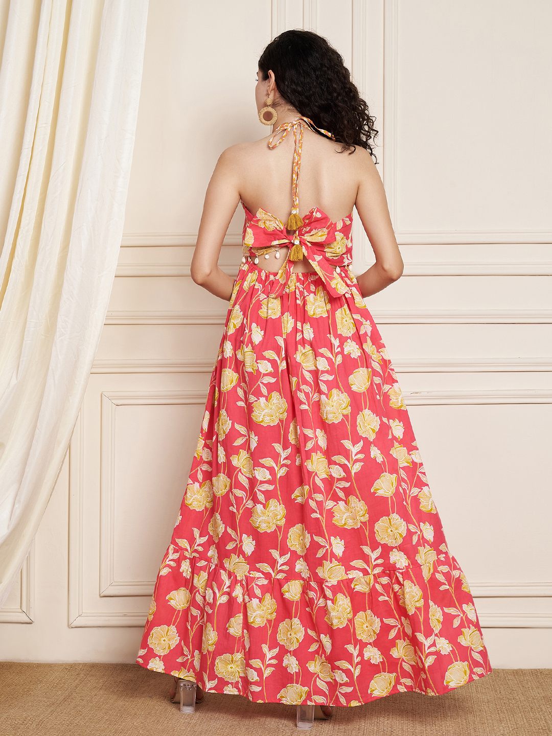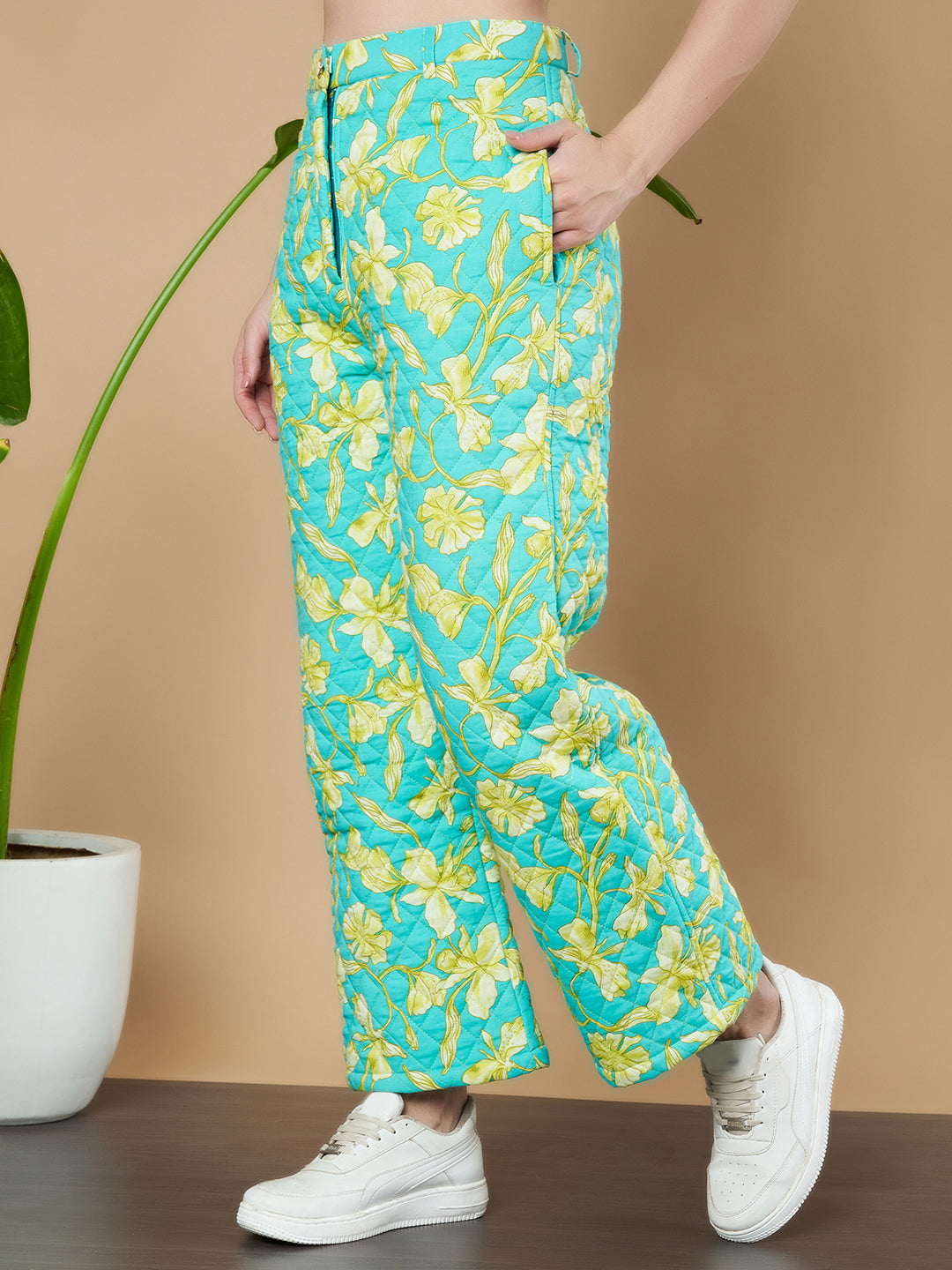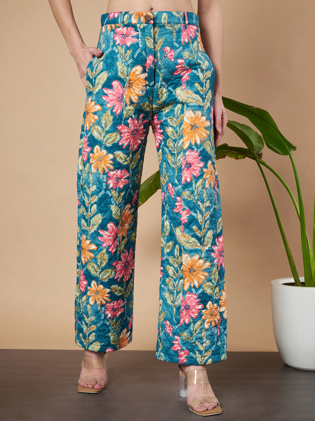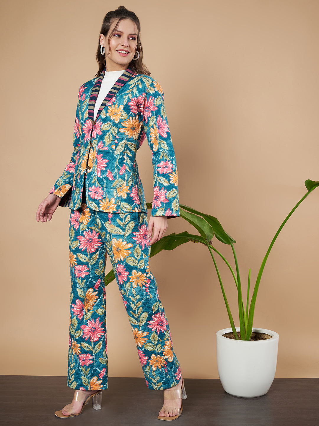 Floral Printed Mirror Highlighted 3 Piece Cotton Co-Ord Set For Women