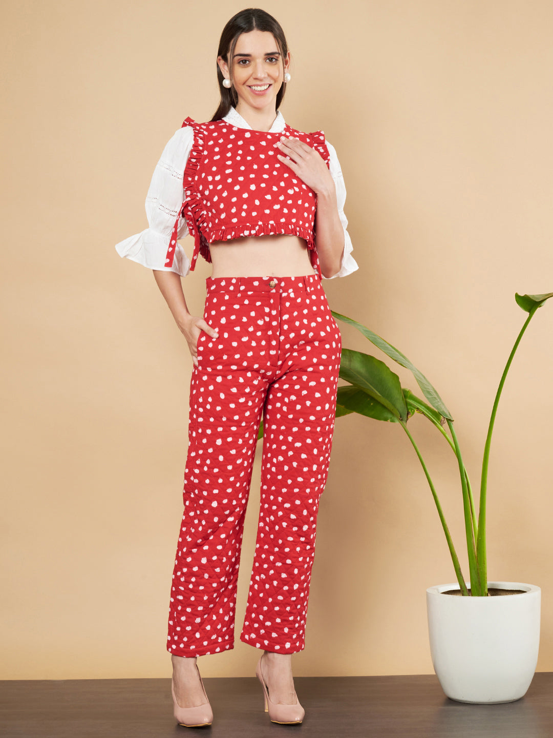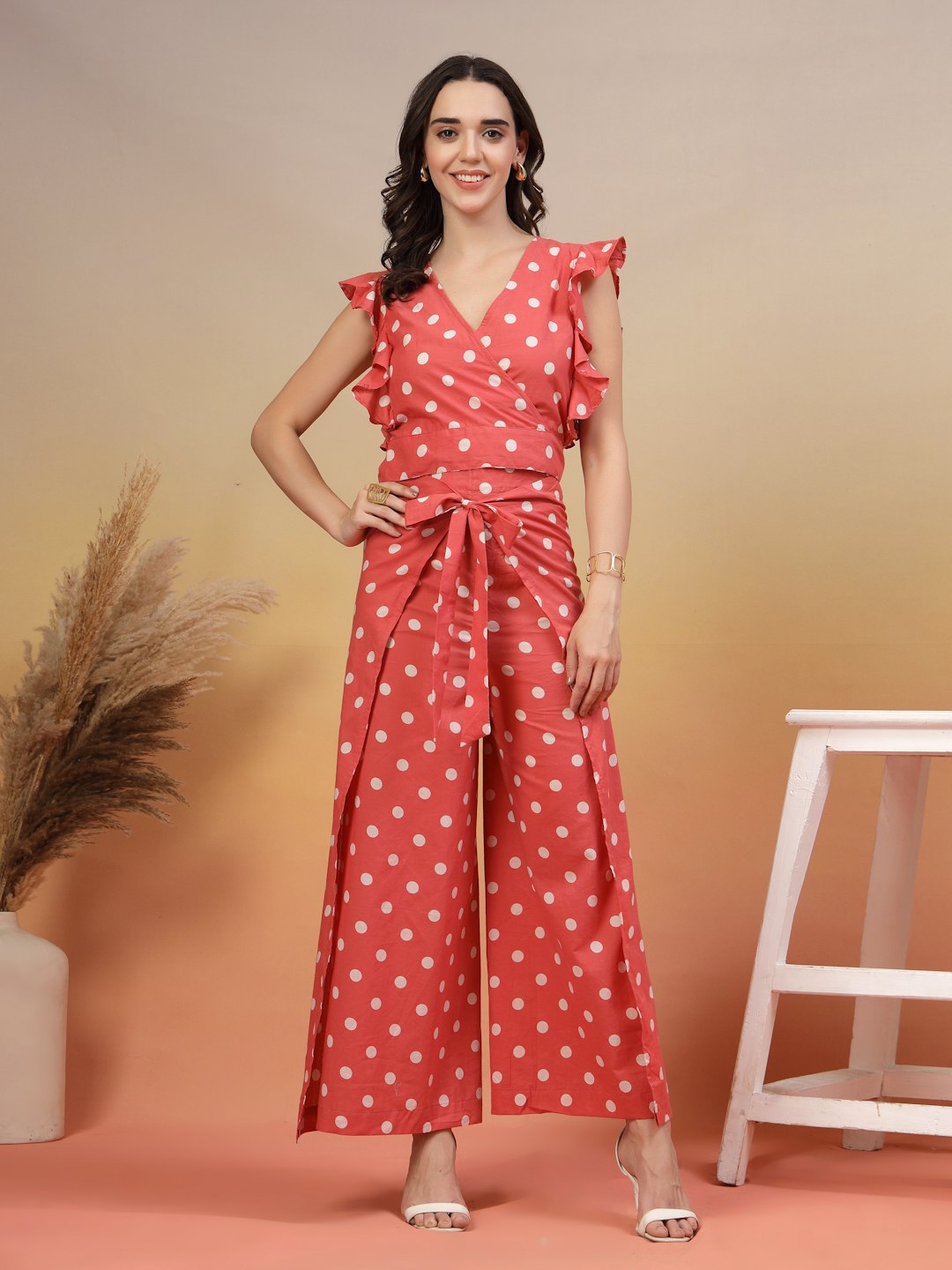 Wrap Around Polka Dot Cotton Co-Ord Set For Women