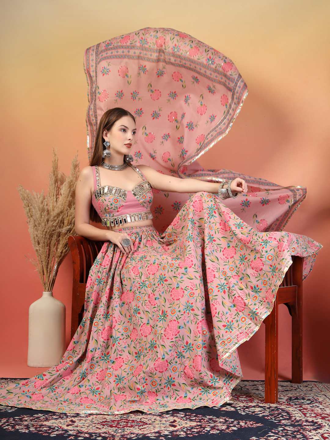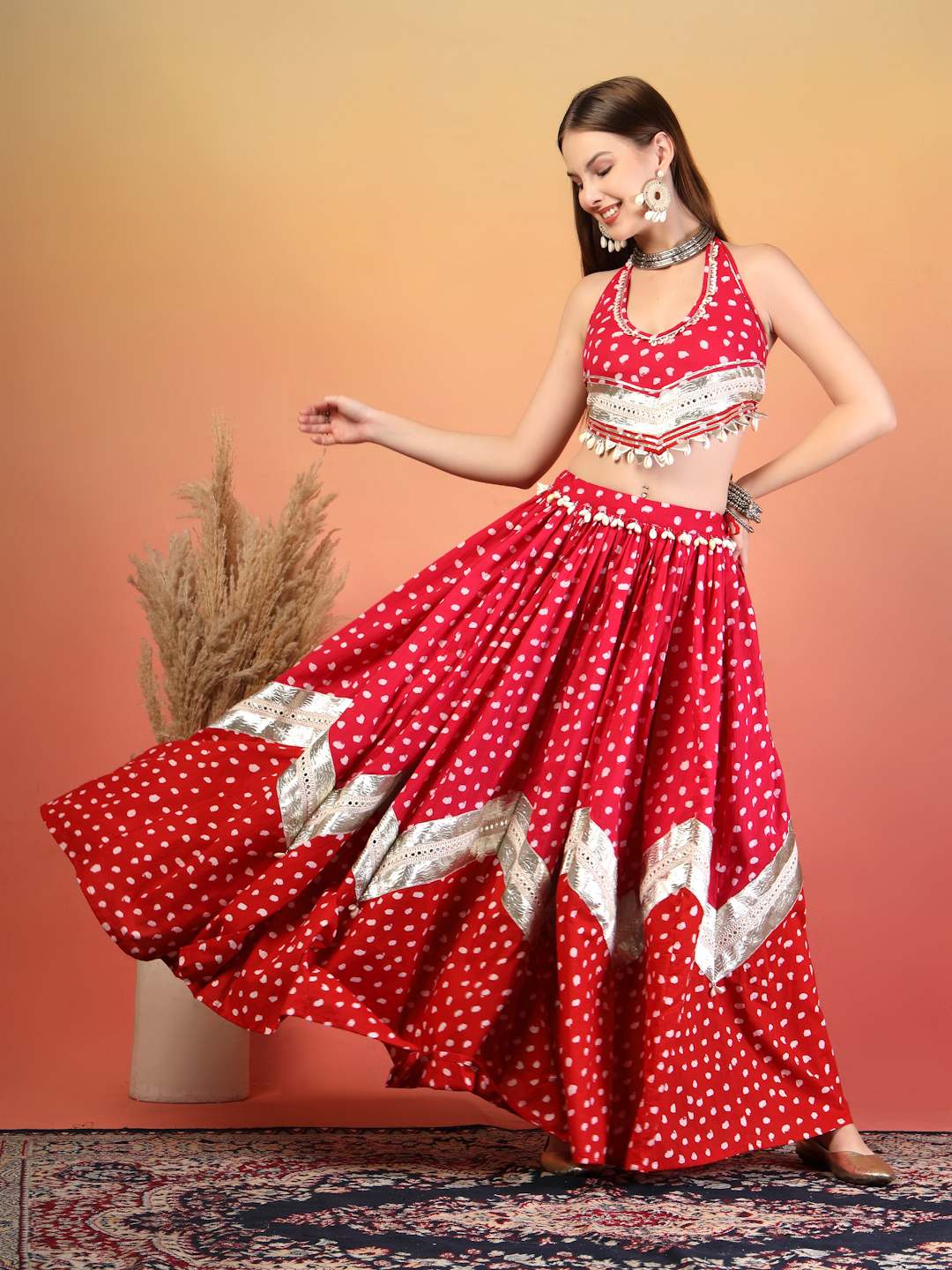 Mirror Work Rajasthani Handcrafted Lehenga Choli Set with Dupatta for Women