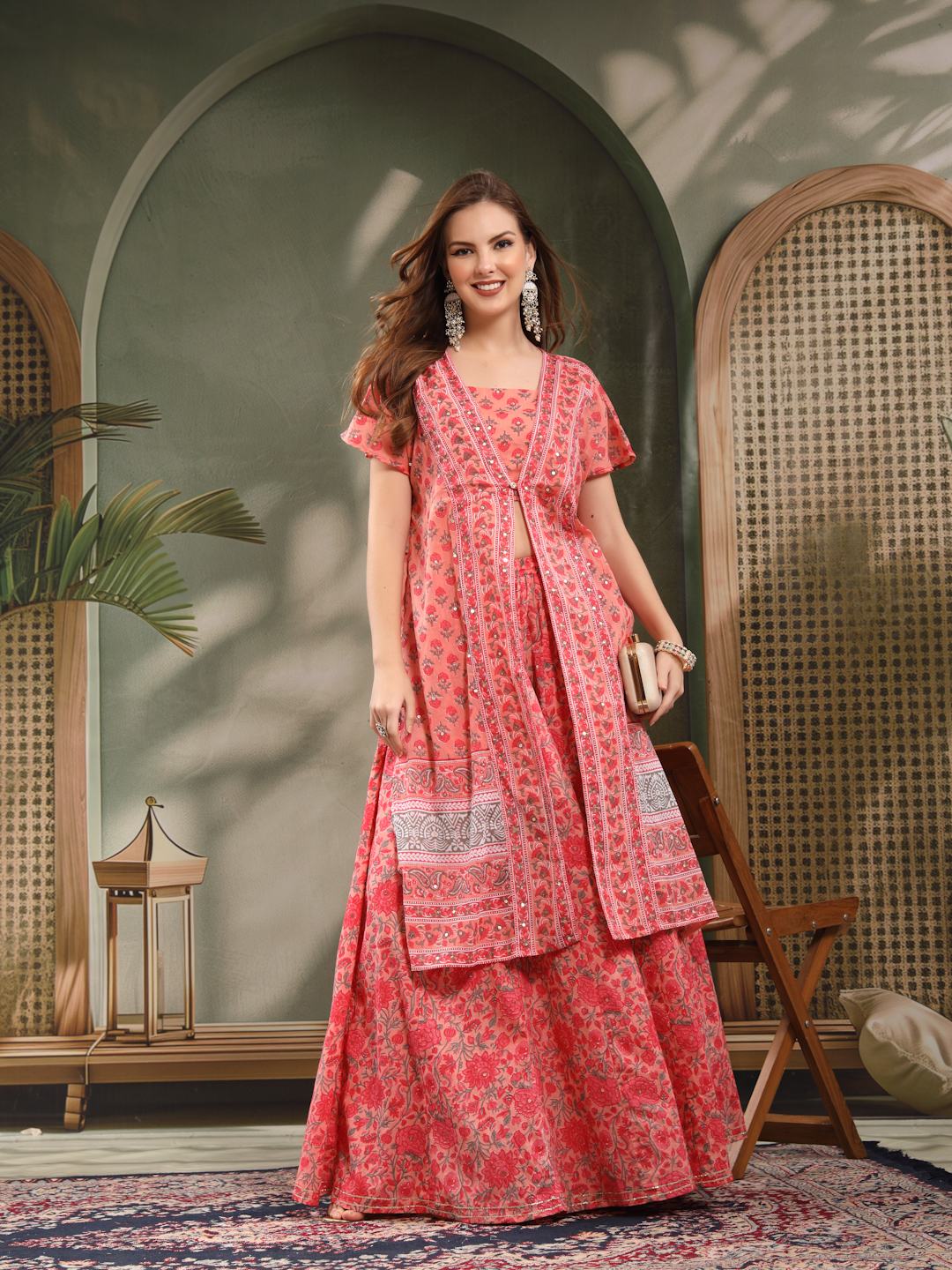 Pure Cotton Ethnic Straight Kurti with Skirt For Girls