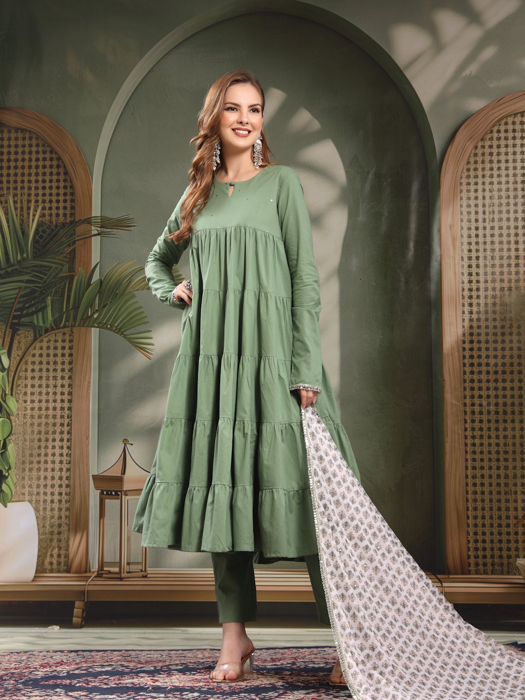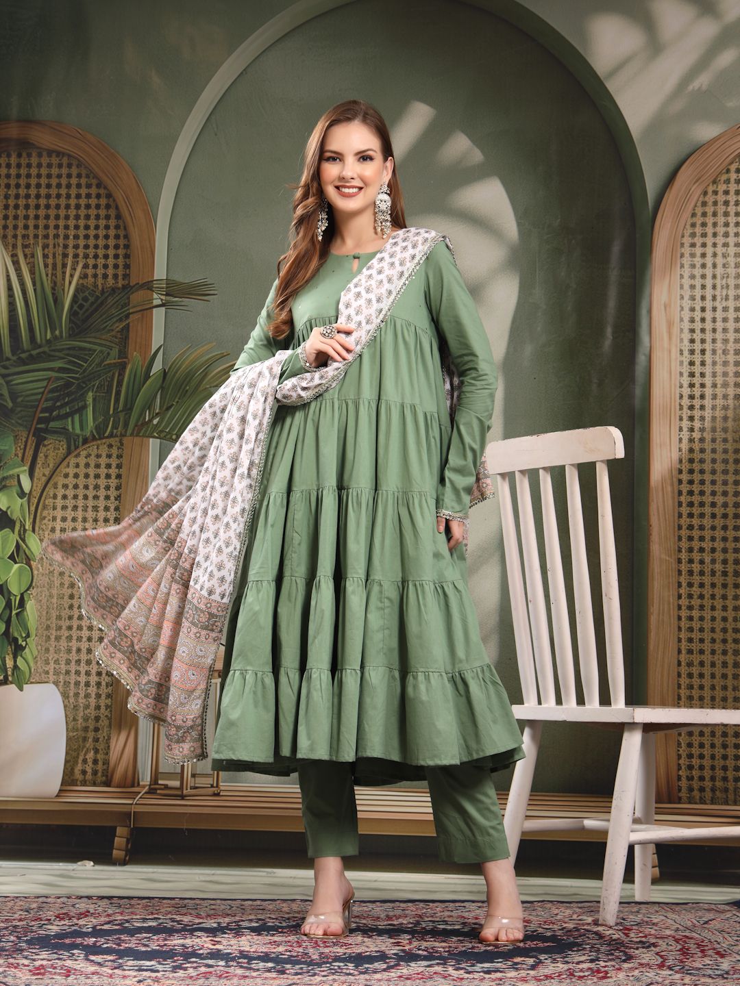 Tiered Kurta With Cotton Pants And Dupatta For Women