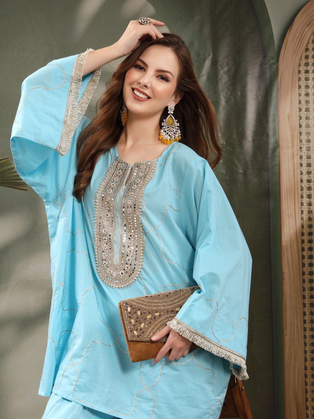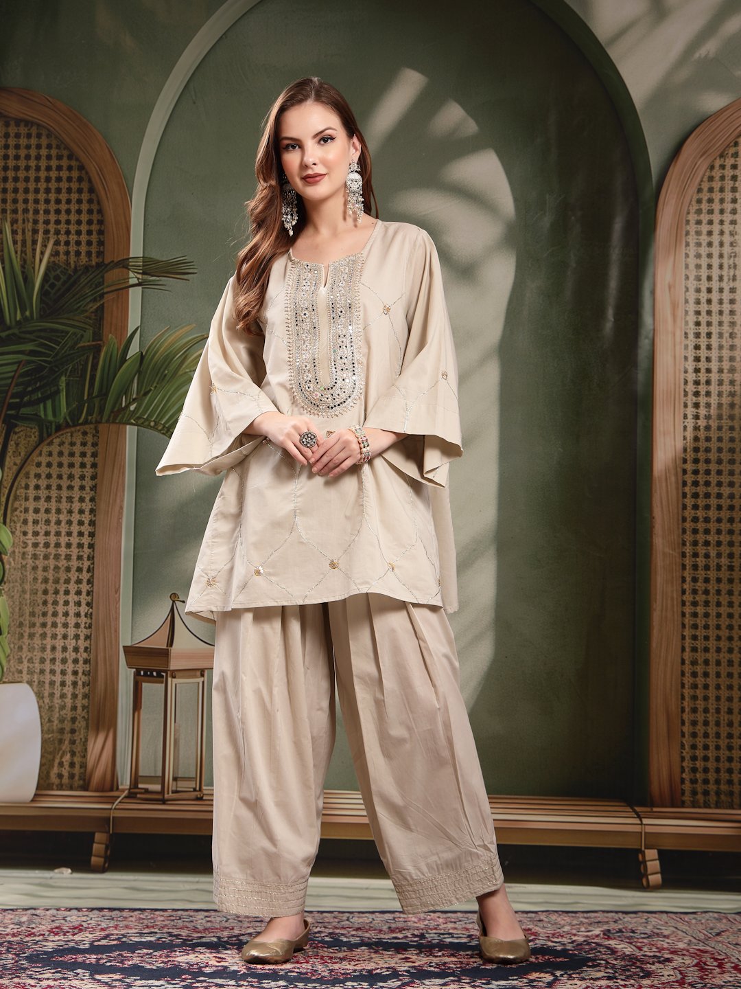 Oversized Cotton Mirror Work Kurta Salwar Set For Women