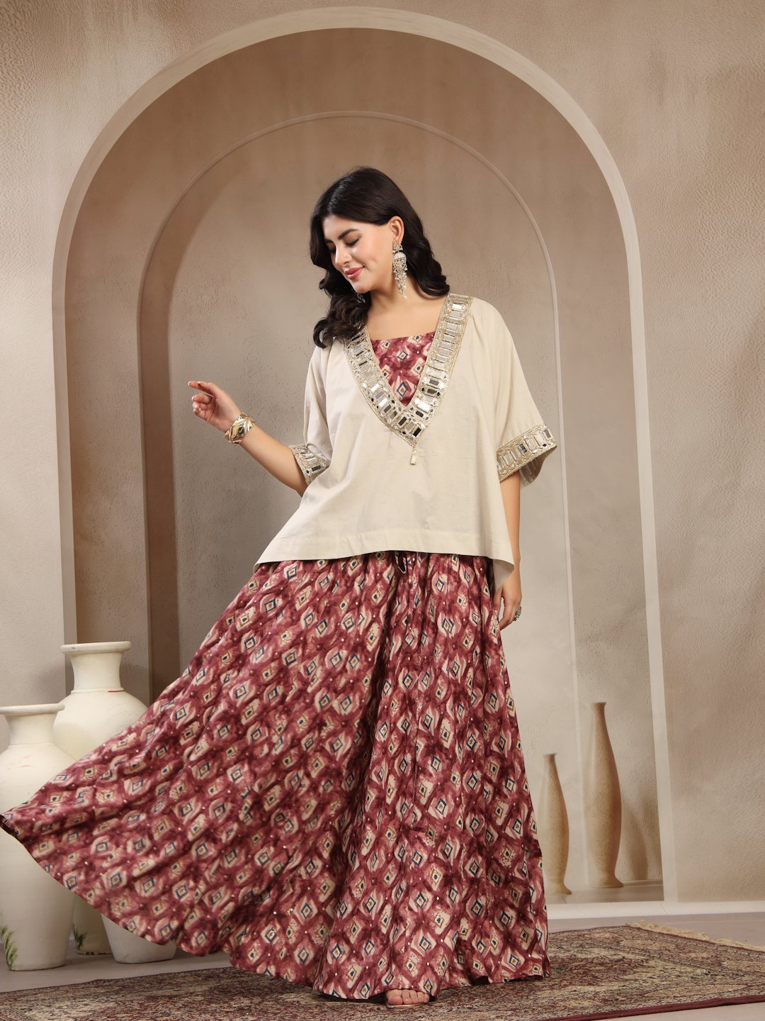 Statement Mirror Work Cape & Skirt Co-Ord Set For Women