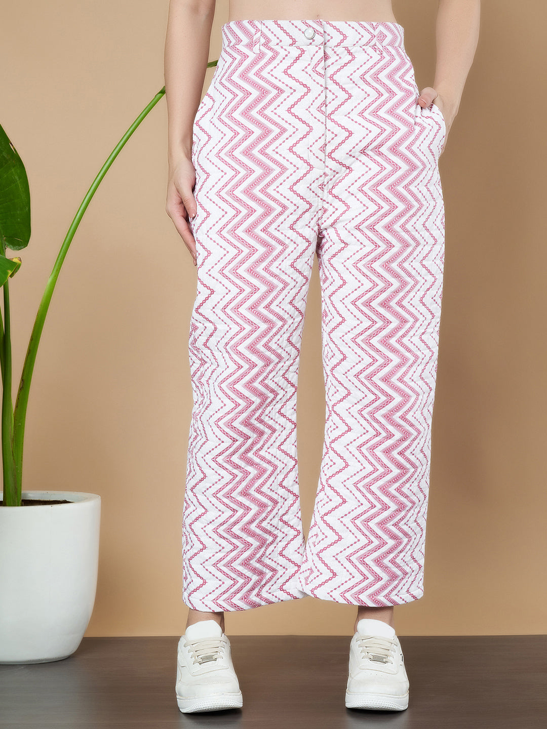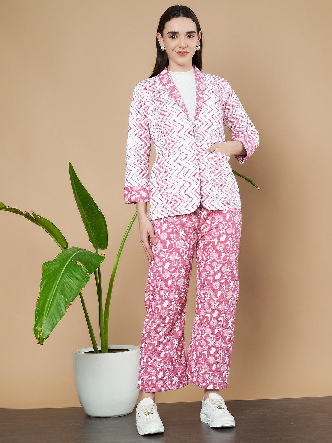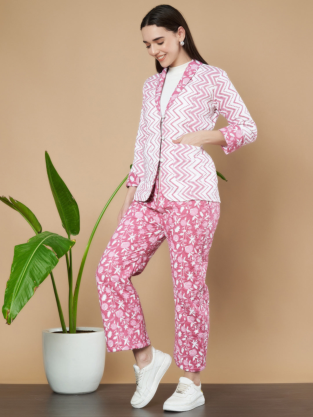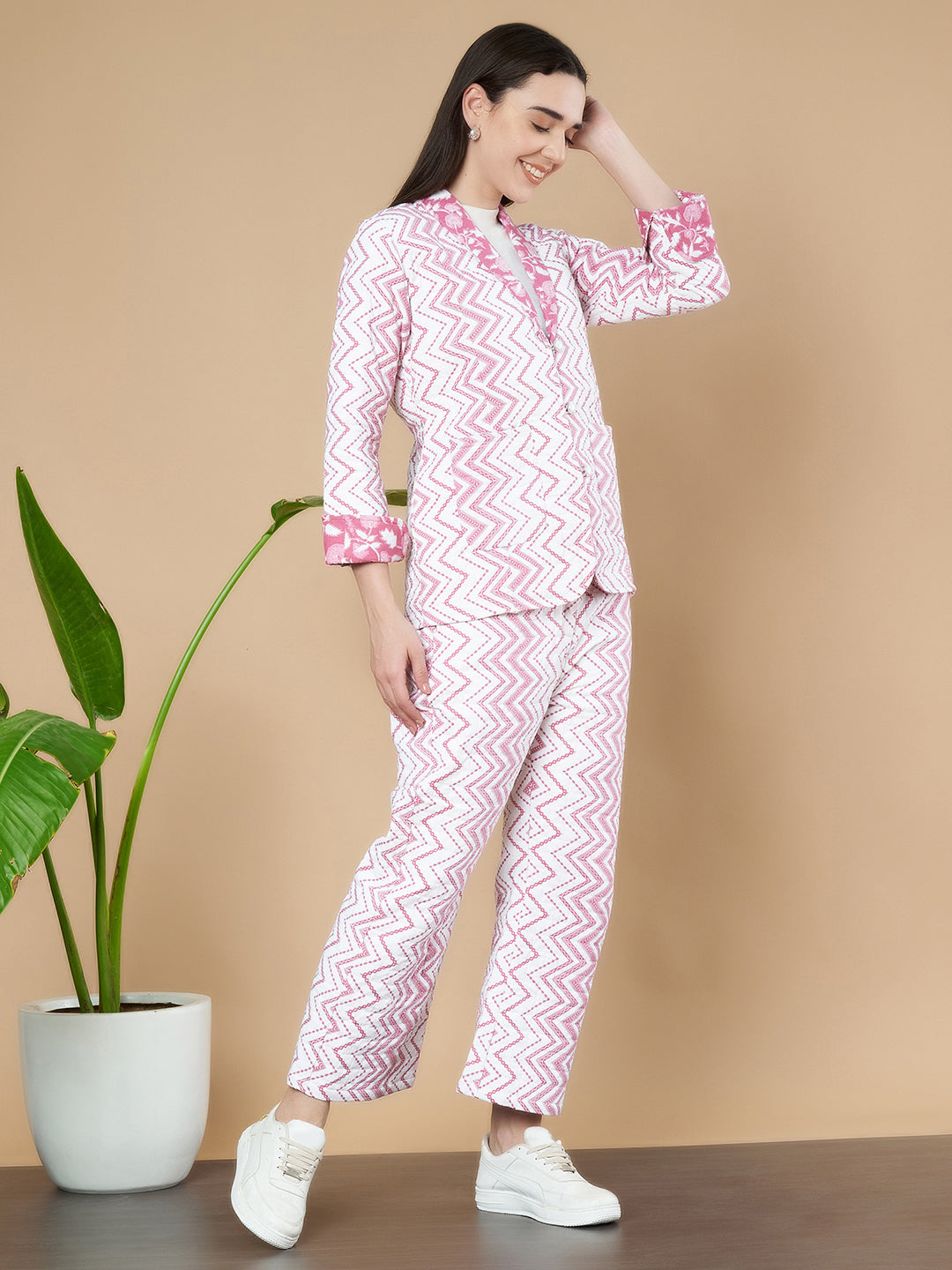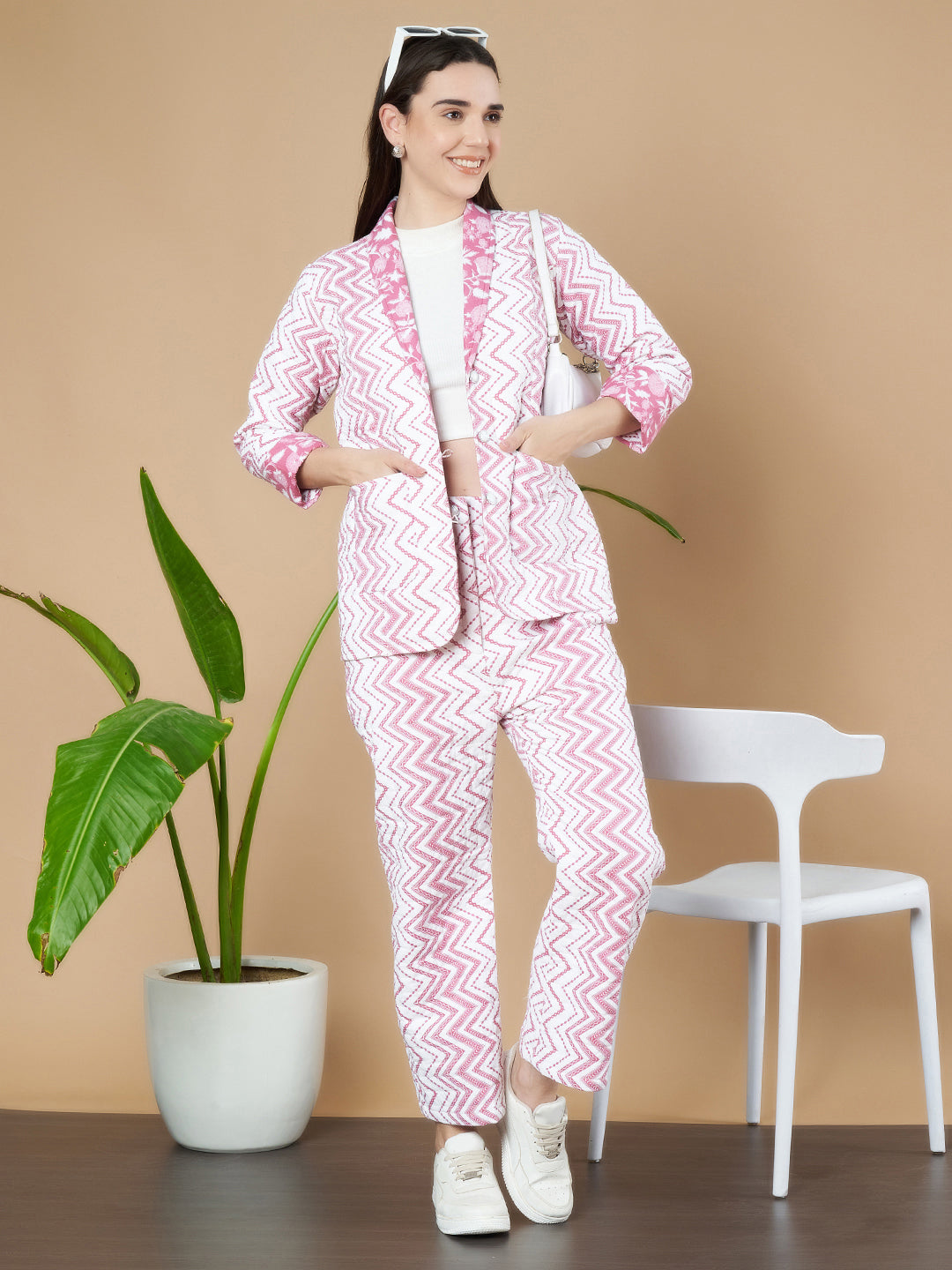 Quilted Pink Chevron Blazer & Trouser Set for Women