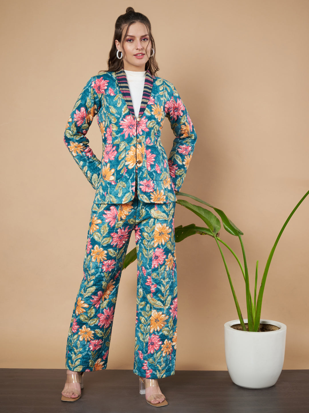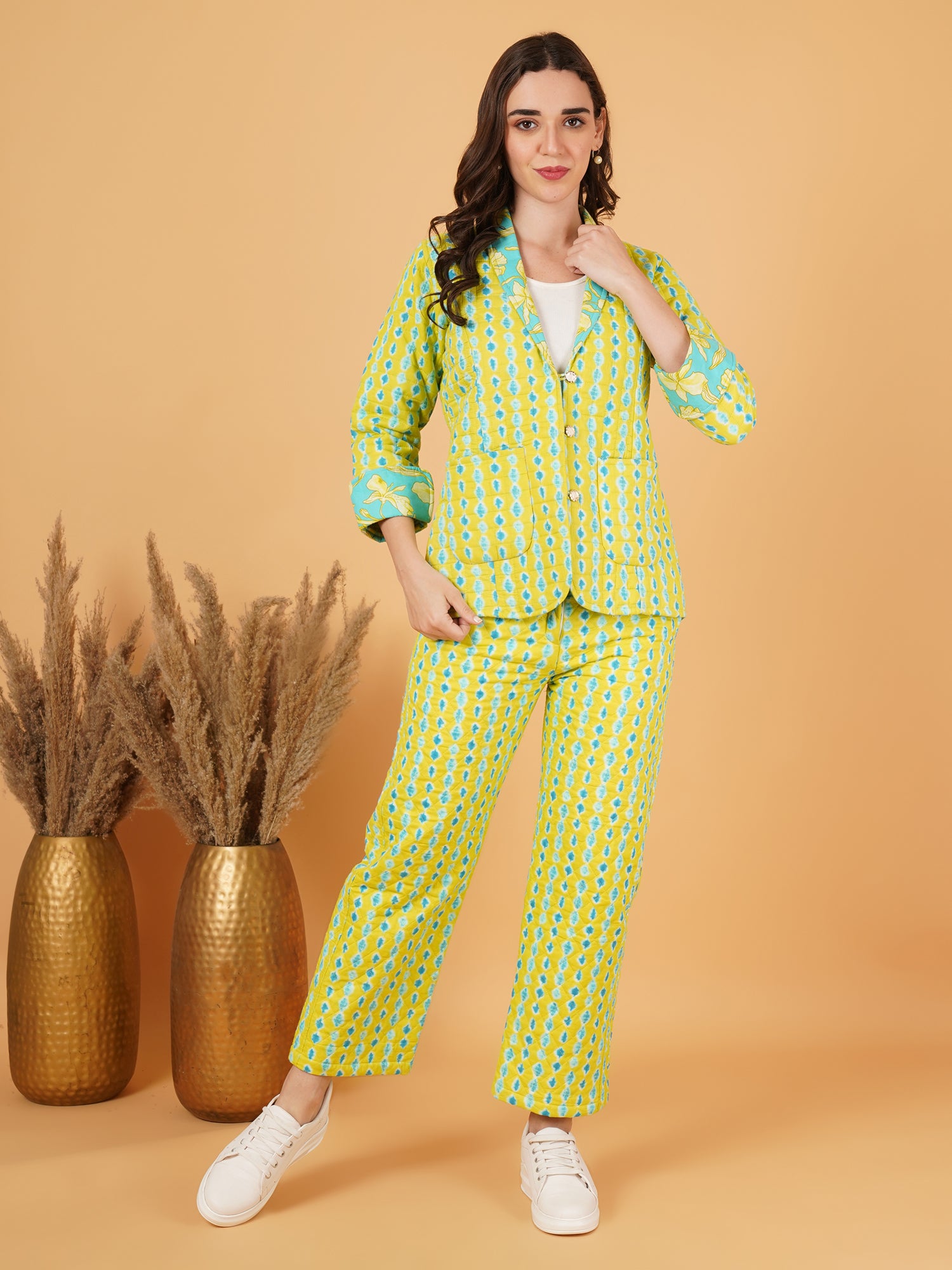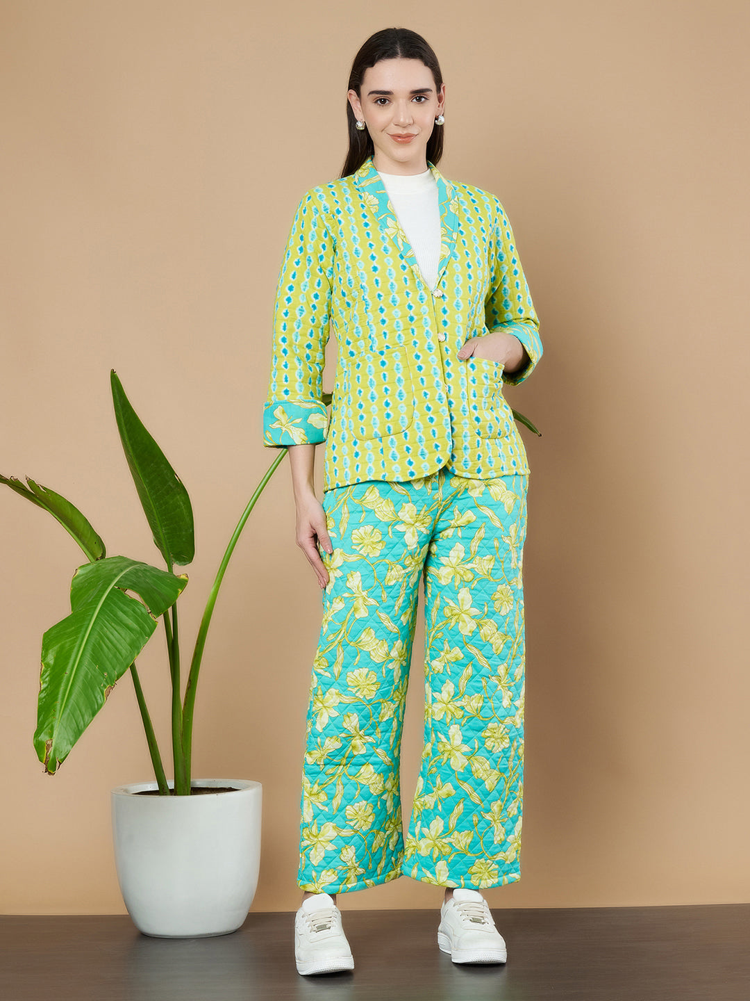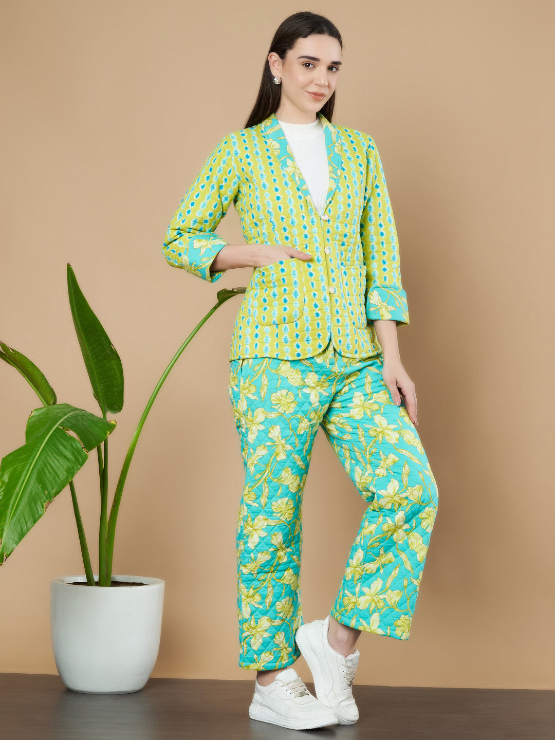 Womenβs Chevron Quilted Blazer & Pant Co-Ord Set