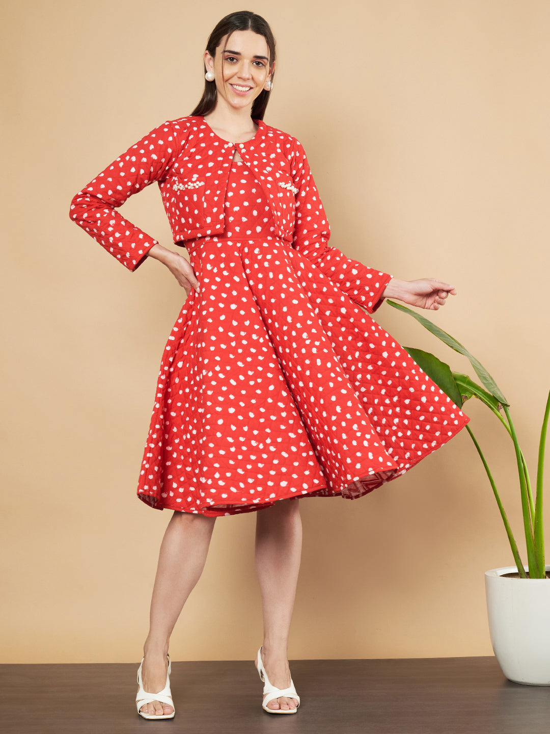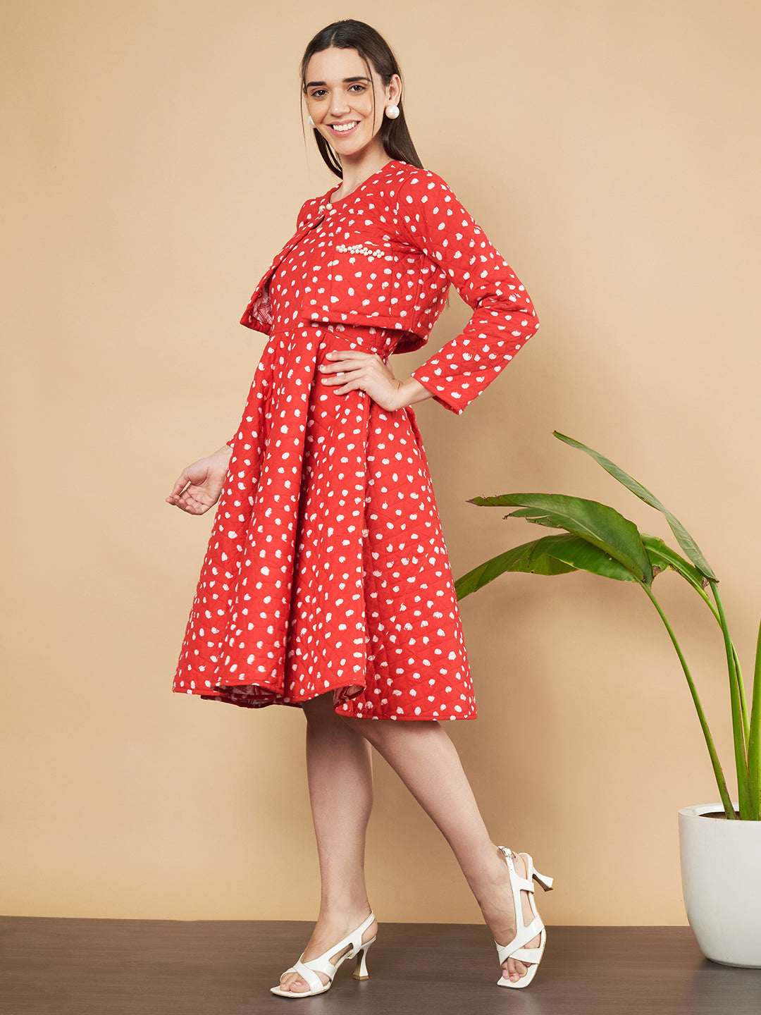 Premium Polka Dot Quilted Cotton Jacket & Dress Set for Women