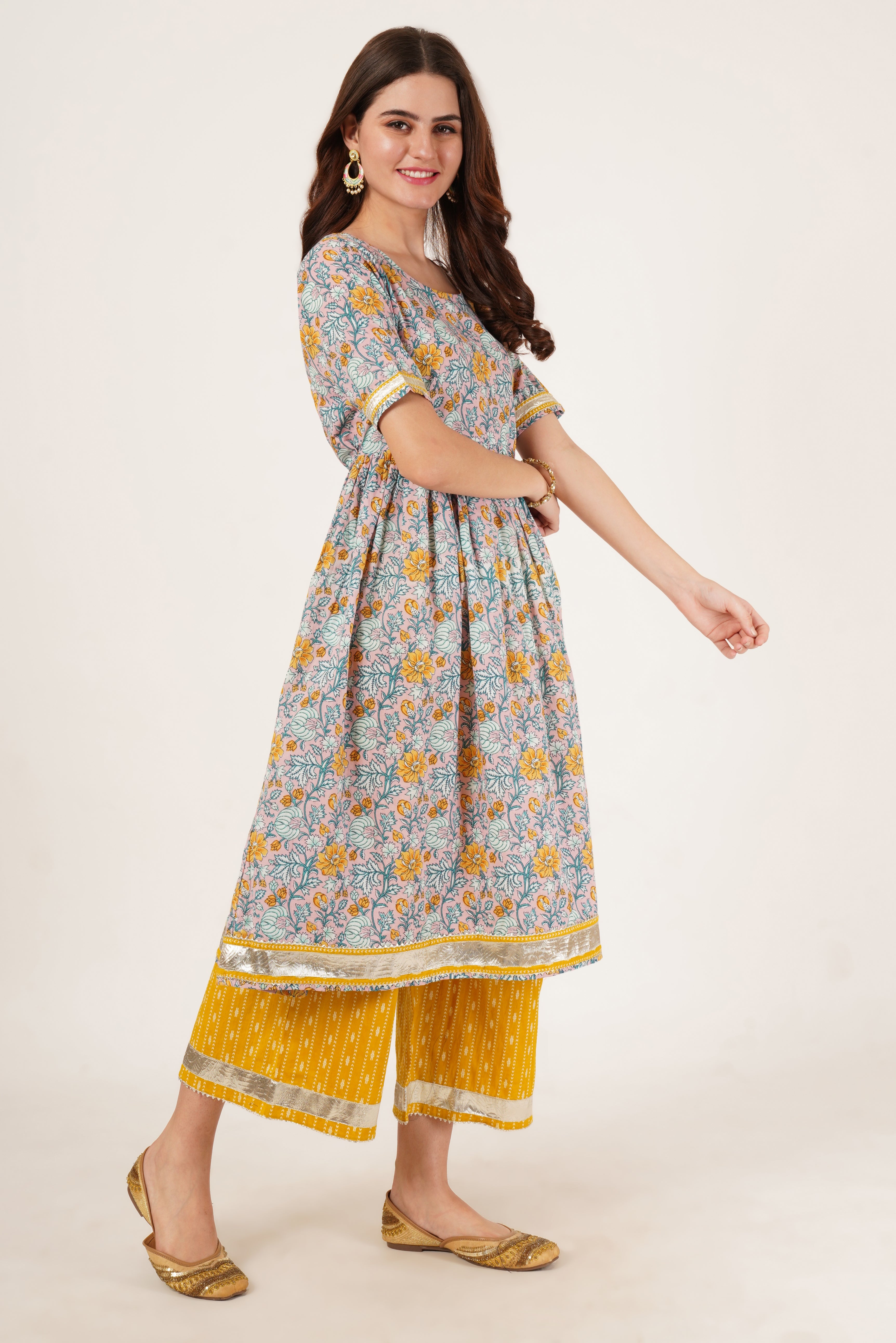 Jaipur-Inspired Cotton Kurta Palazzo Outfit For Women