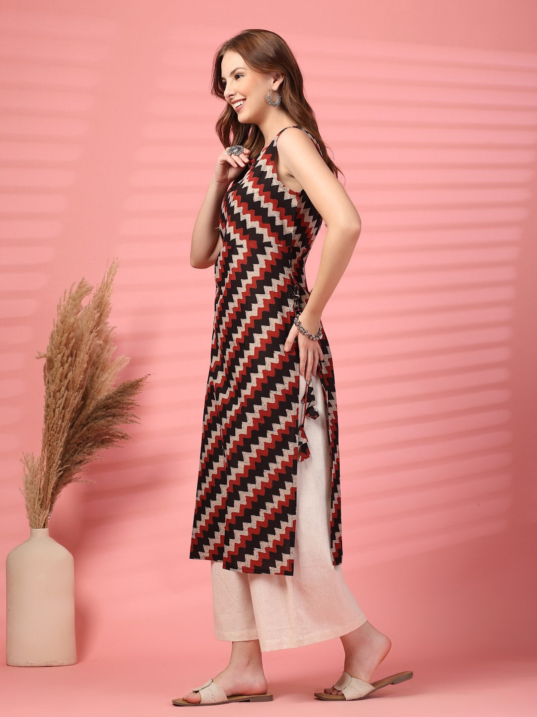 Schwarz-weißes geometrisches Palazzo Kurta-Set für Damen