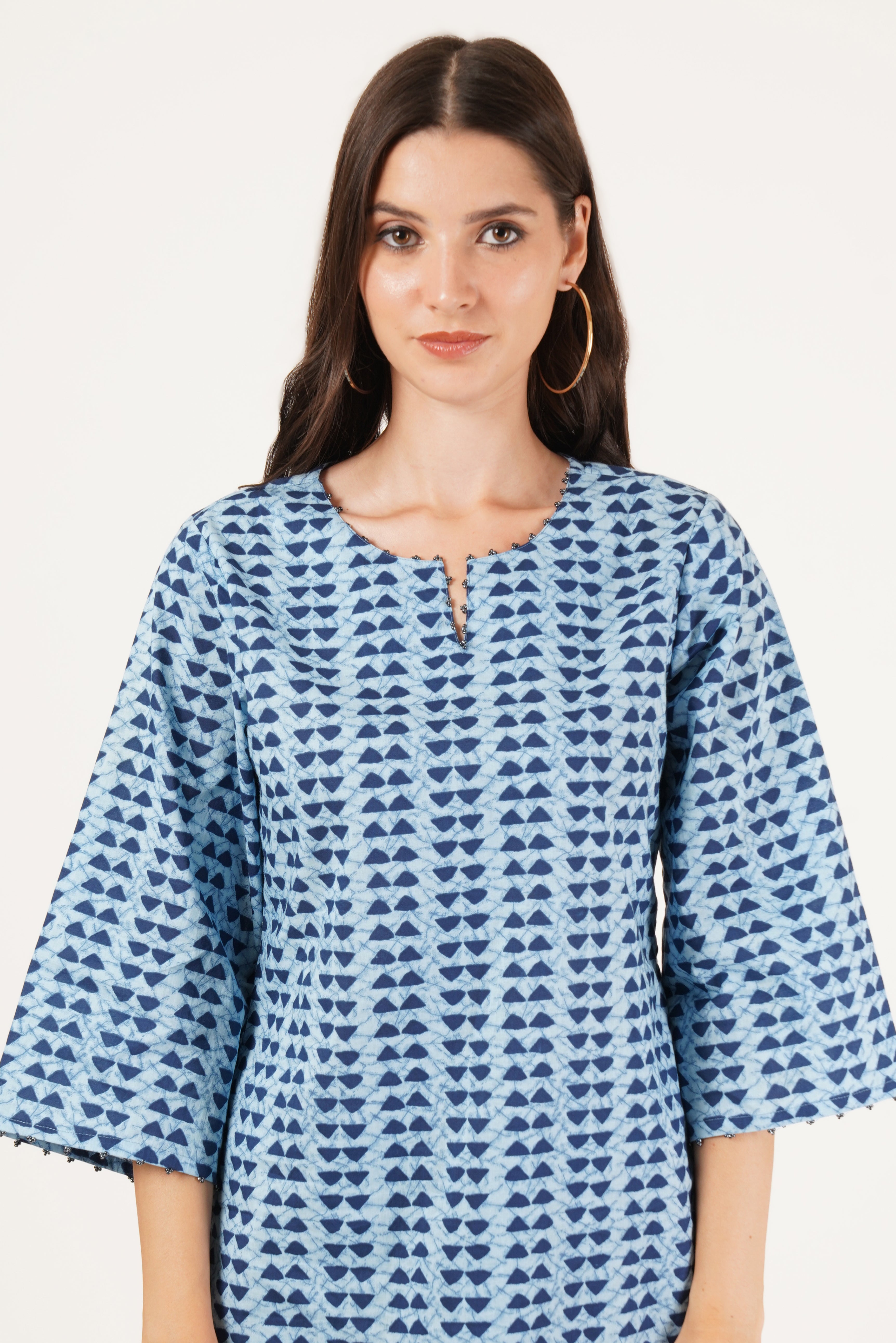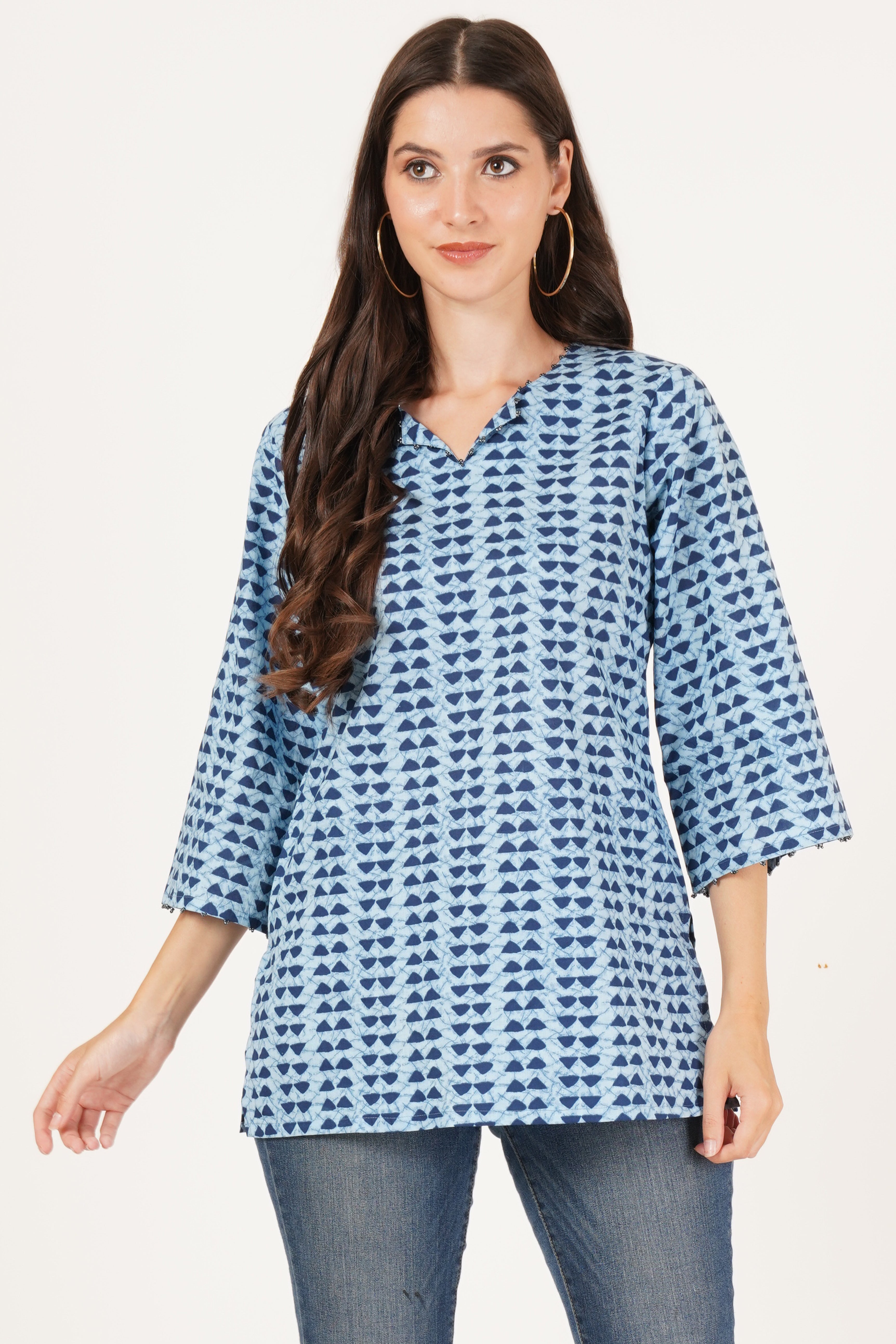 Kurzes Kurti für Damen mit einzigartigen blauen Mustern