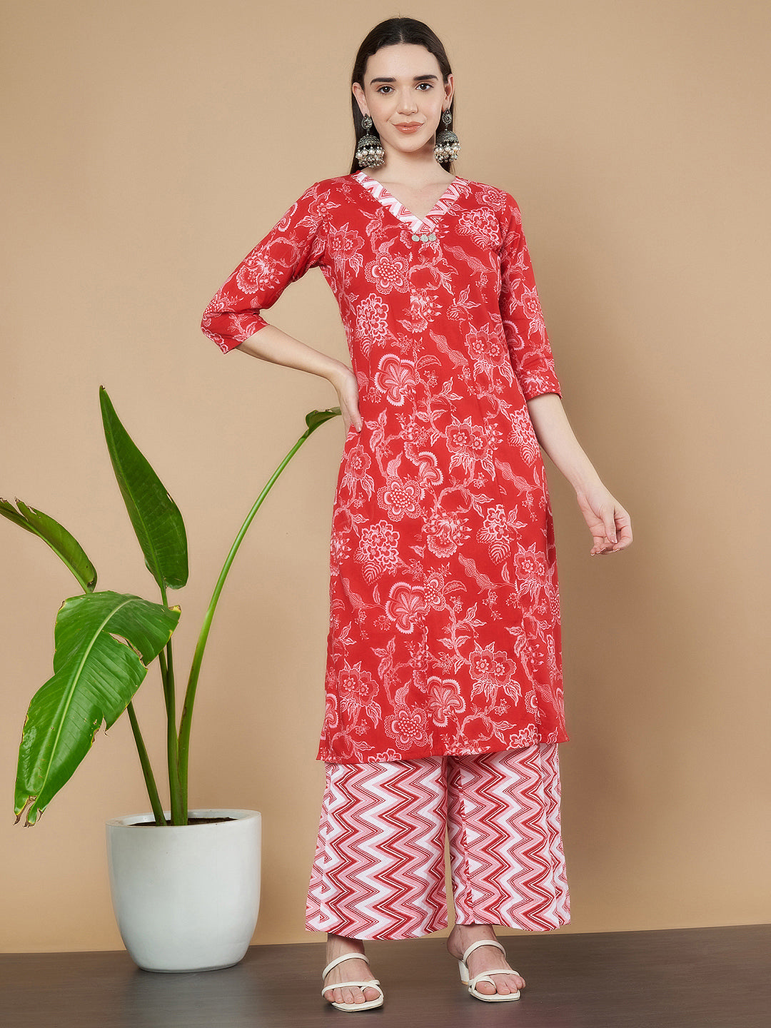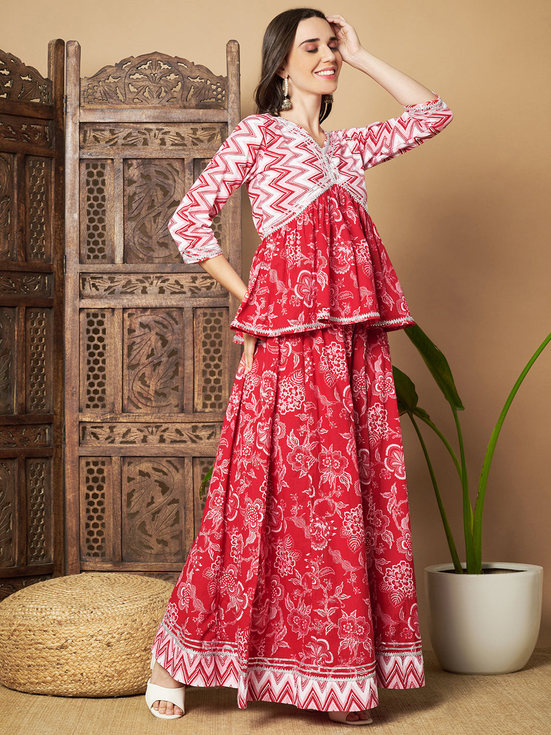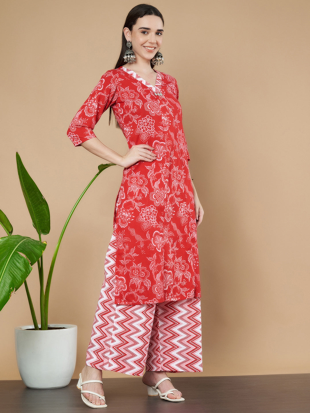 Elegantes Kurta-Set aus Baumwolle in Rot und Weiß für Damen