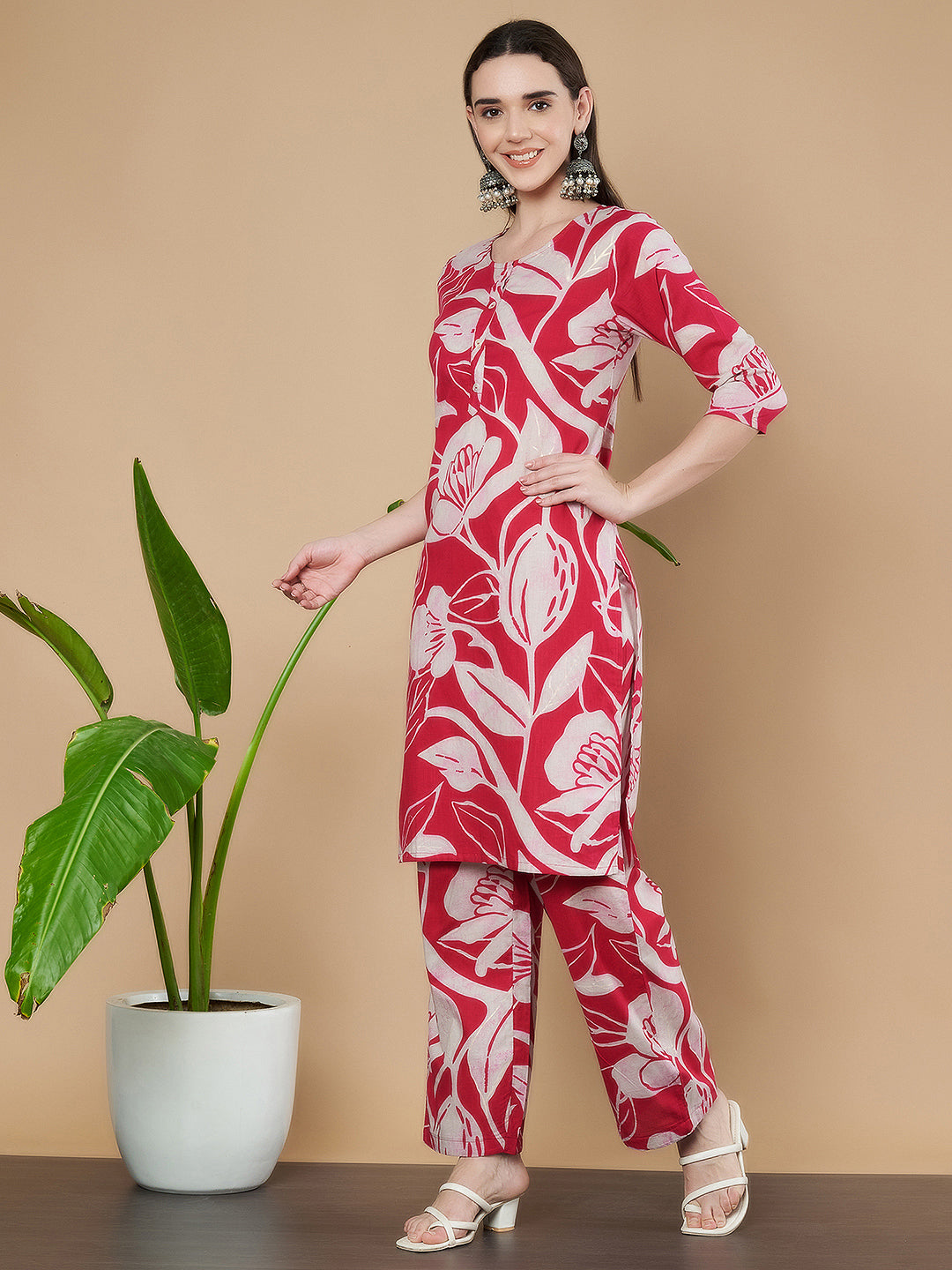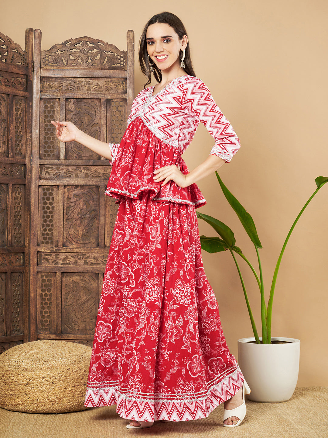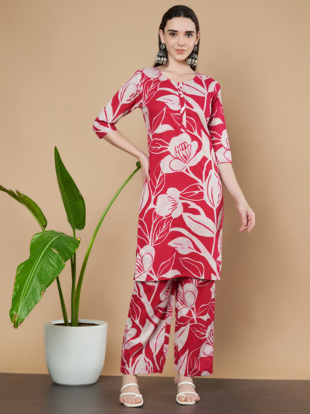 Elegantes Kurta-Set aus Baumwolle in Rot und Weiß für Damen