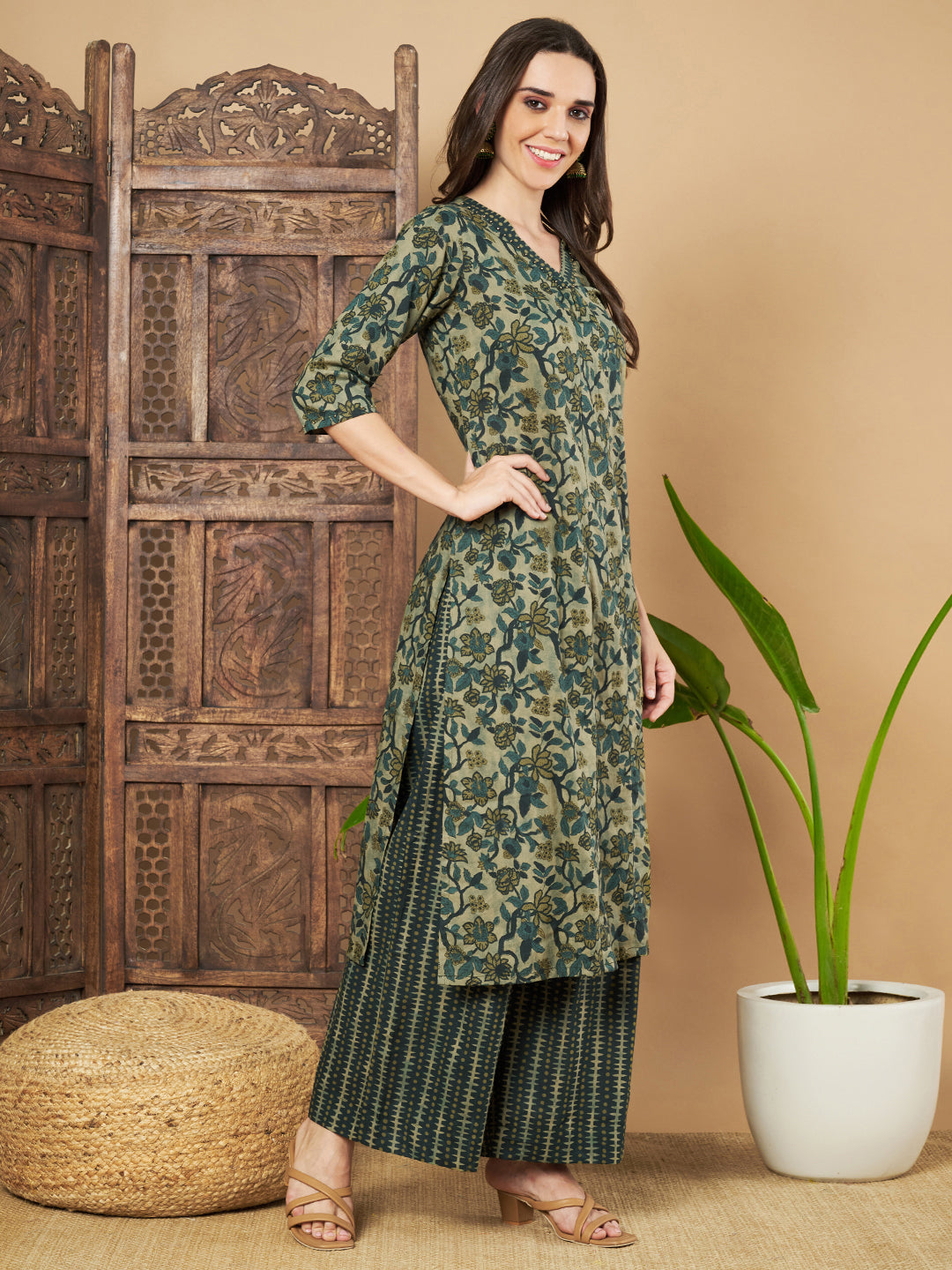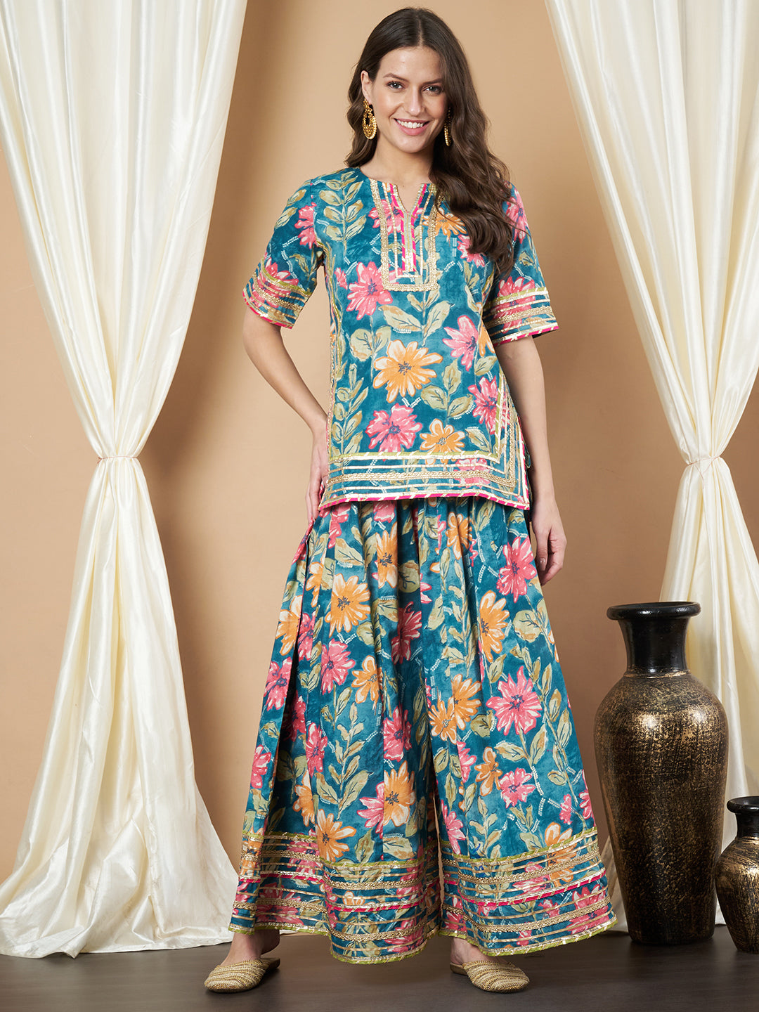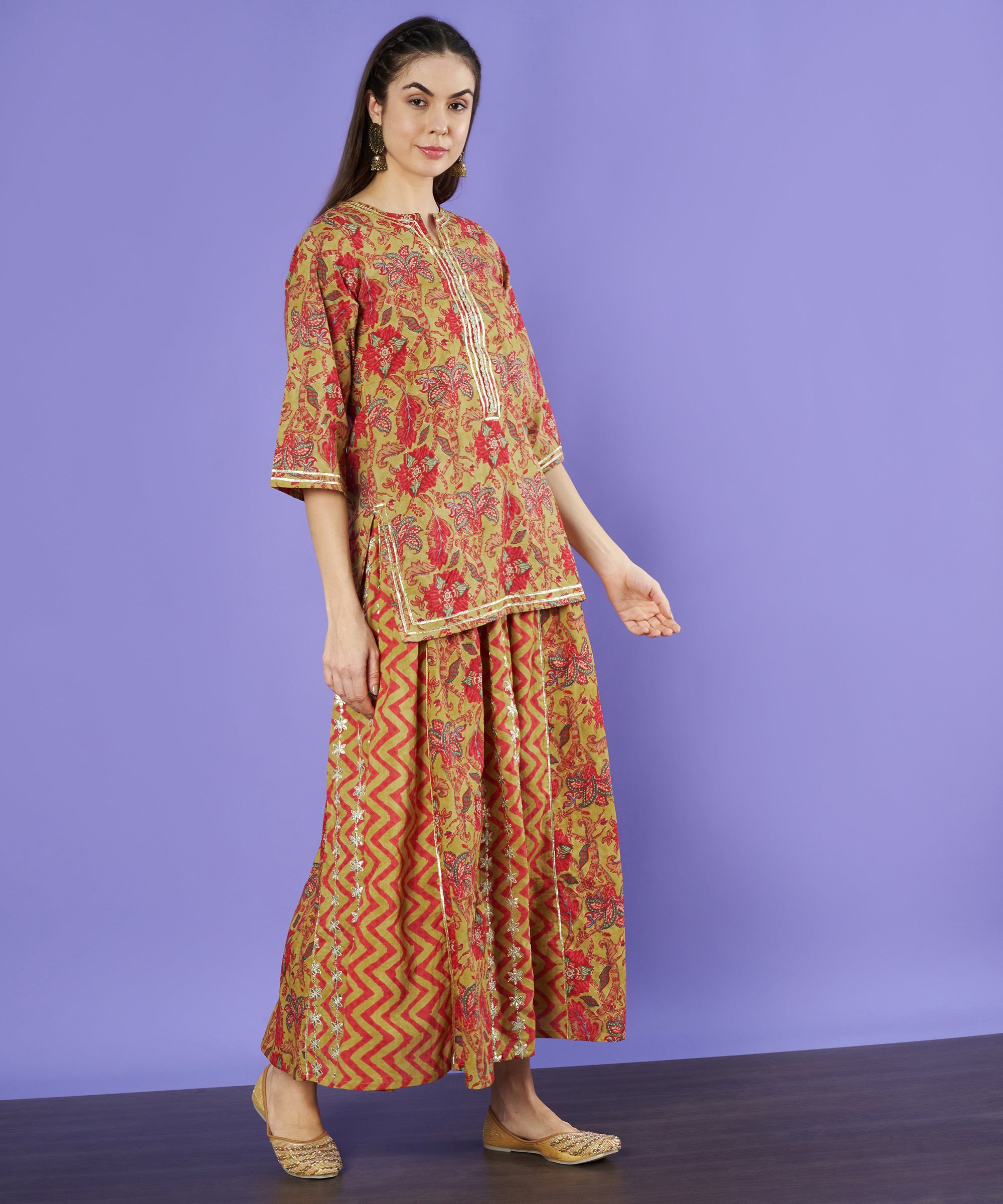 Ethnisches Kurta- und Palazzo-Set aus Baumwolle für Damen