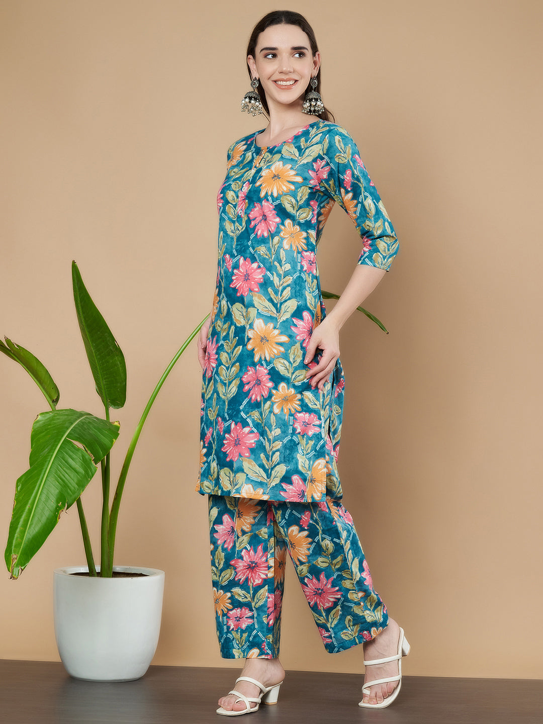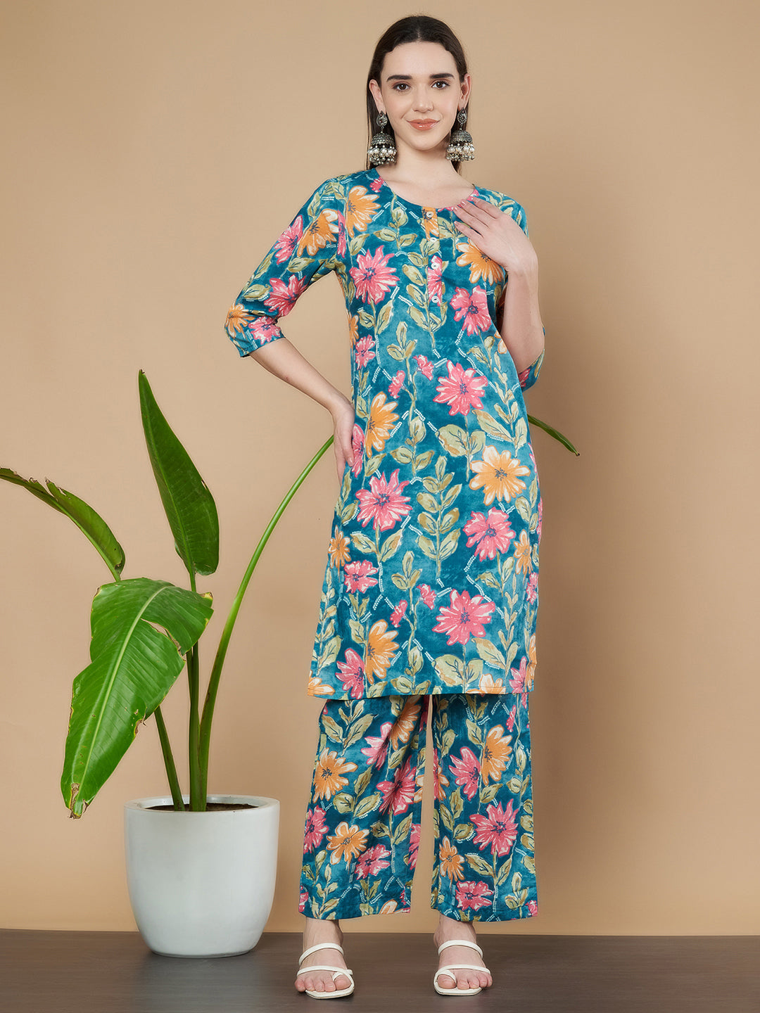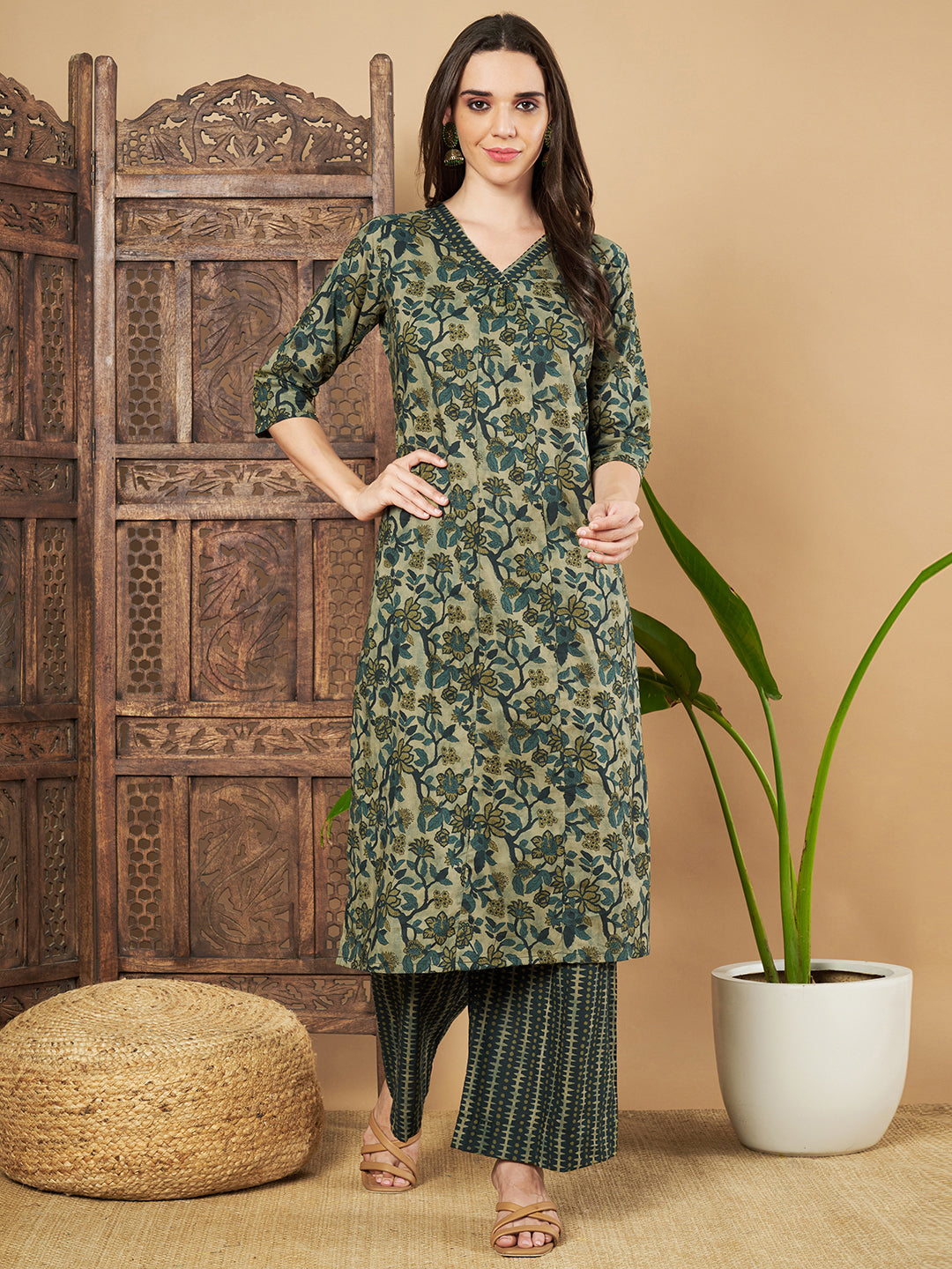 Ethnisches Kurta- und Palazzo-Set aus Baumwolle für Damen