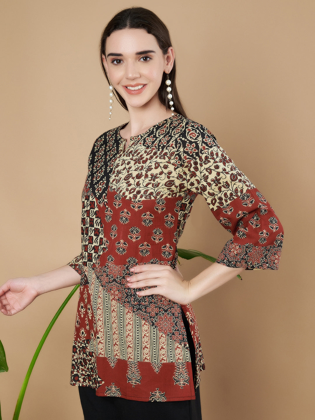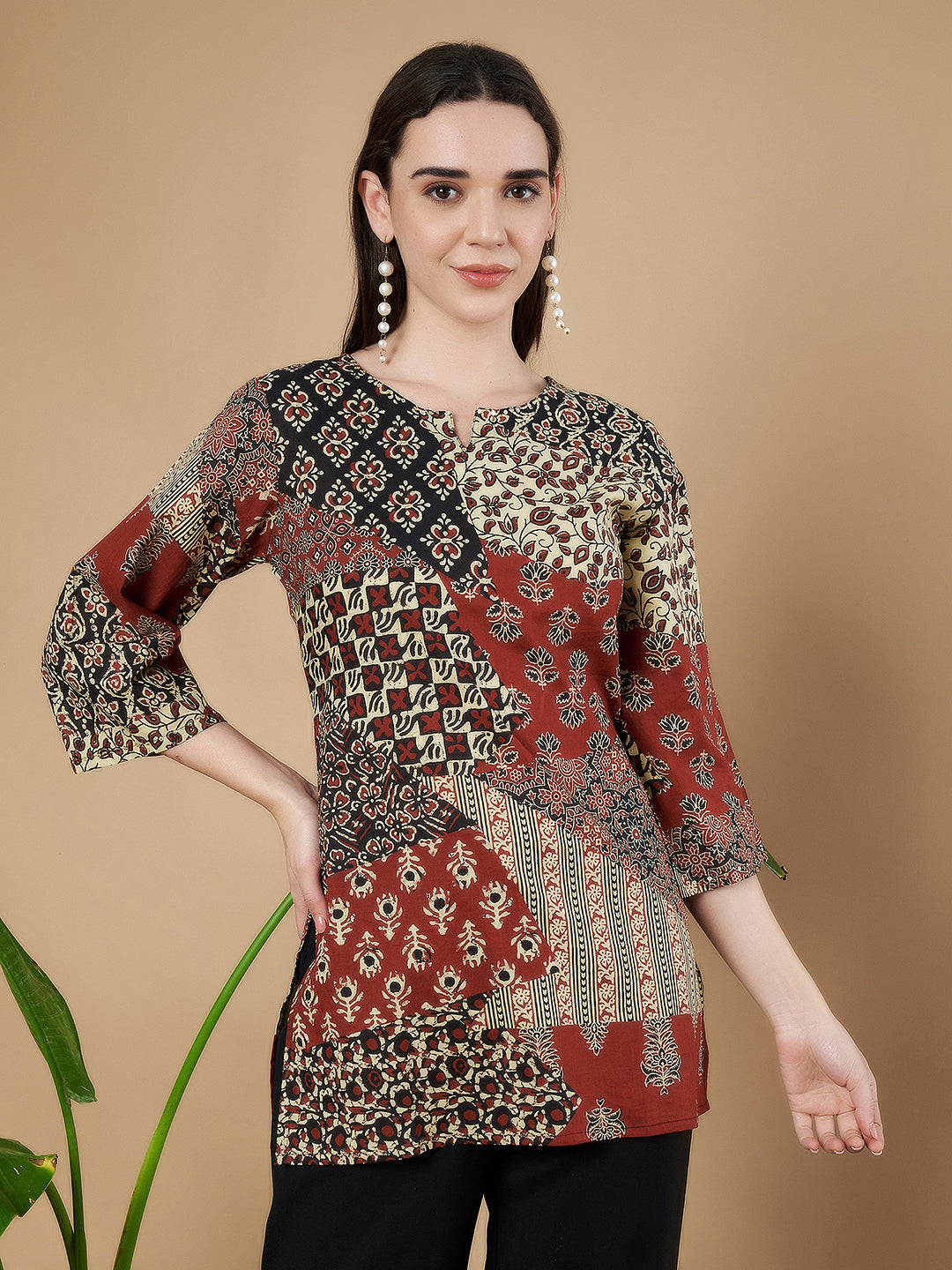 Kurti mit ethnischem Patchwork-Muster für Frauen