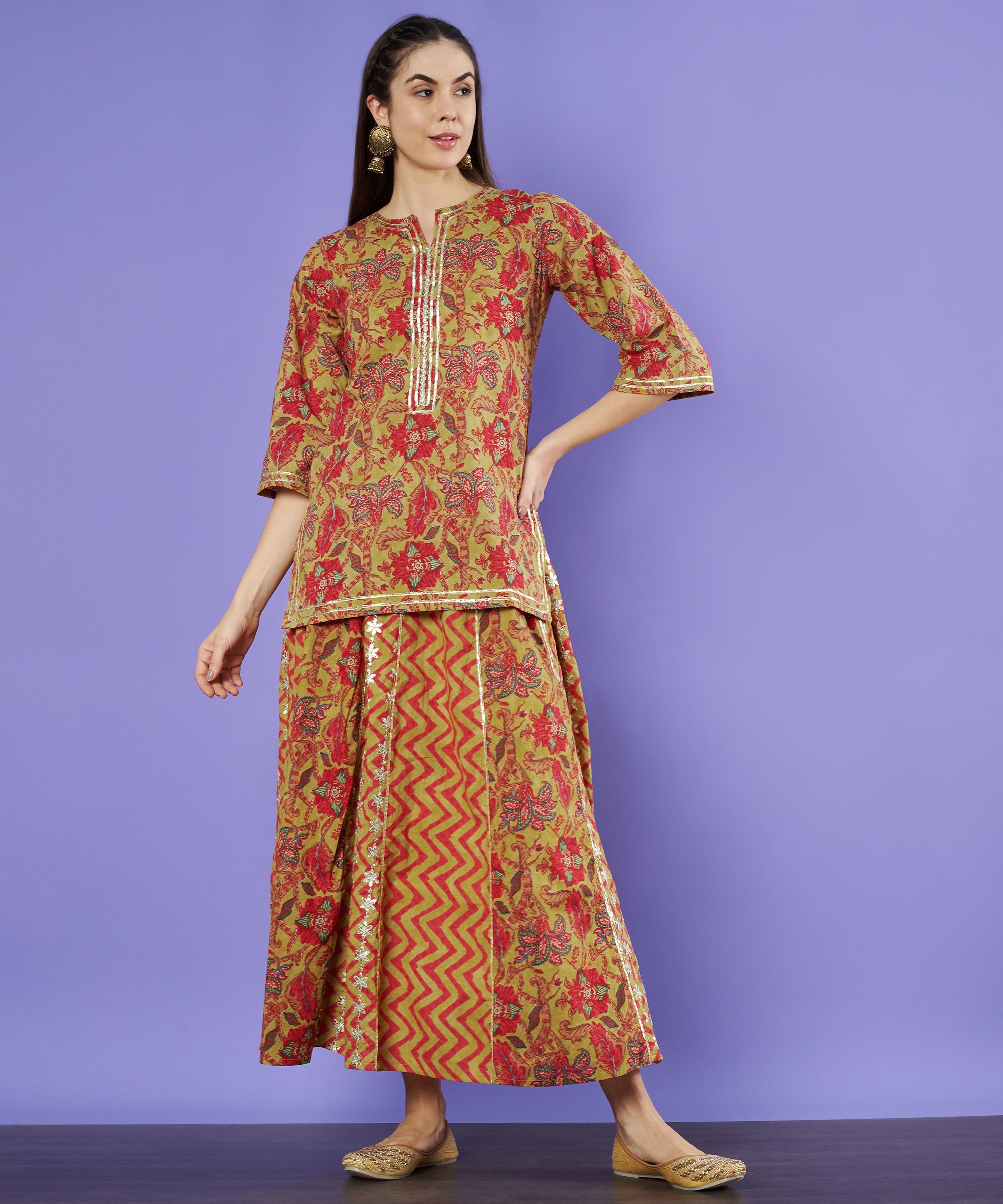 Traditionelles Kurta- und Palazzo-Set aus Jaipuri-Baumwolle für Damen