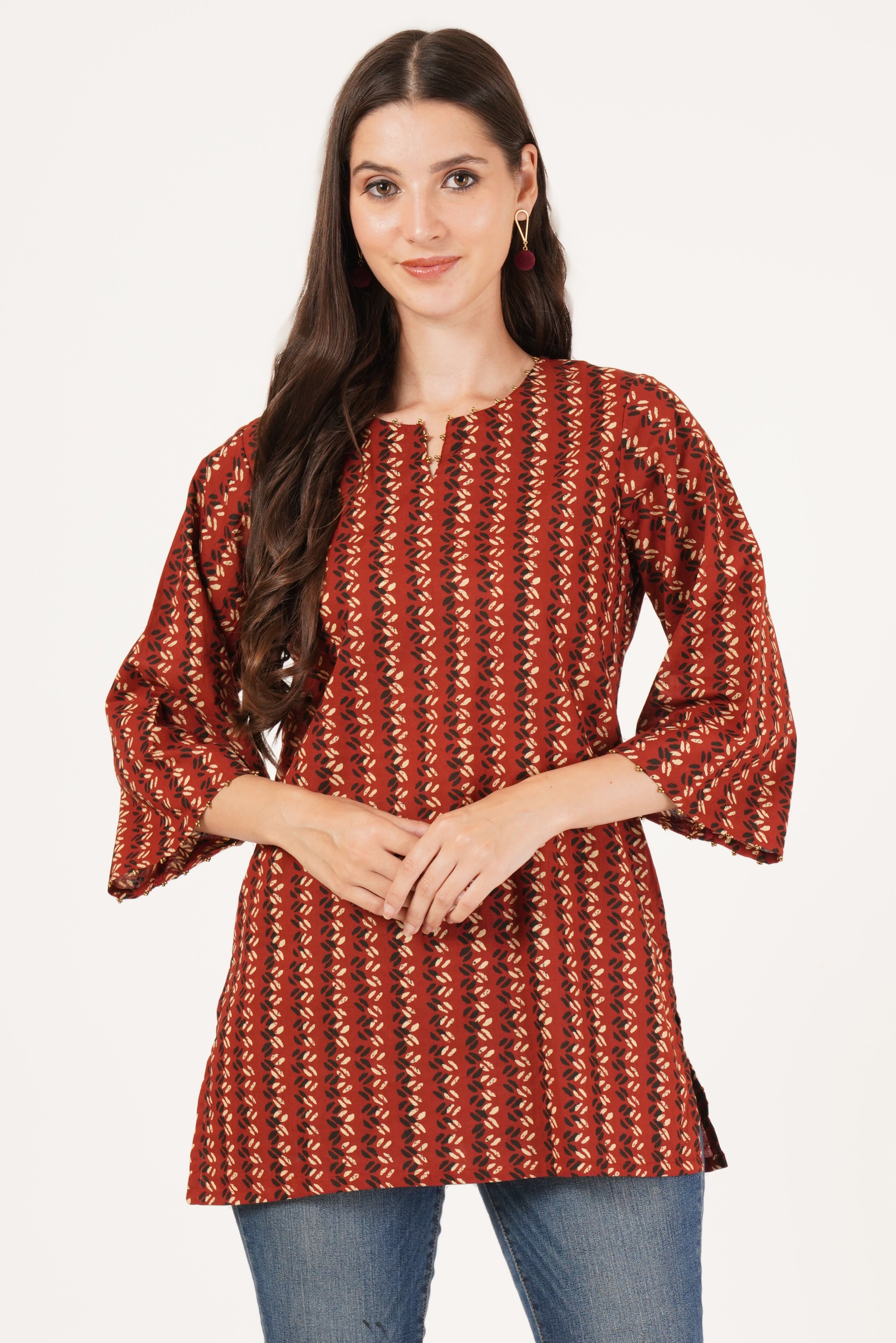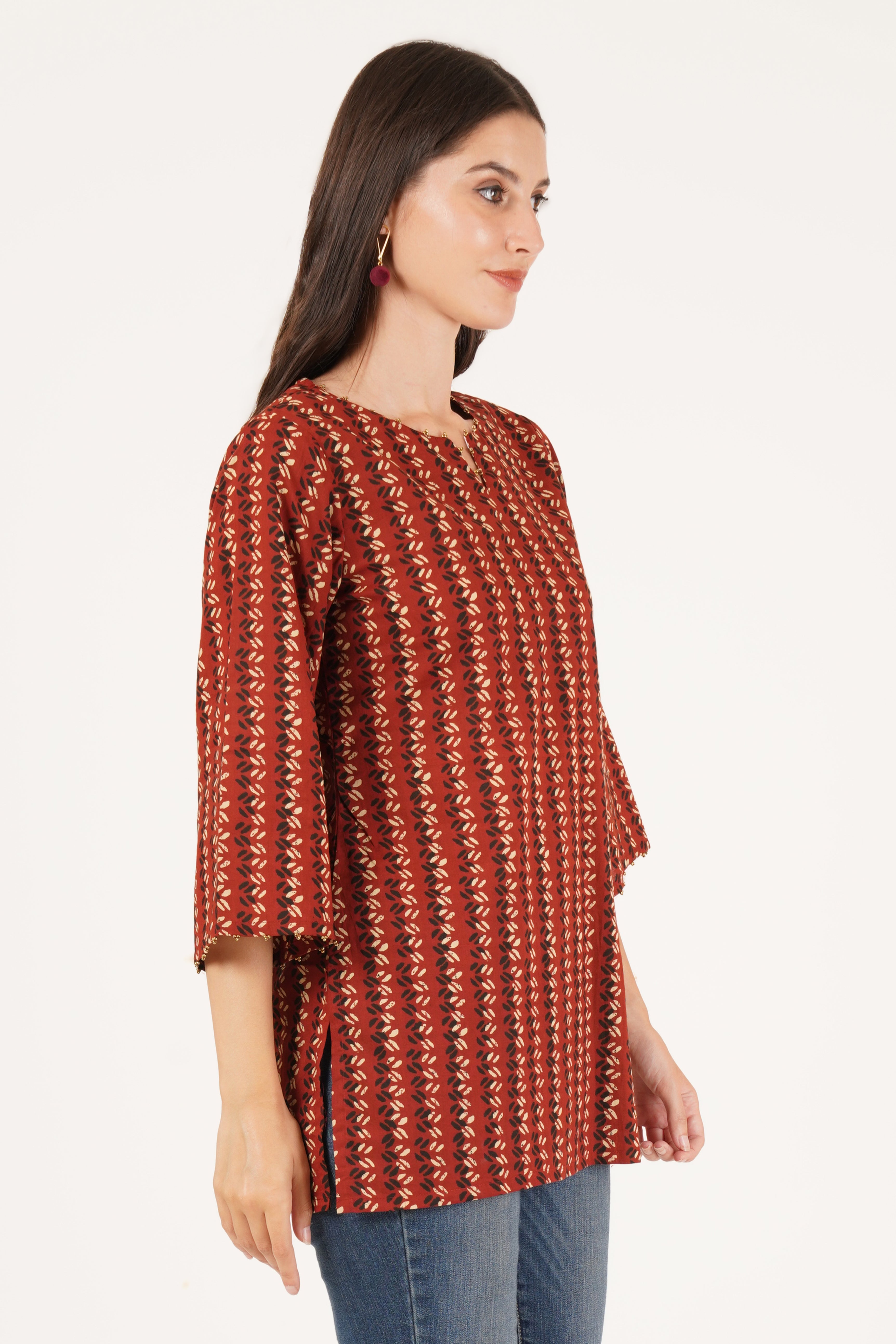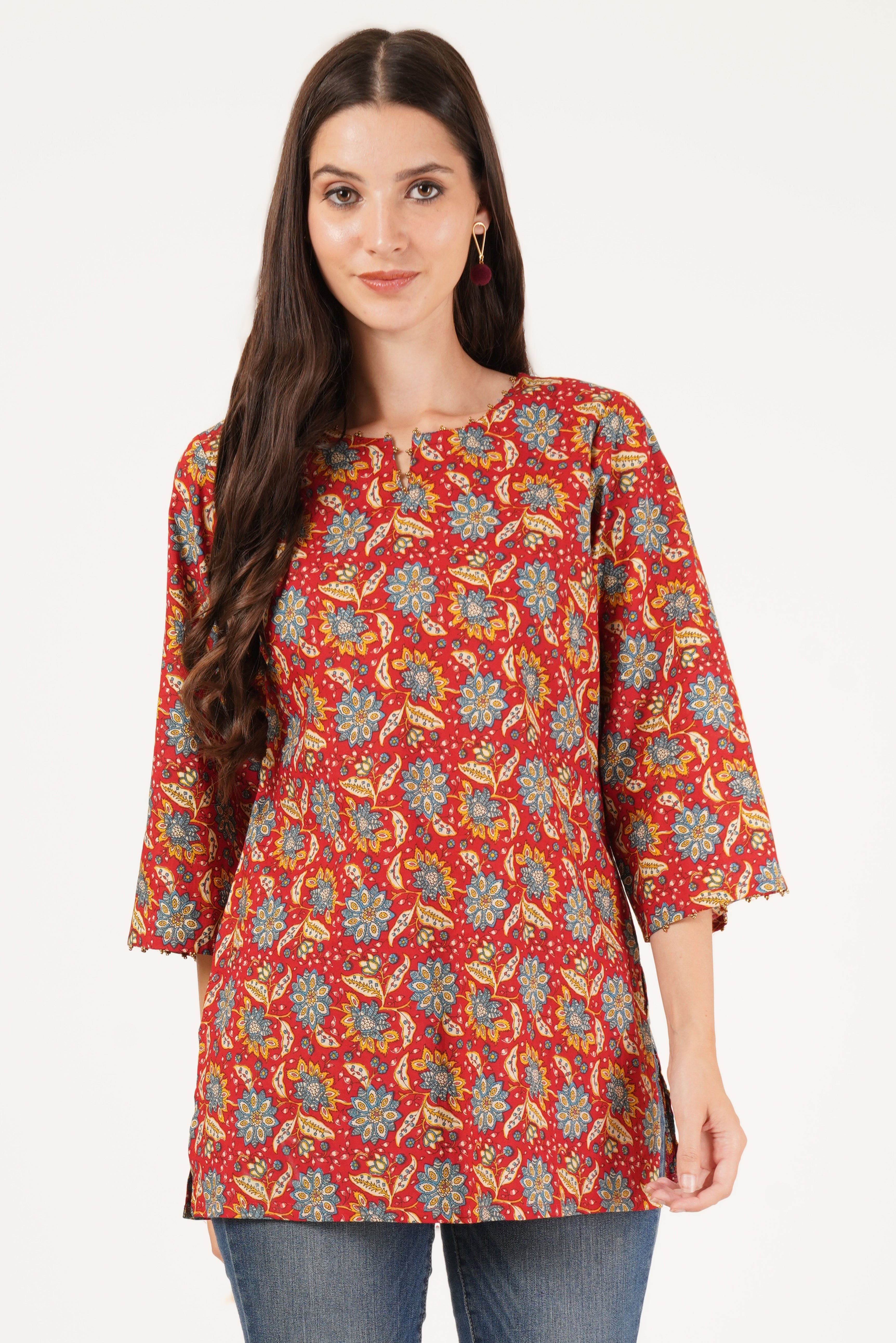 Stilvolles bedrucktes kurzes Kurti in Rot für Damen