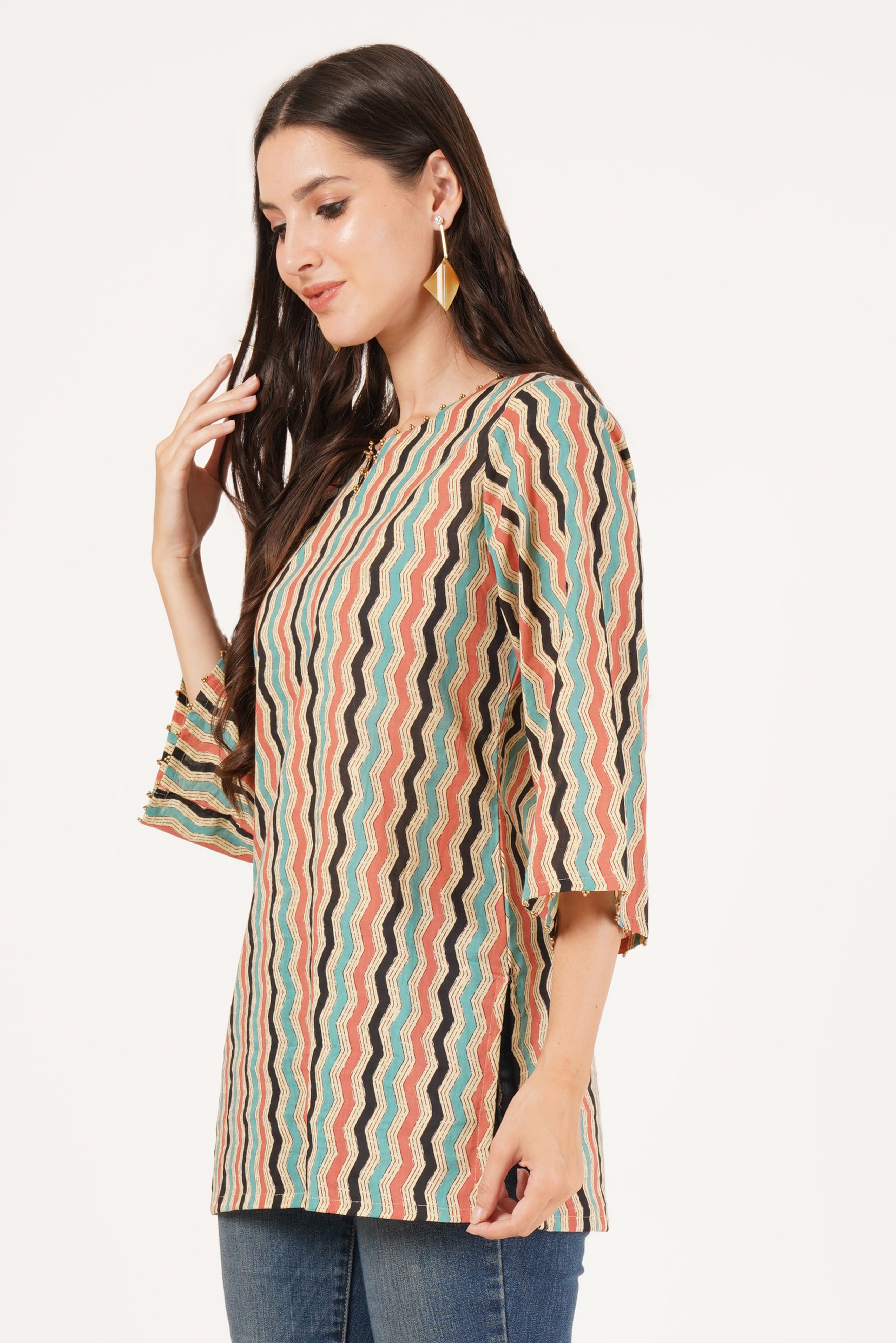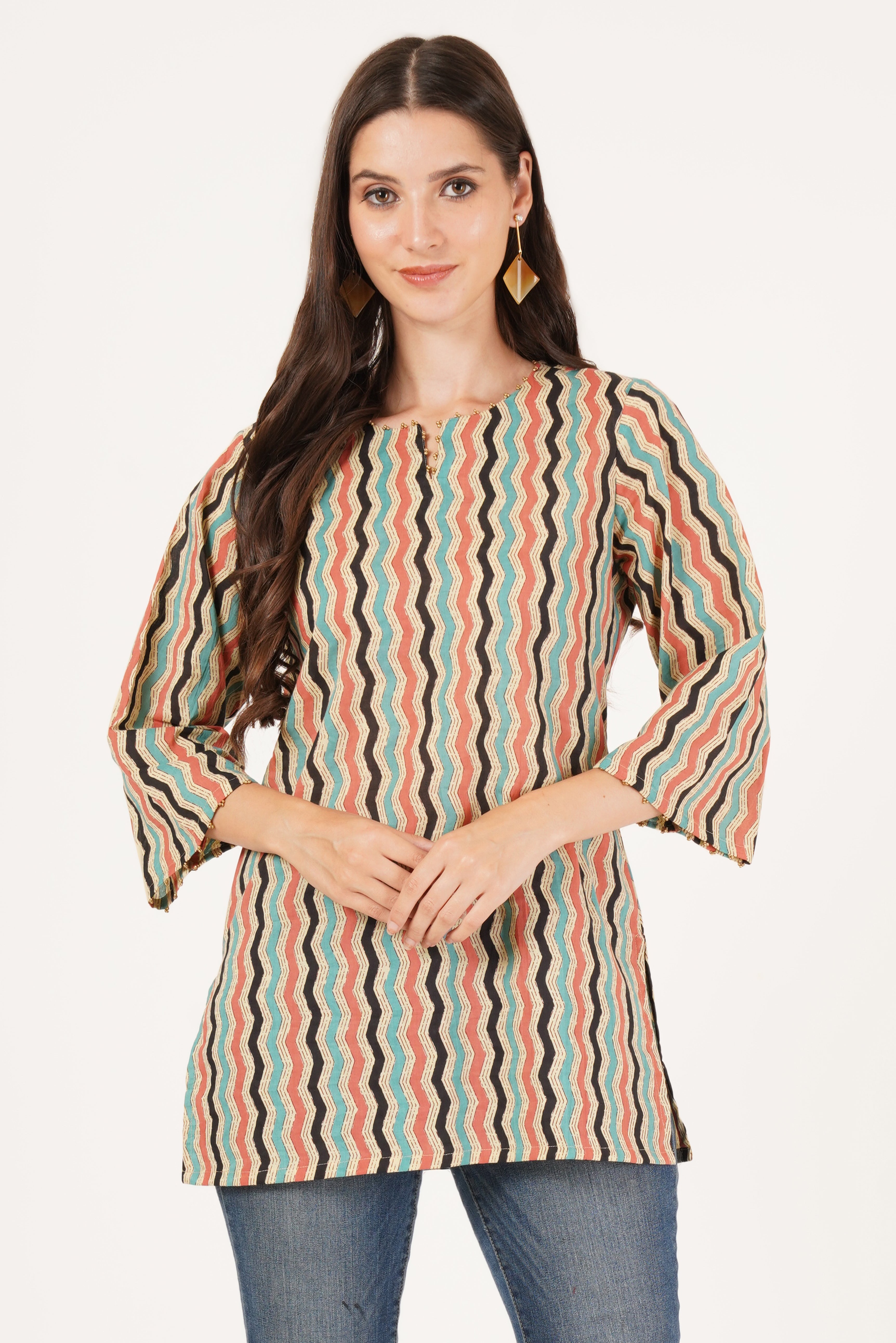 Lebendiges Zickzack-Baumwoll-Kurti für Damen
