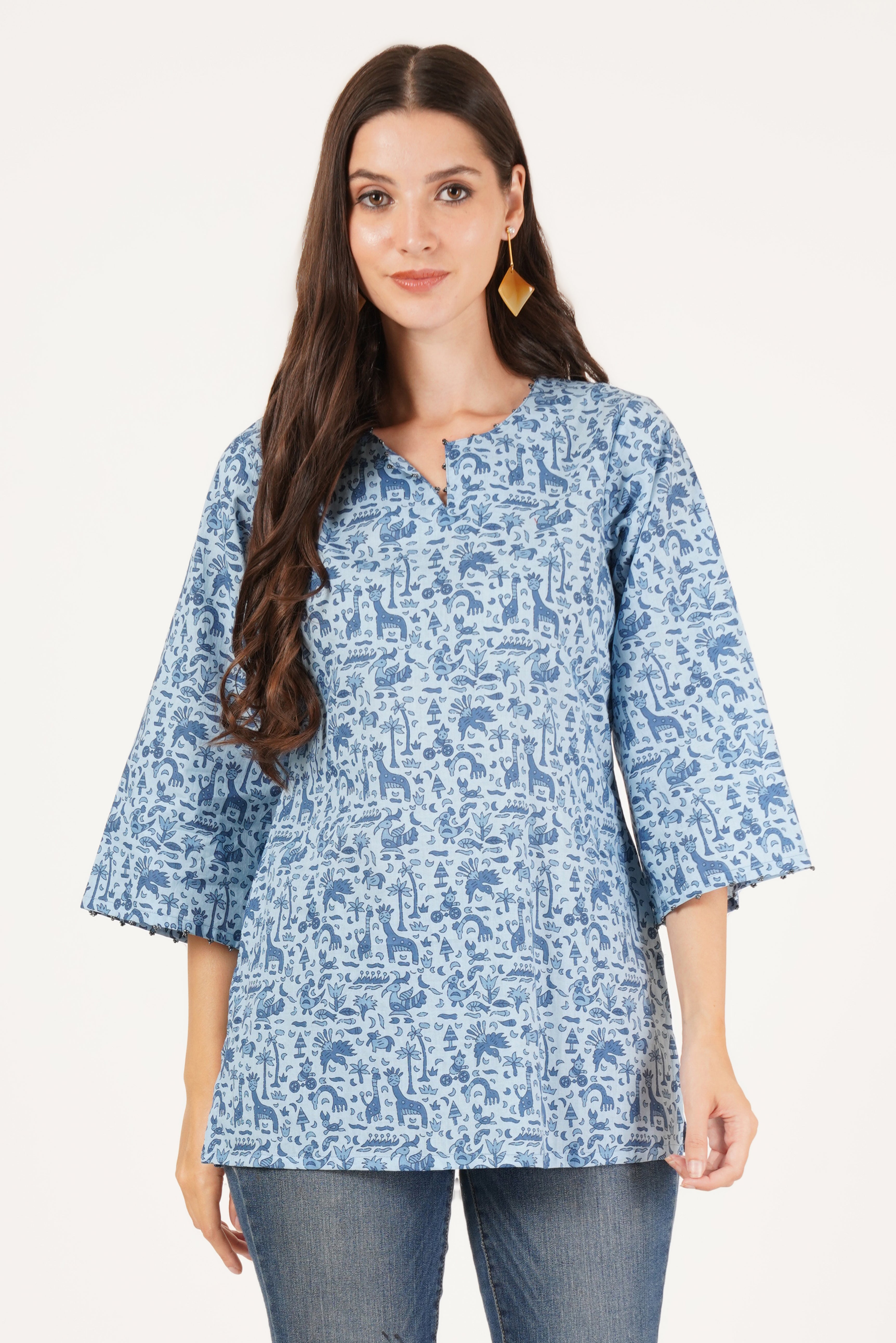 Lässiges Kurti aus Baumwolle mit Doodle-Print für Damen